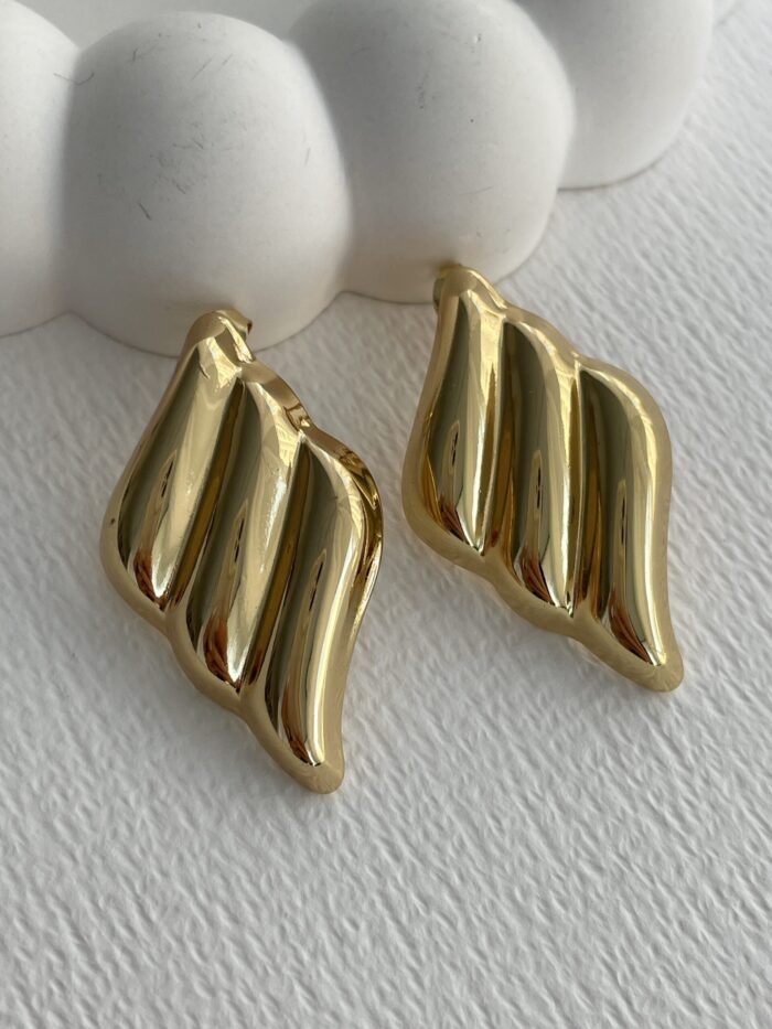Çelik Üçlü Kıvrım Tasarım Gold Küpe