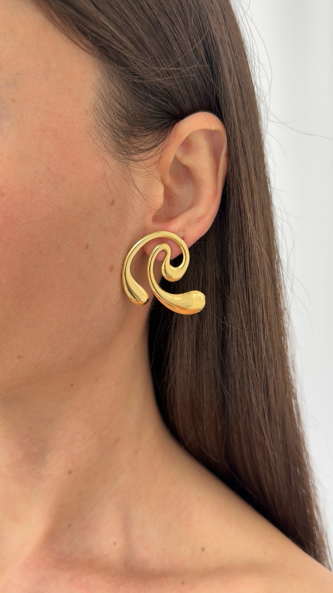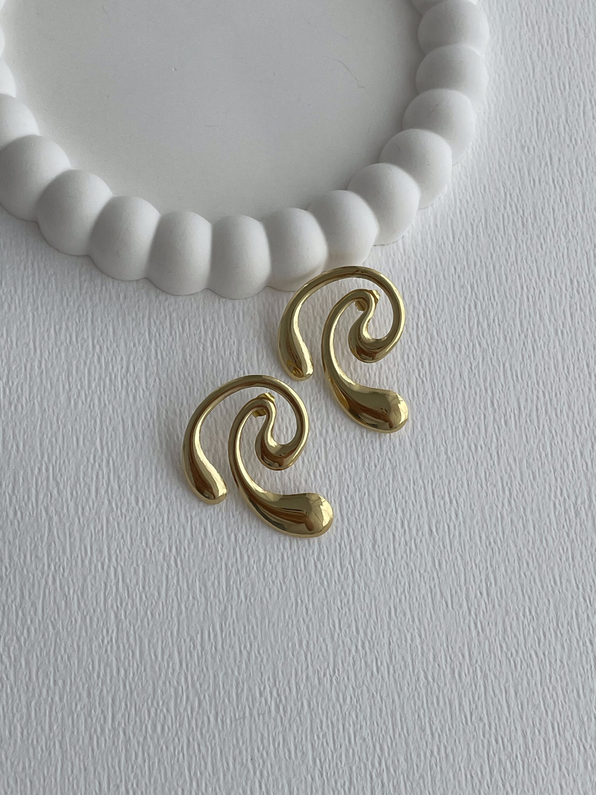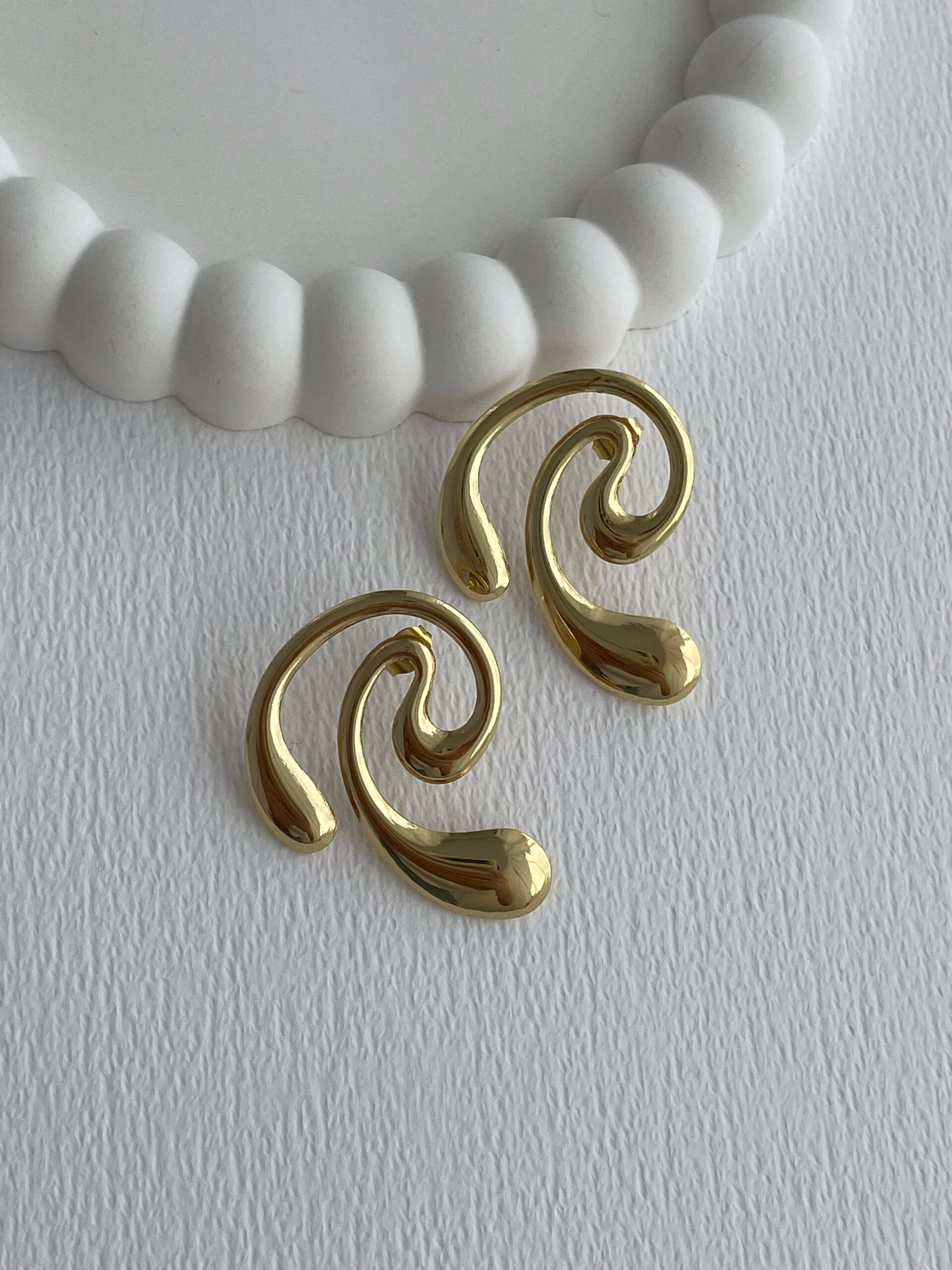 Çelik Damla Detay Sarmal Tasarım Gold Küpe