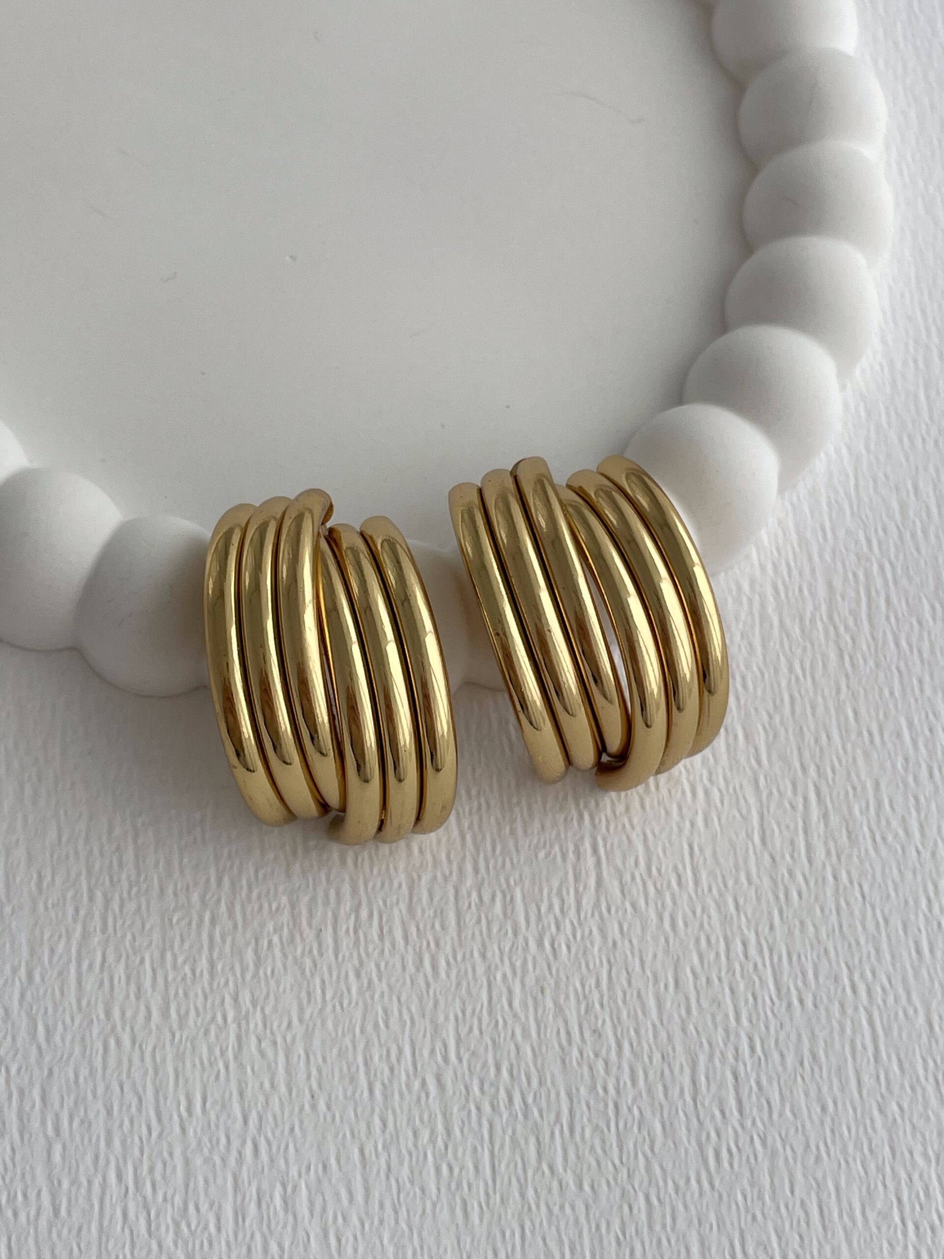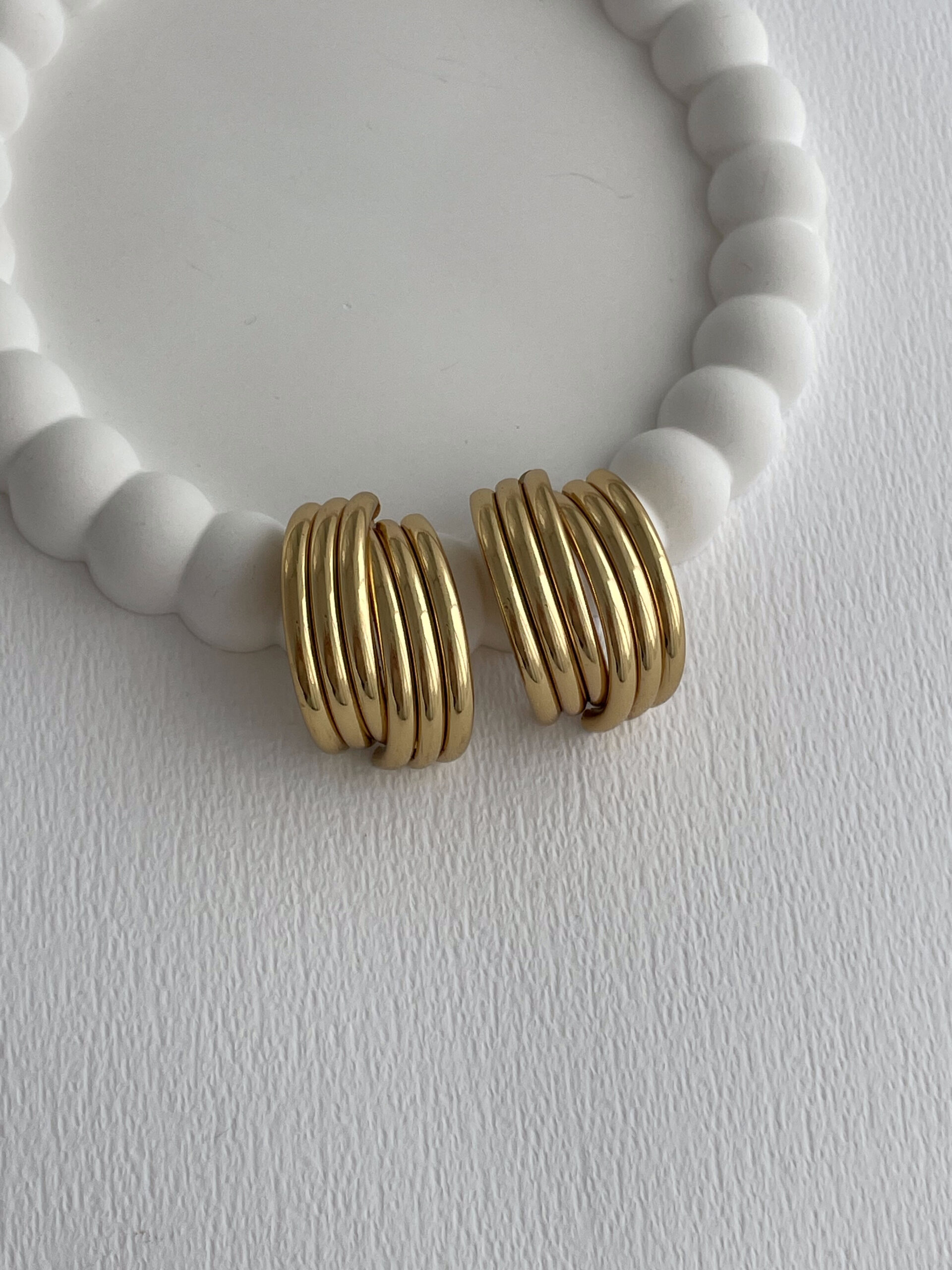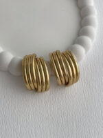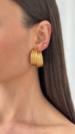 Çelik Geometrik Tasarım Maksi Boy Gold Küpe