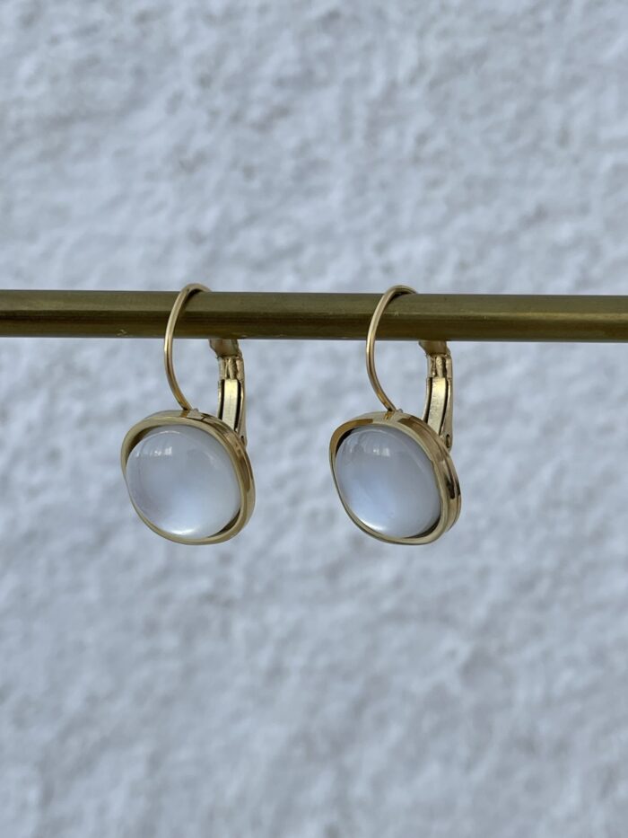 Çelik Geometrik Tasarım Sedefli Gold Küpe
