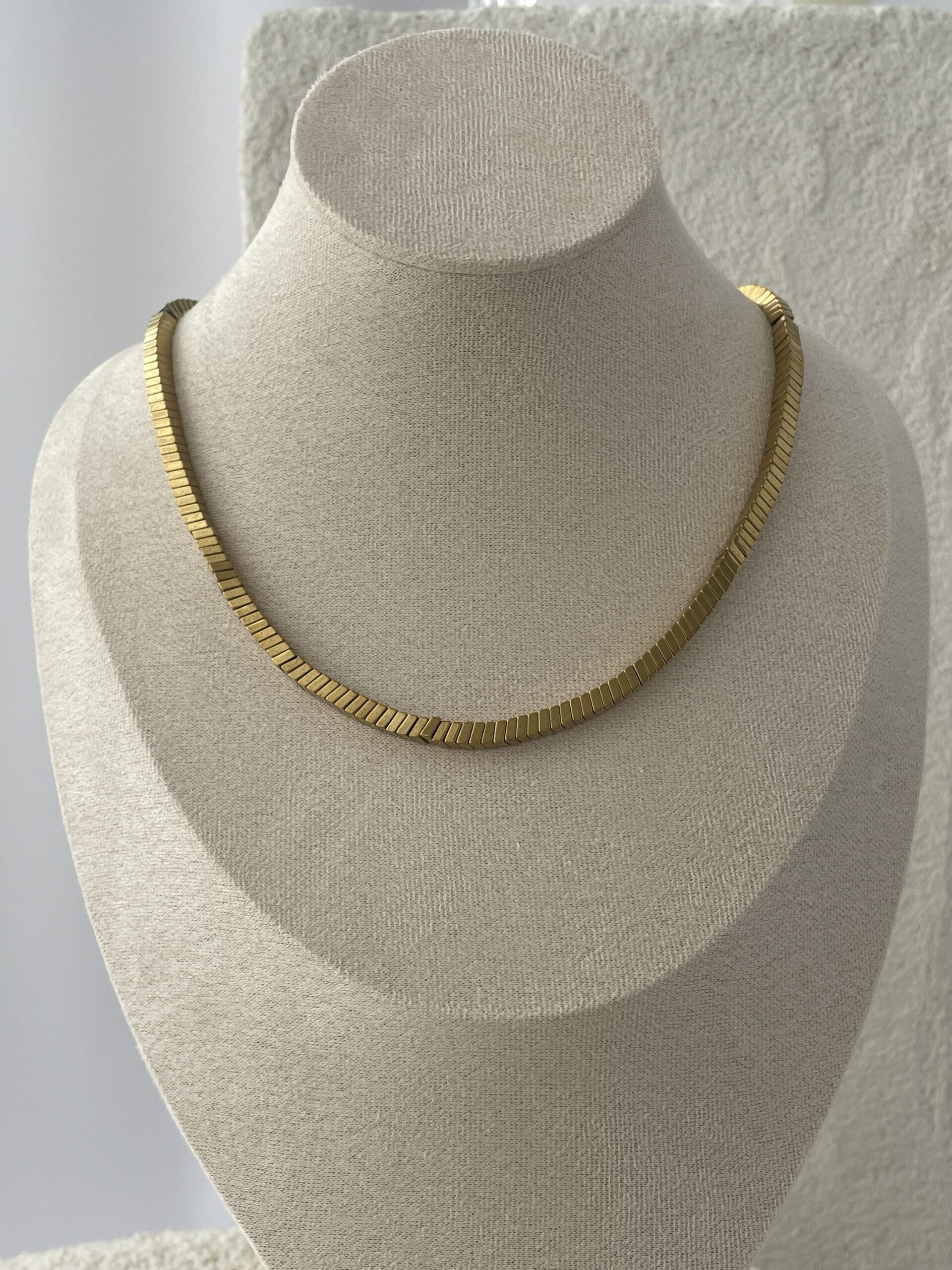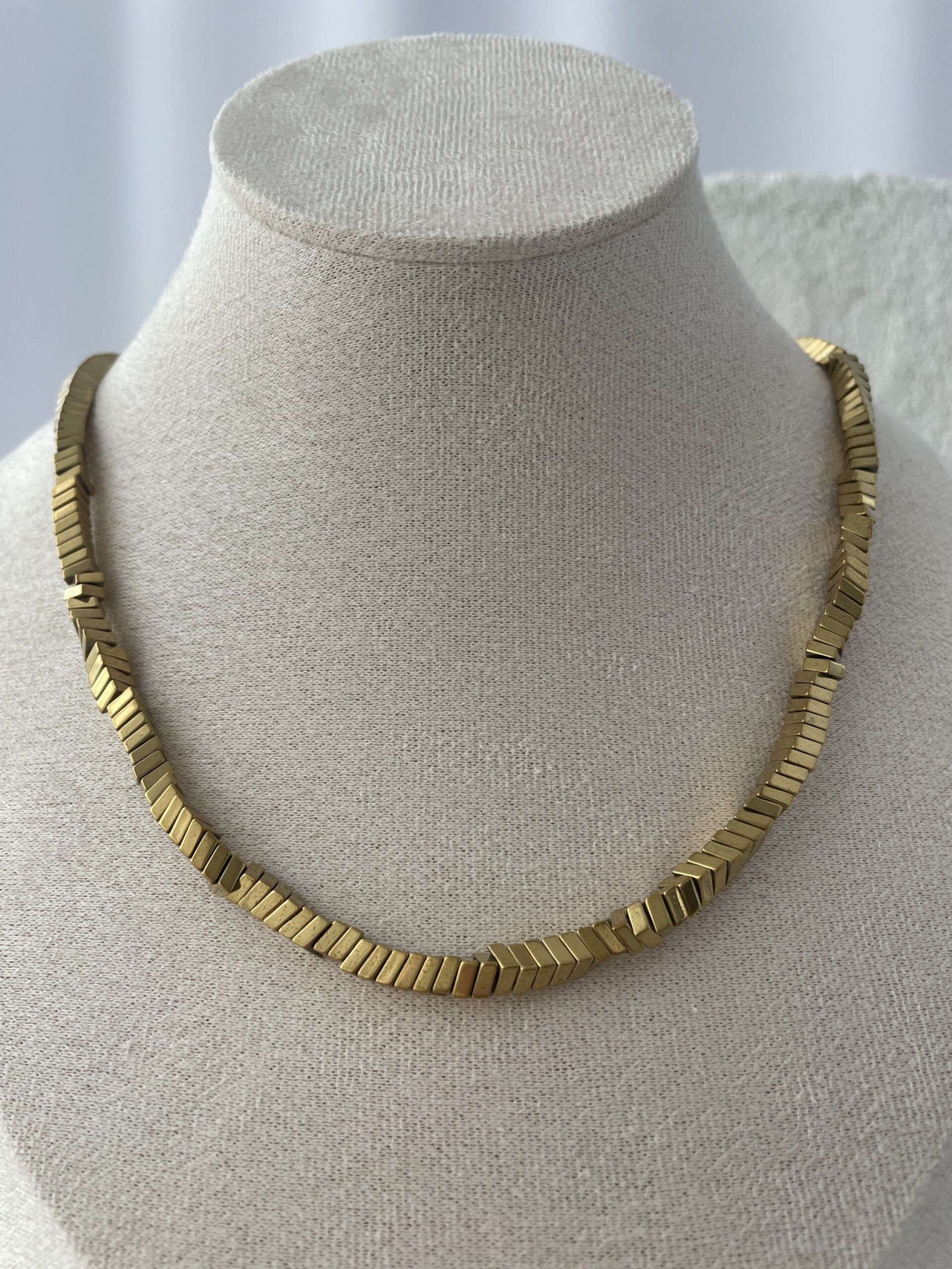 Çelik Kare Geometrik Tasarım Eskitme Gold Kolye
