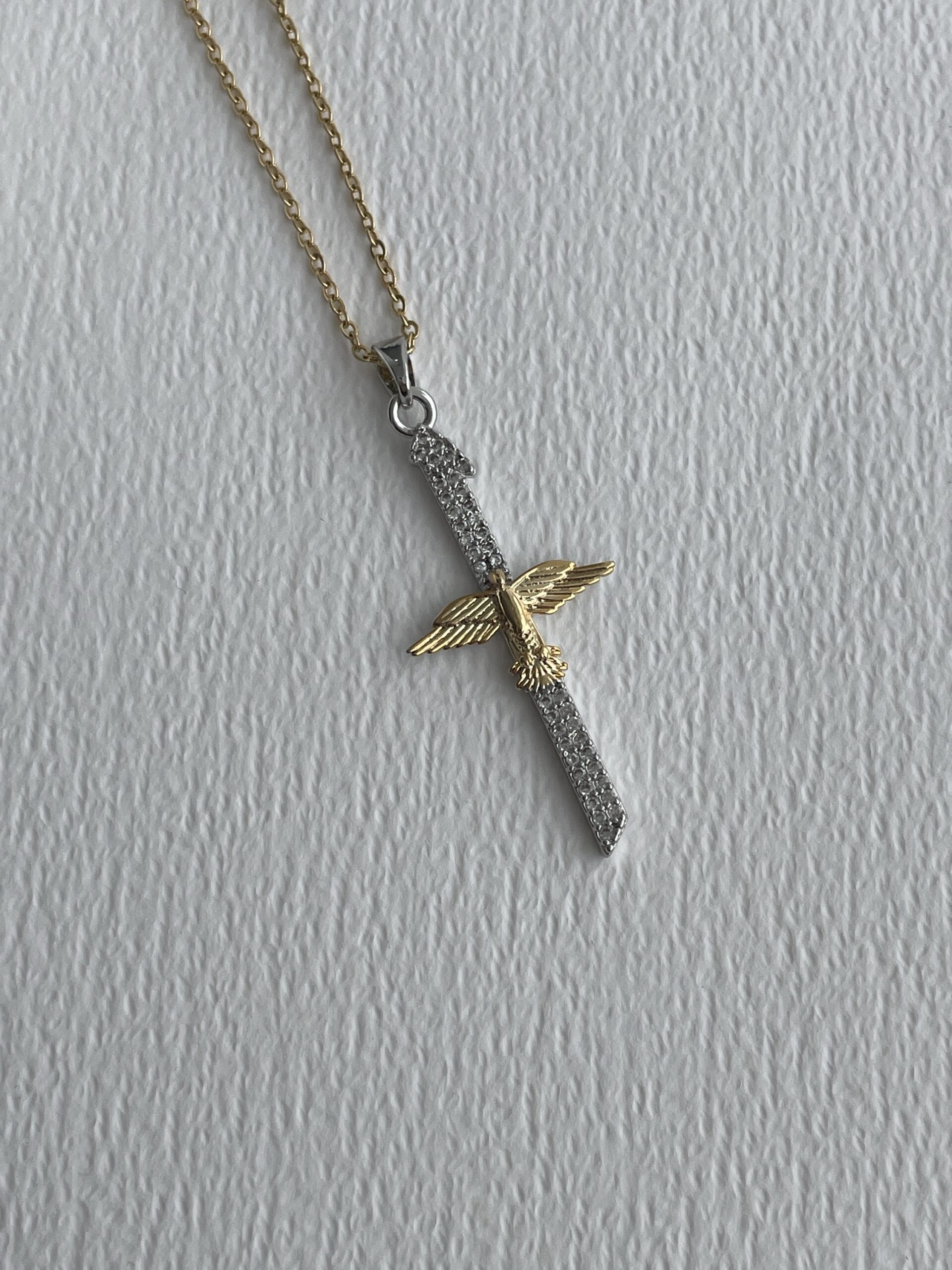 Çelik Zirkon Taşlı Gold & Gümüş Elif Anka Kuşu Kolye