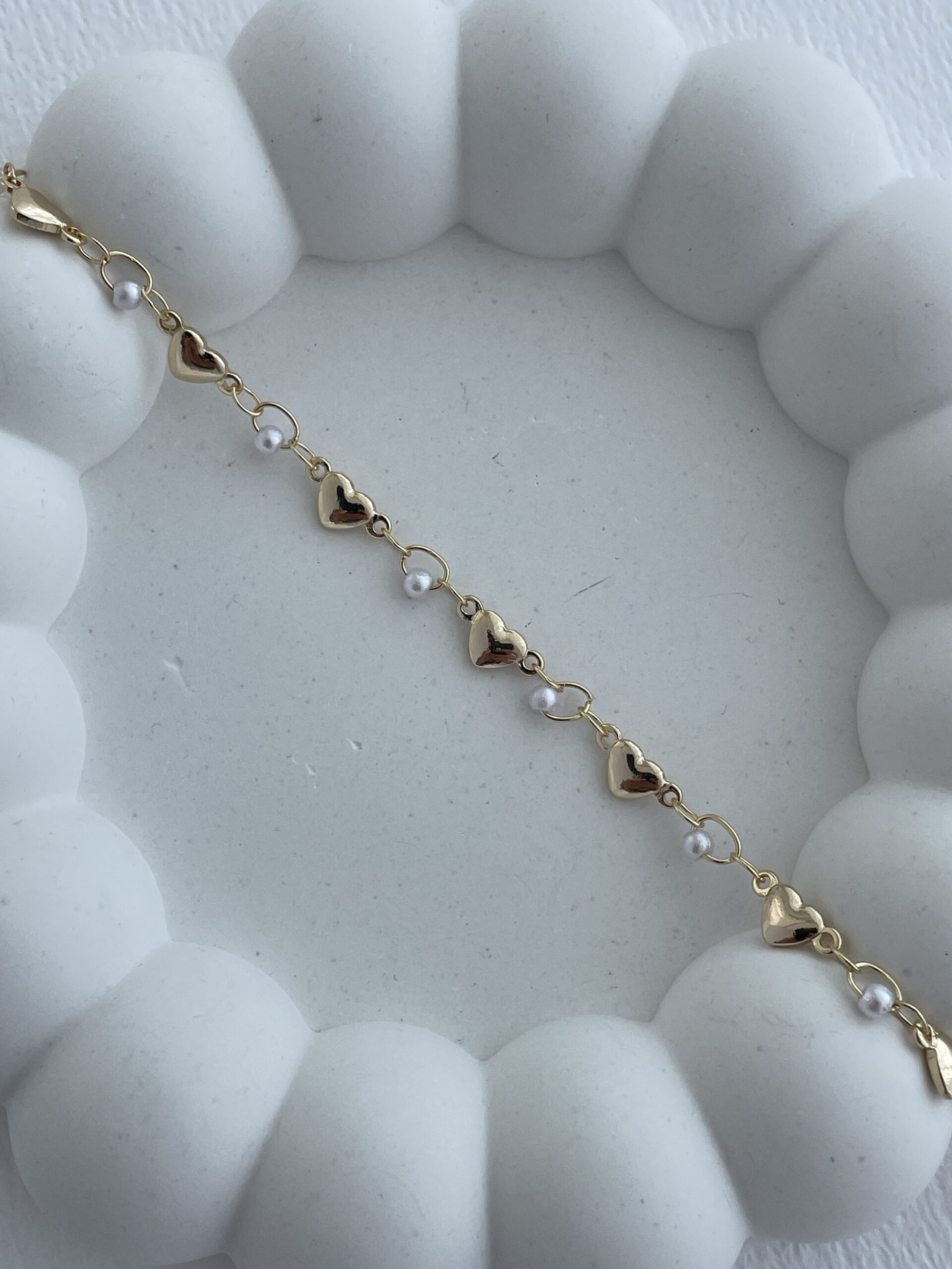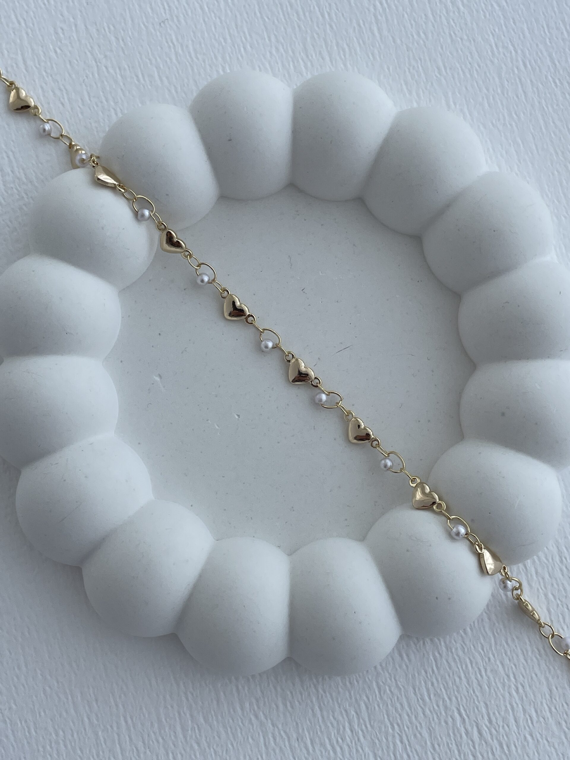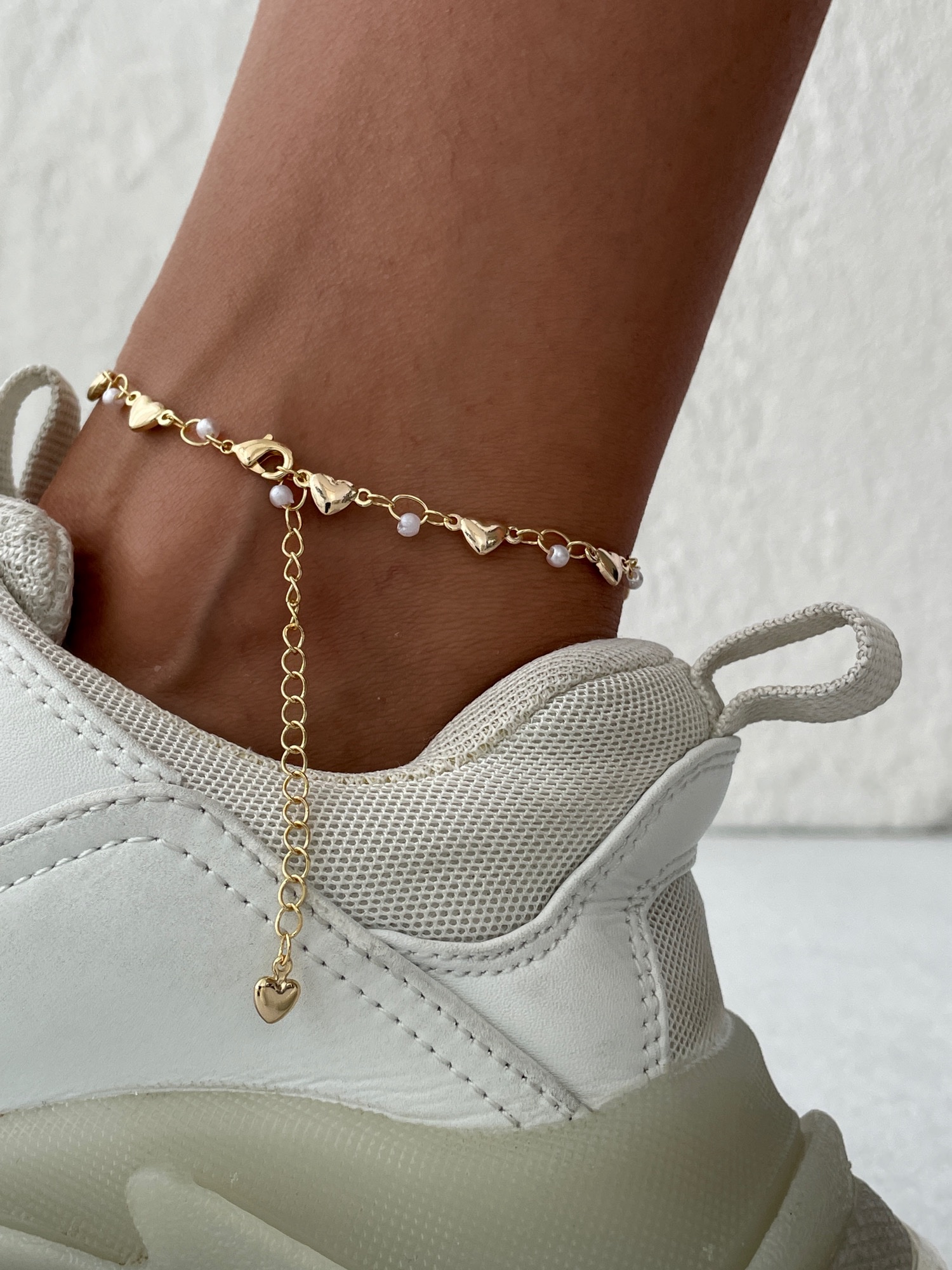 Çelik Gold İnci Detay Kalp Tasarım Halhal