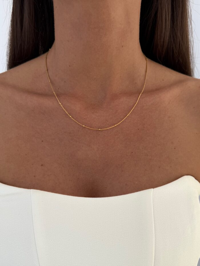 Çelik Gold Top Detay Zincir Kolye 40+5cm