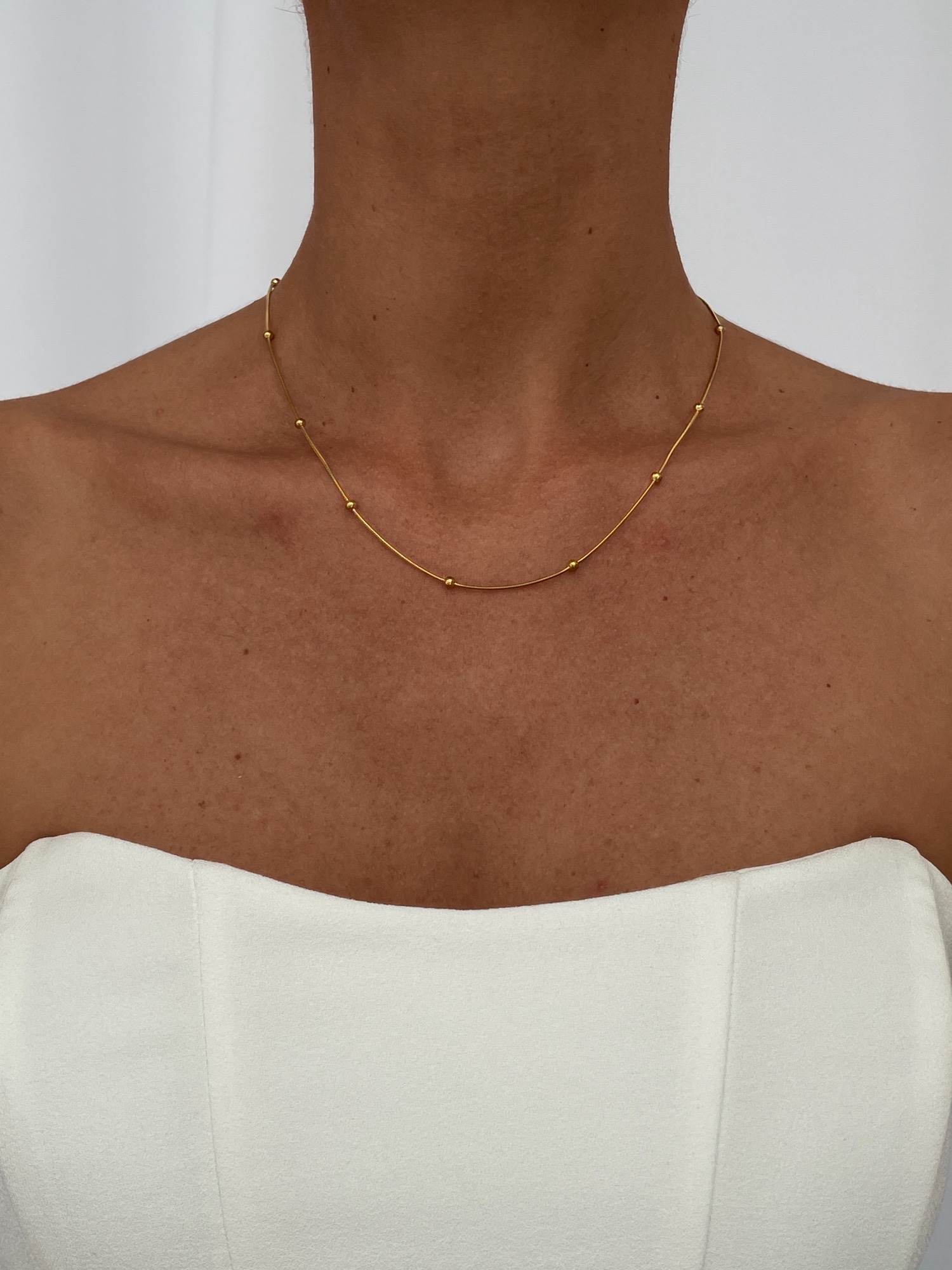 Çelik Gold Top Detaylı Zincir Kolye 45cm