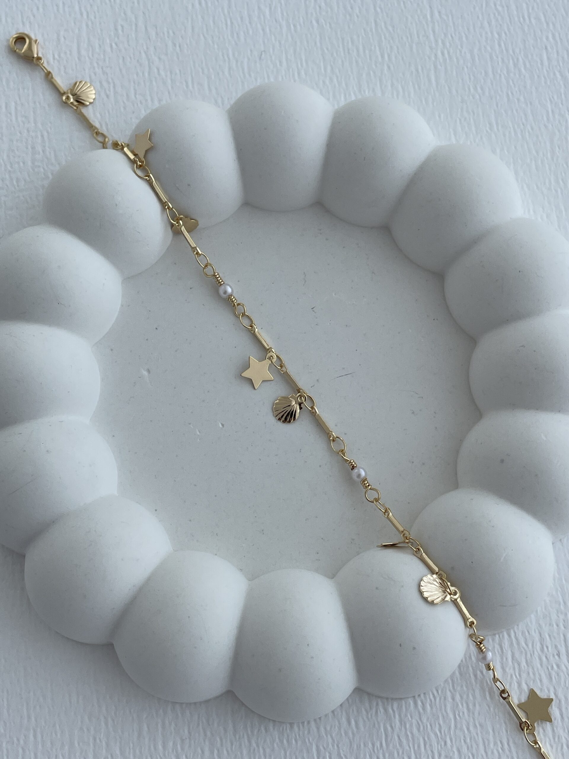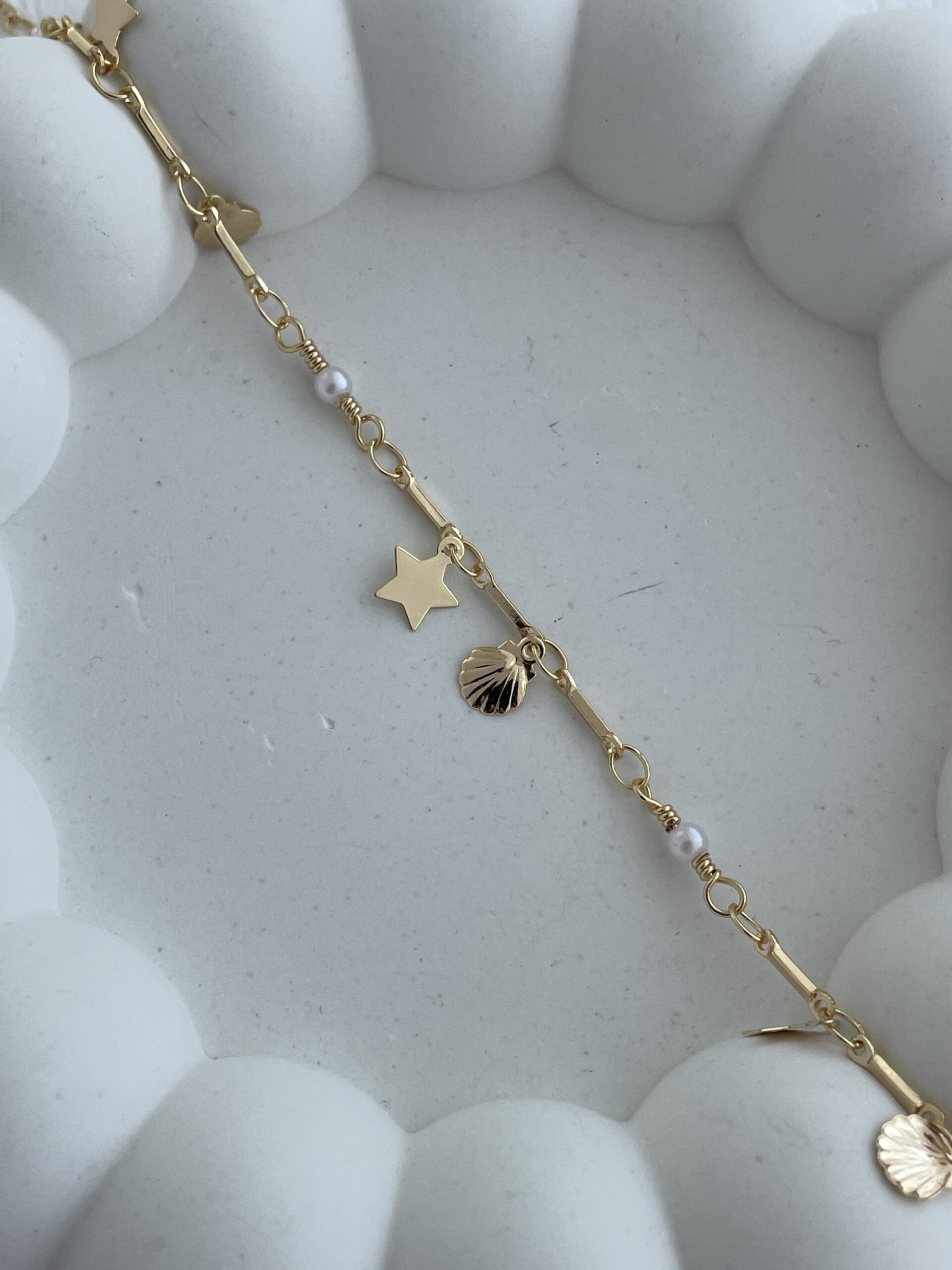 Çelik Gold Yıldız & Deniz Kabuğu Tasarım Halhal