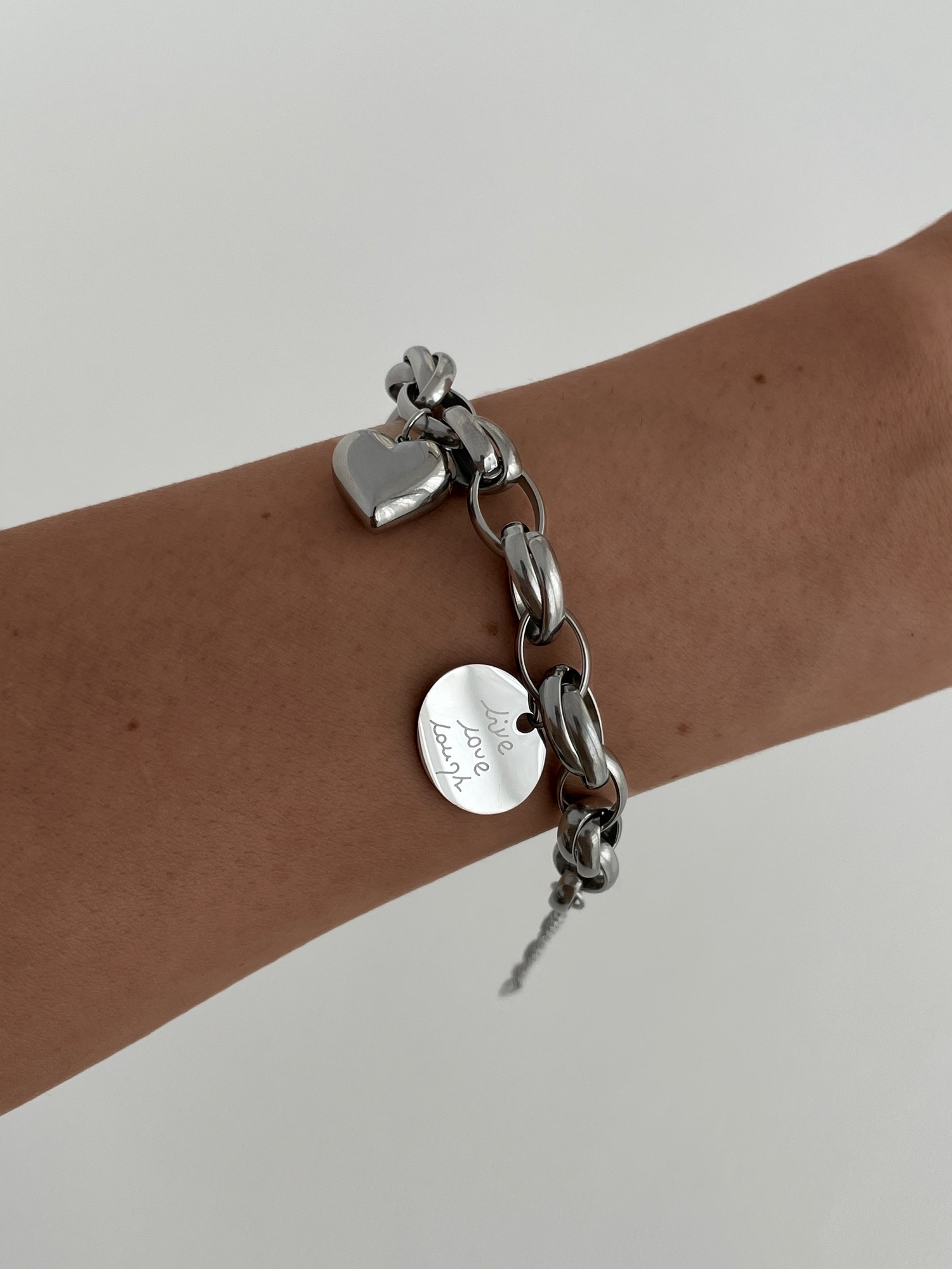 “Çelik Gümüş Kalp Detaylı Love Bileklik” için yorum yapan ilk kişi siz olun