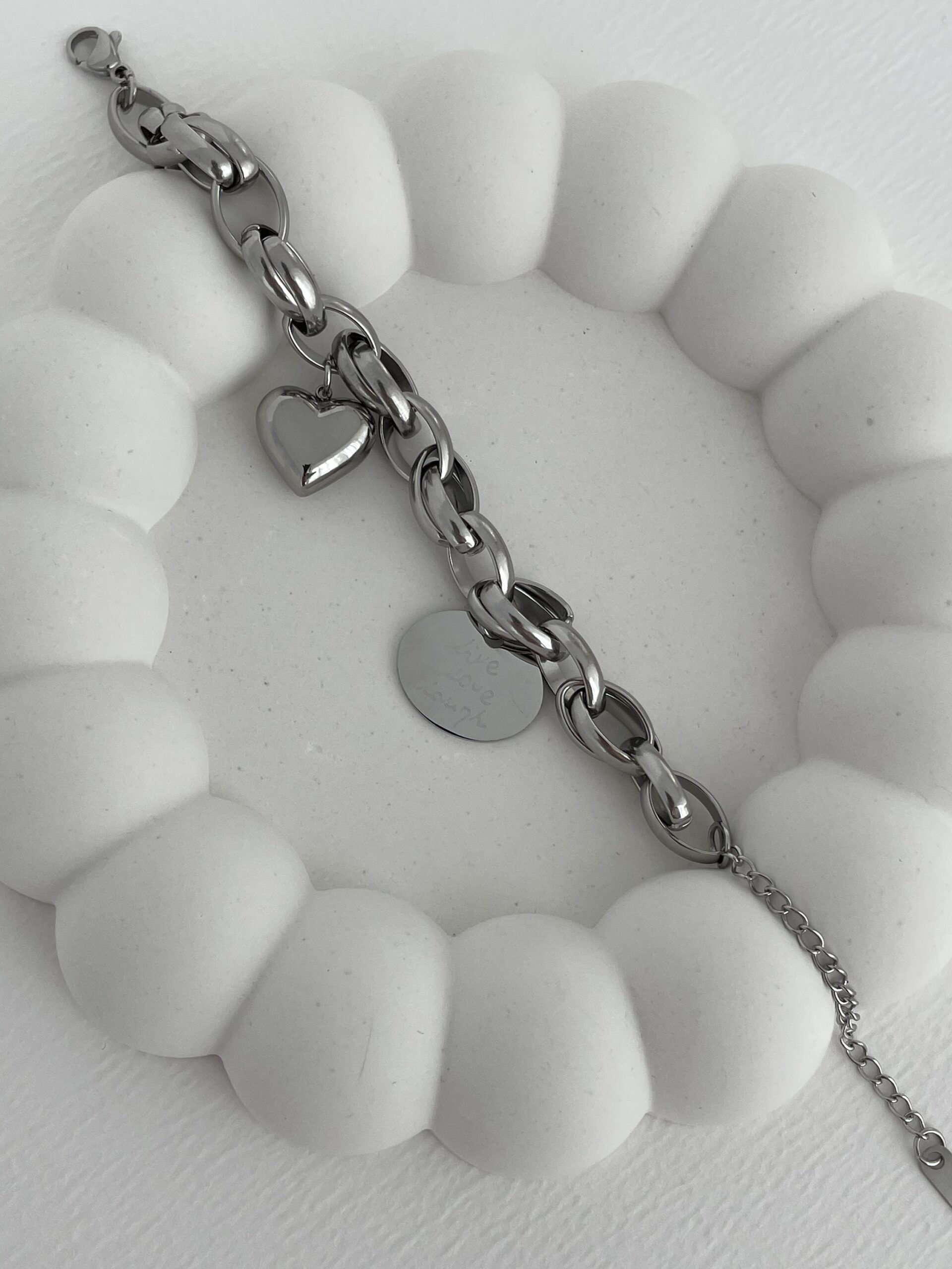 Çelik Gümüş Kalp Detaylı Love Bileklik