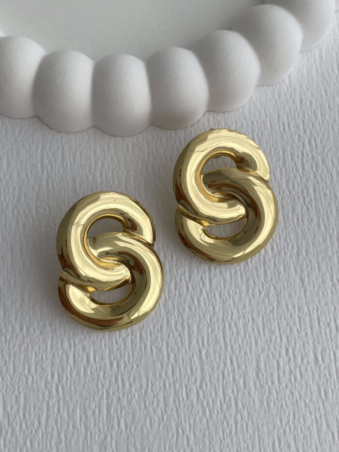 Çelik İç İçe Halka Tasarım Gold Küpe
