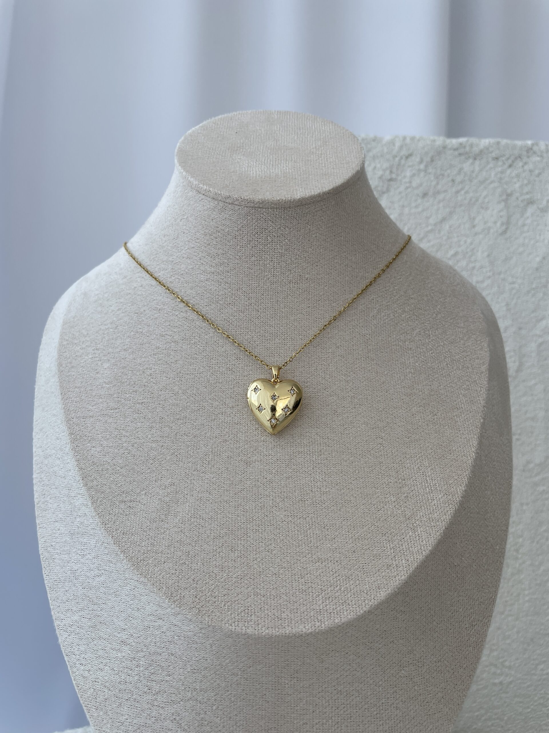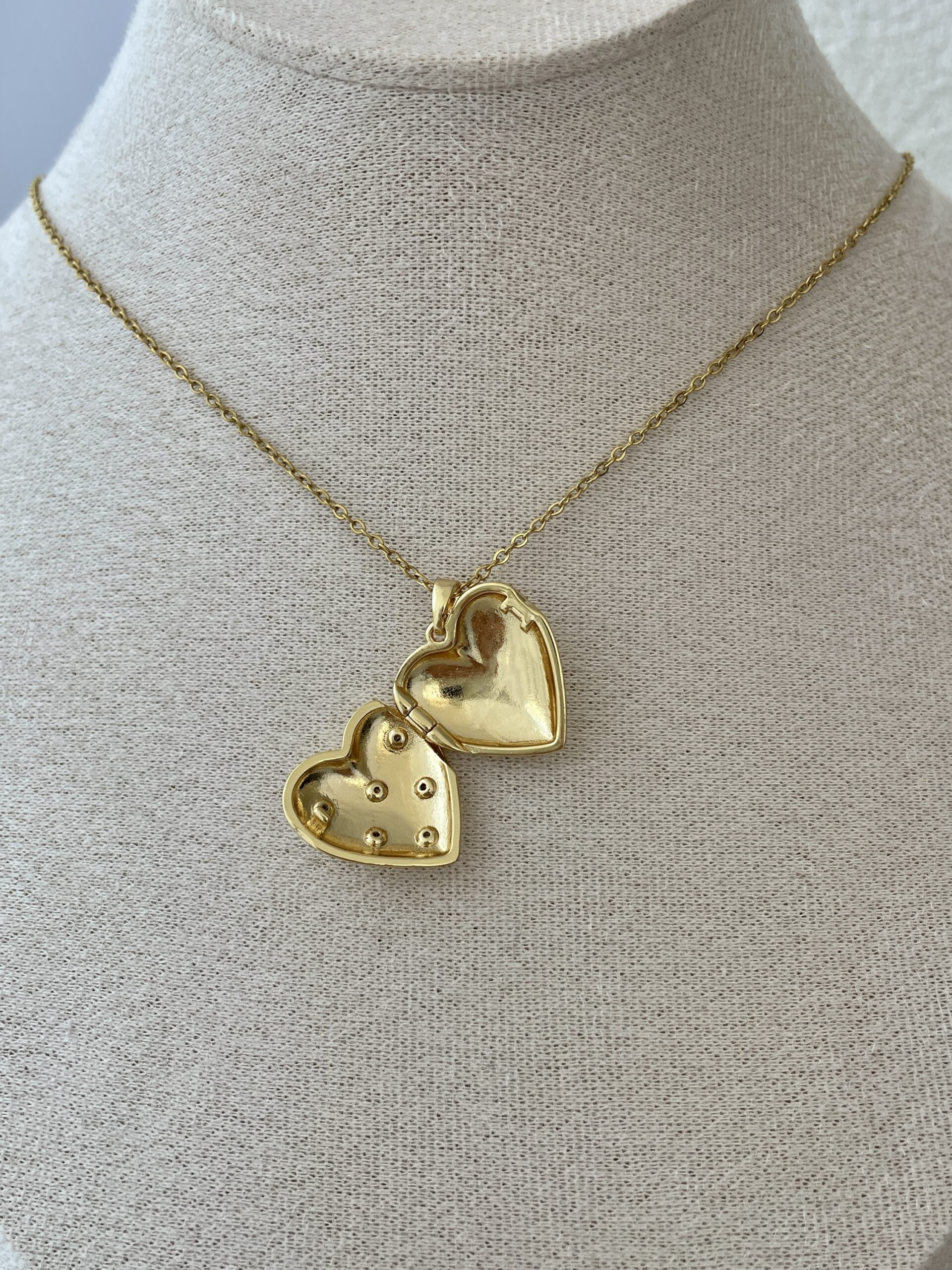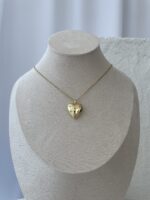 Çelik İçi Açılır Resimli Zirkon Taşlı Kalp Tasarım Gold Kolye