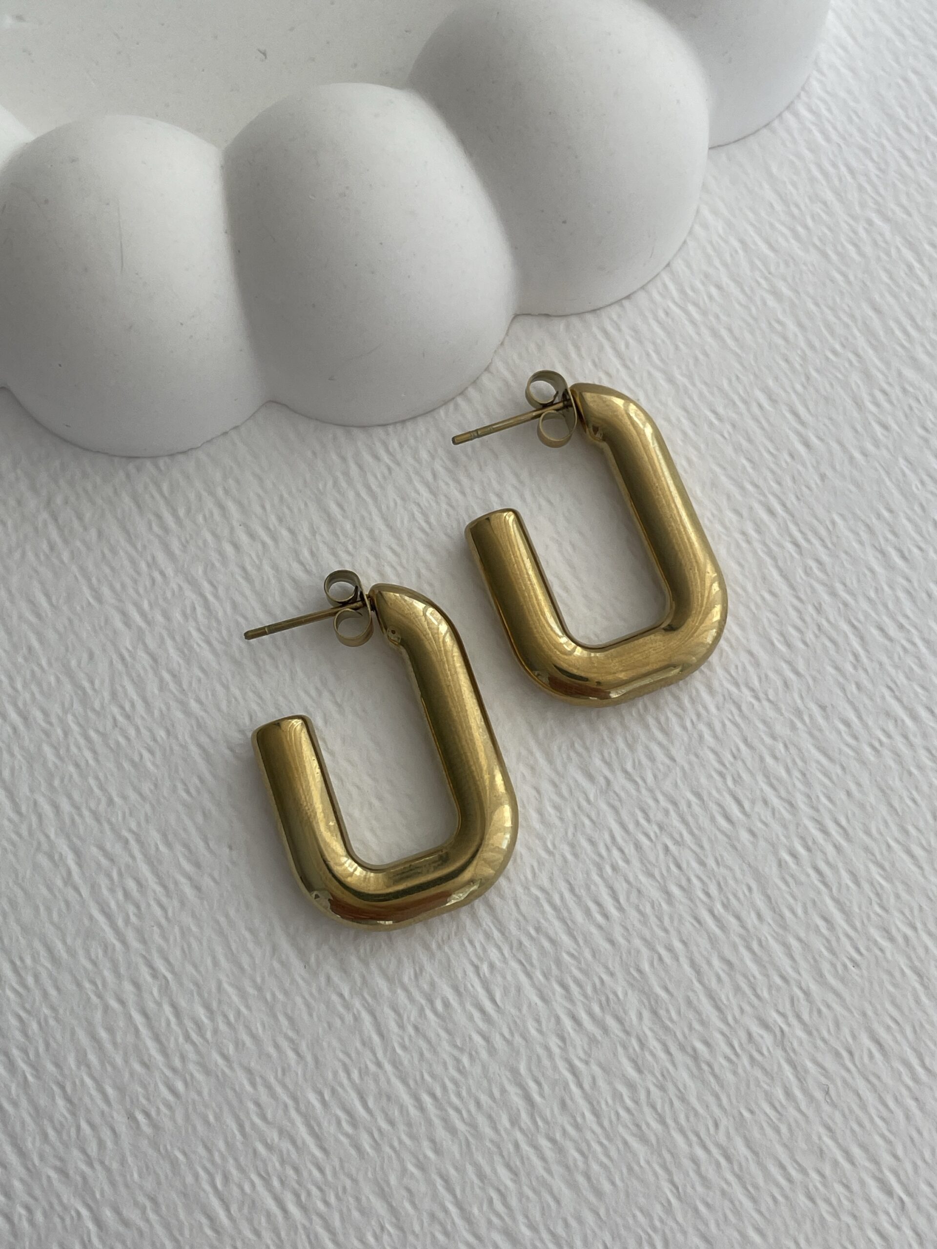 Çelik İçi Dolu Dikdörtgen Tasarım Gold Küpe