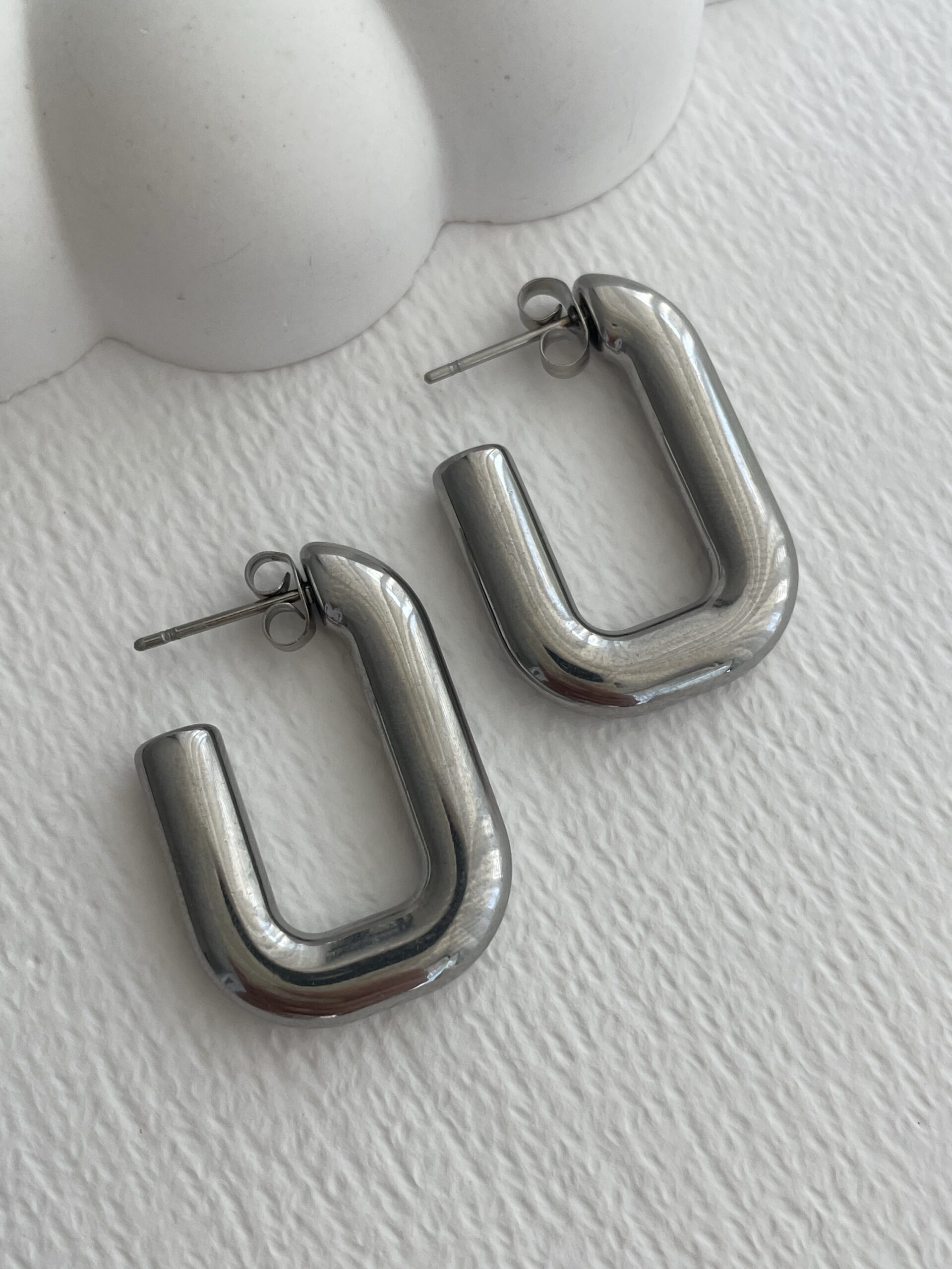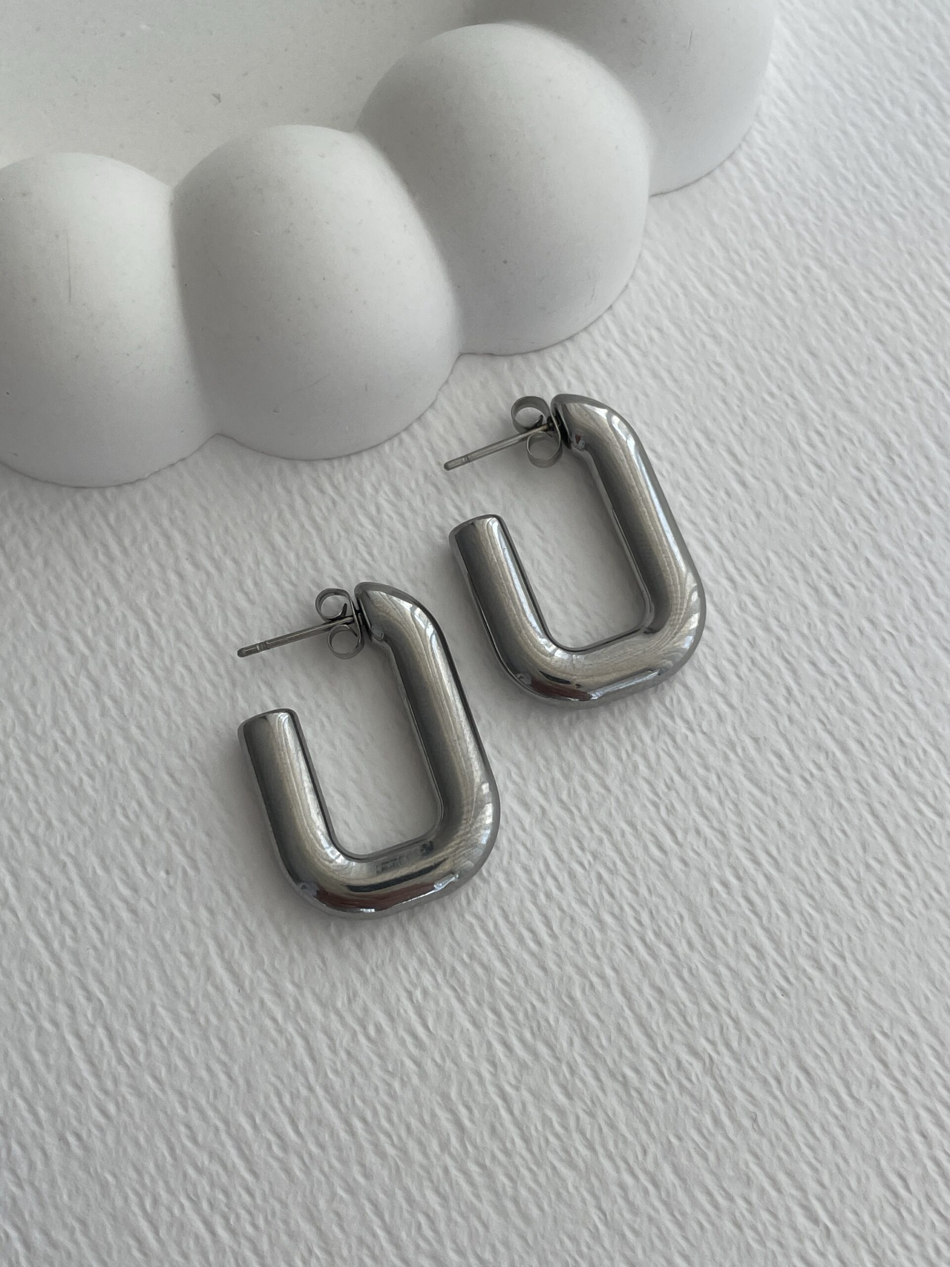 Çelik İçi Dolu Dikdörtgen Tasarım Gümüş Küpe