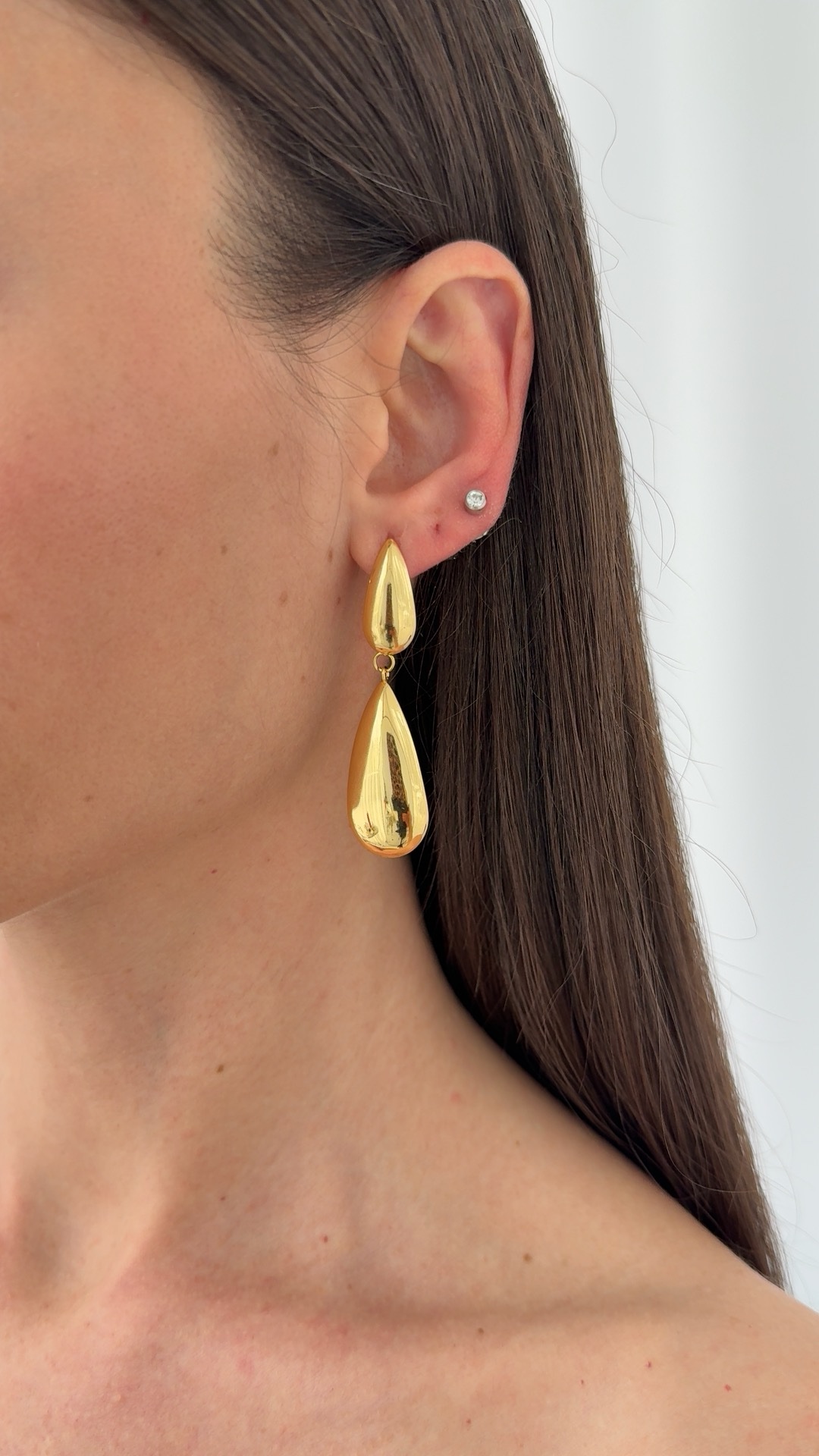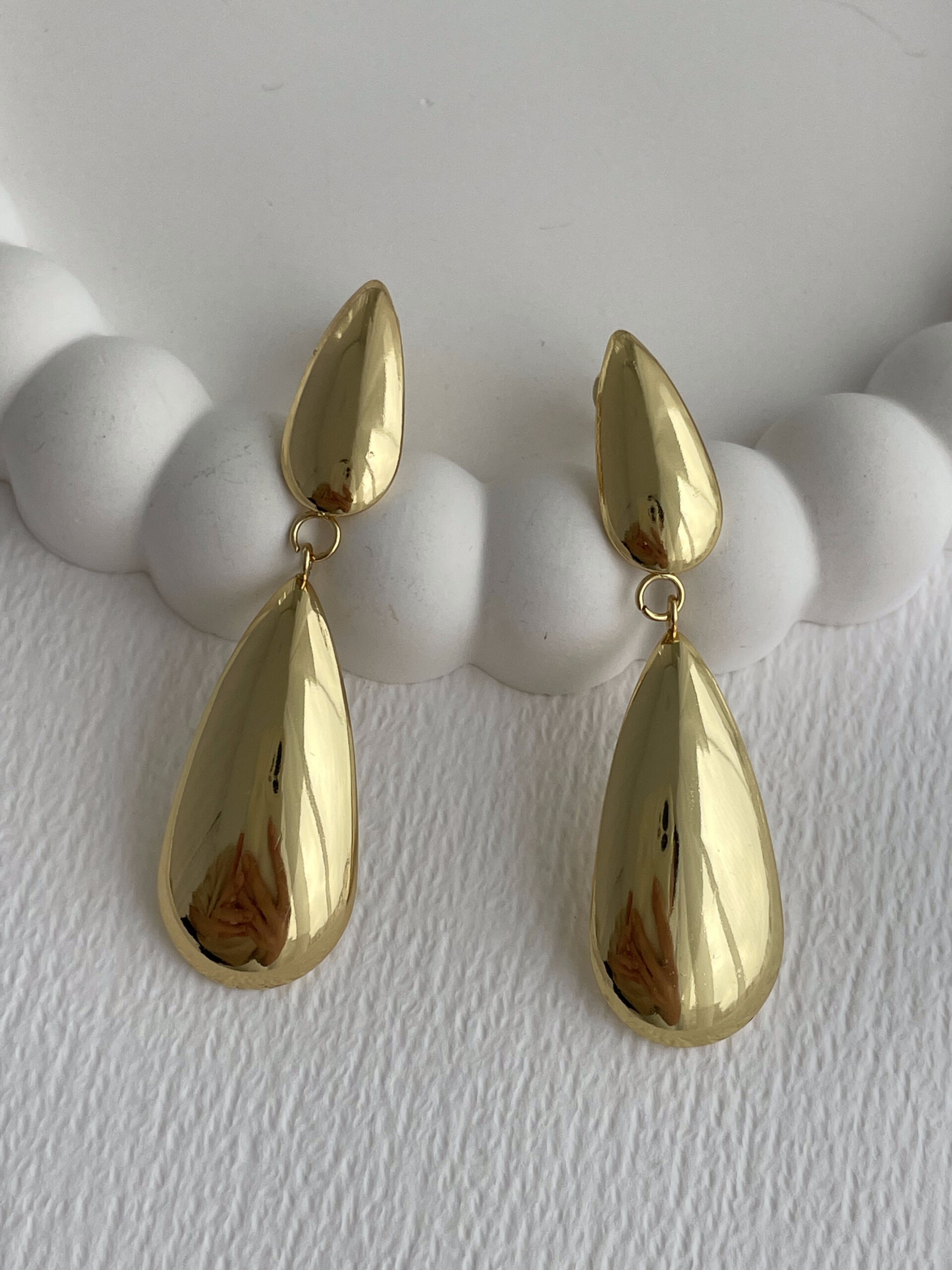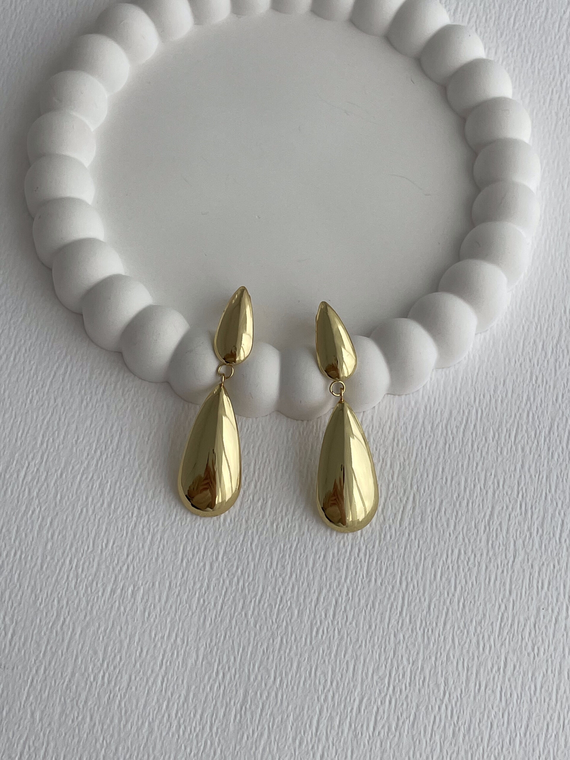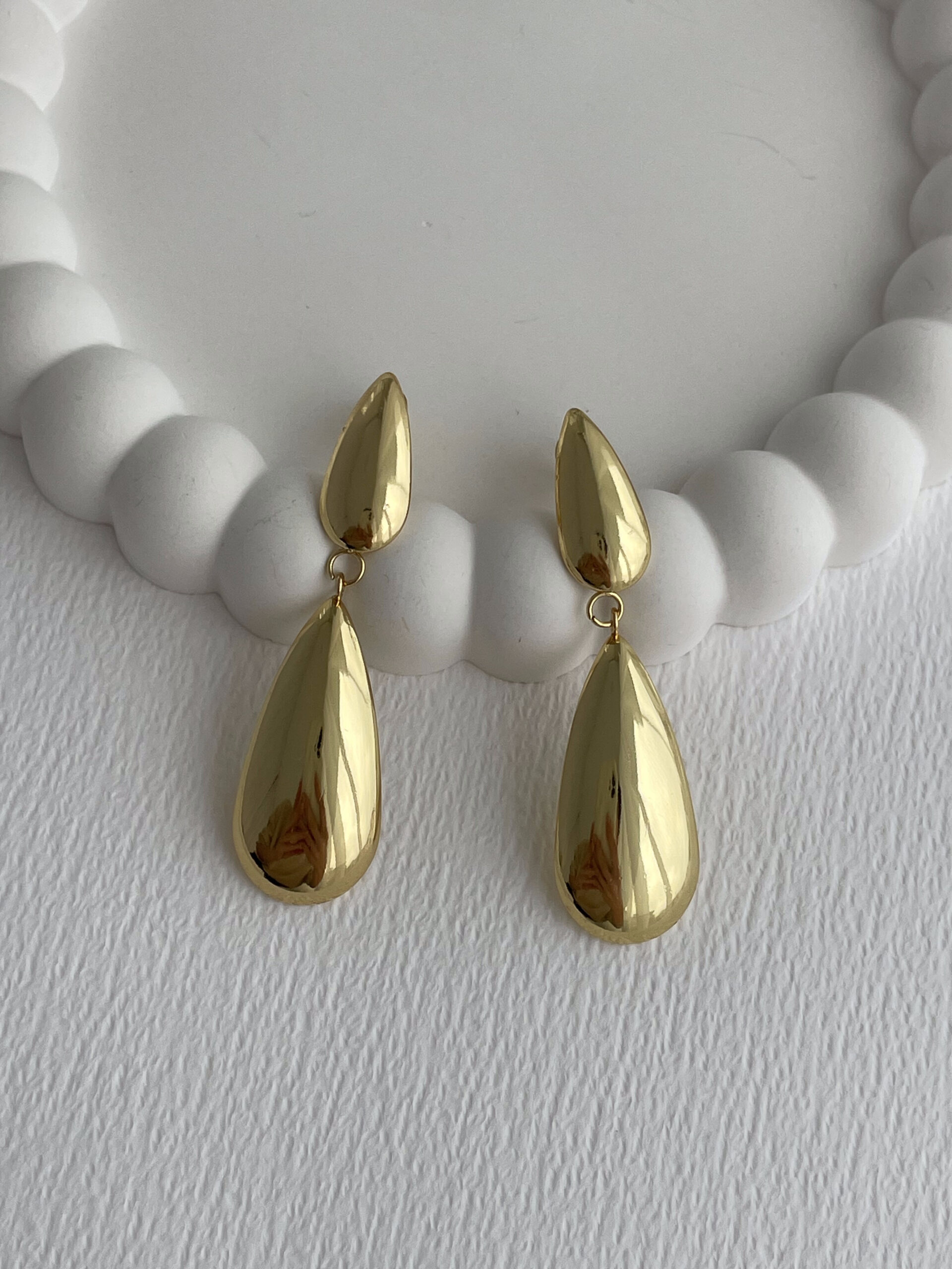 Çelik İkili Damla Tasarım Sallantılı Gold Küpe