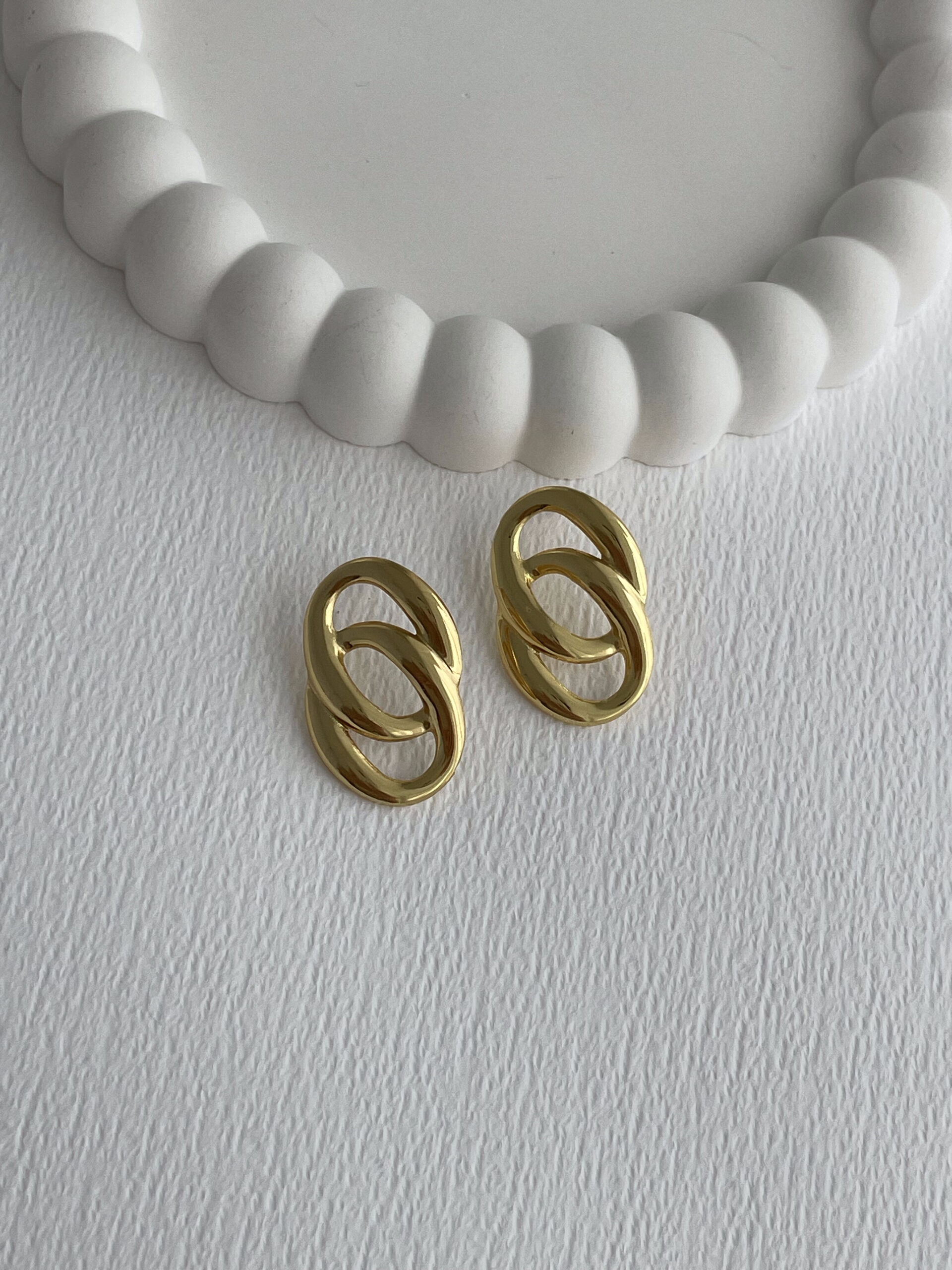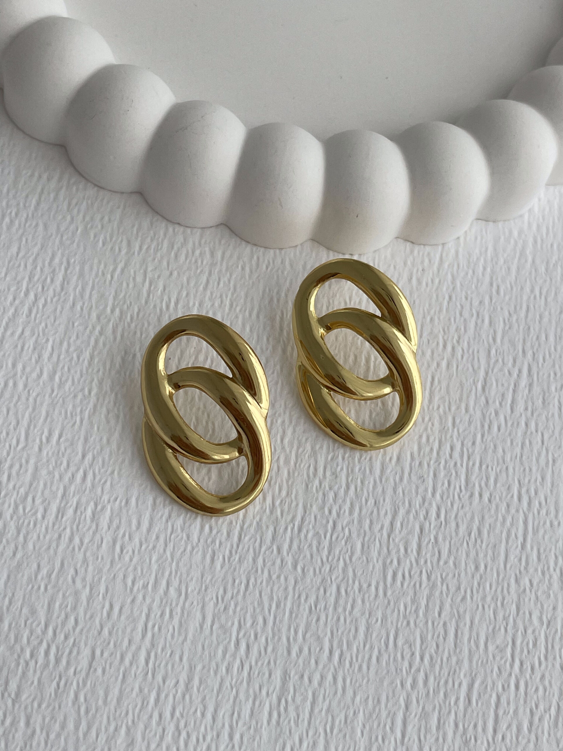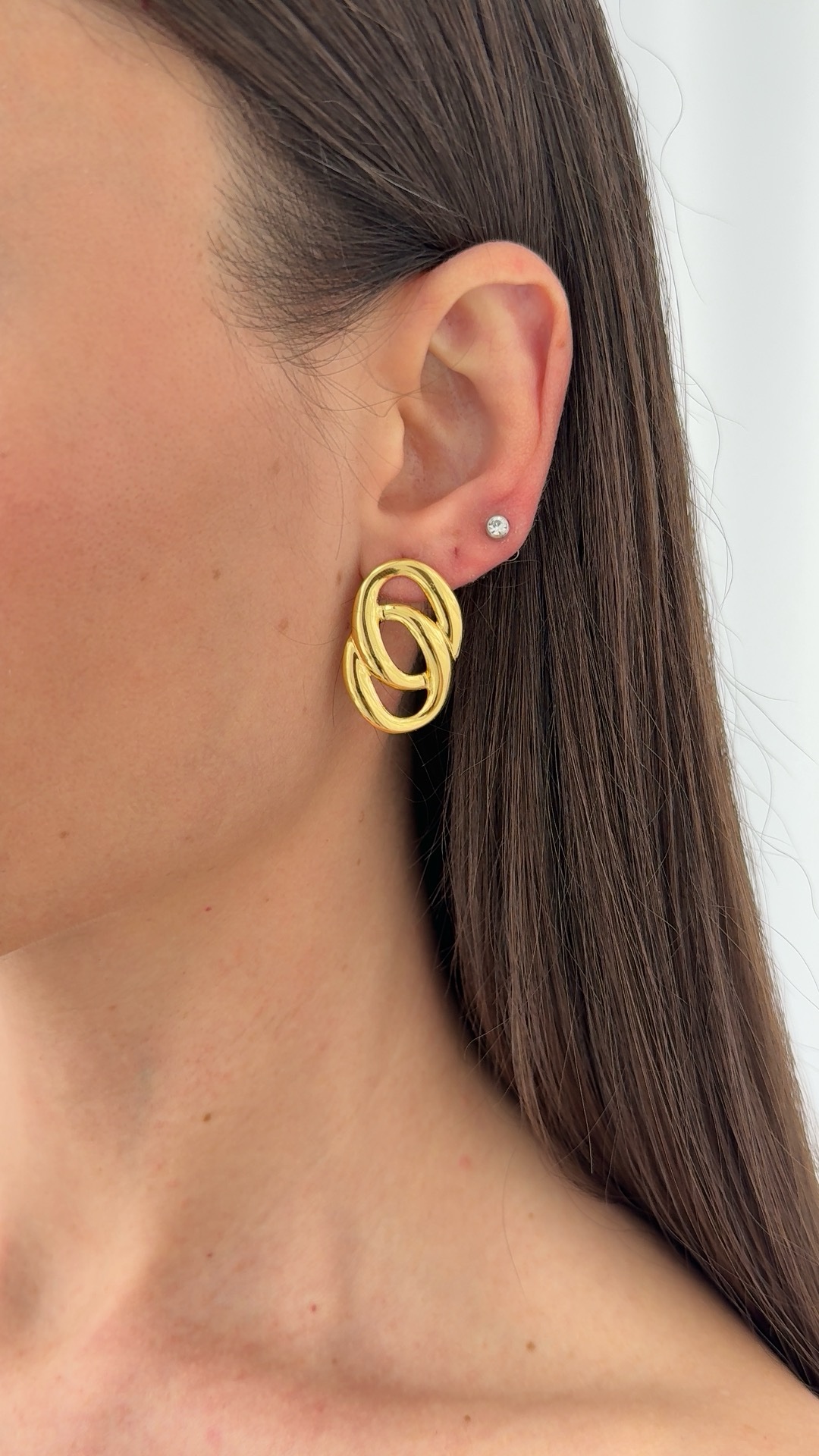 Çelik İkili Oval Tasarım Gold Küpe