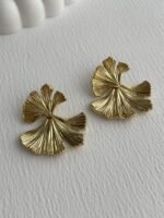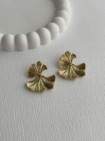Çelik İkili Yaprak Tasarım Gold Küpe