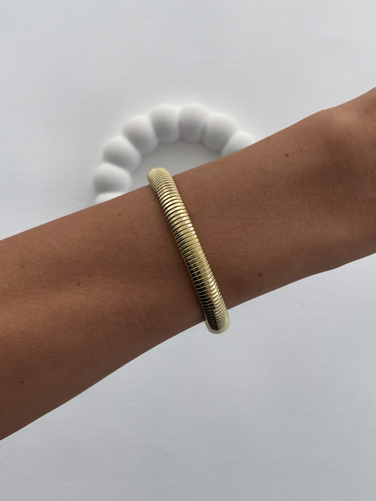 Çelik İnce Tırtık Model Lastikli Gold Bileklik 8mm 20cm