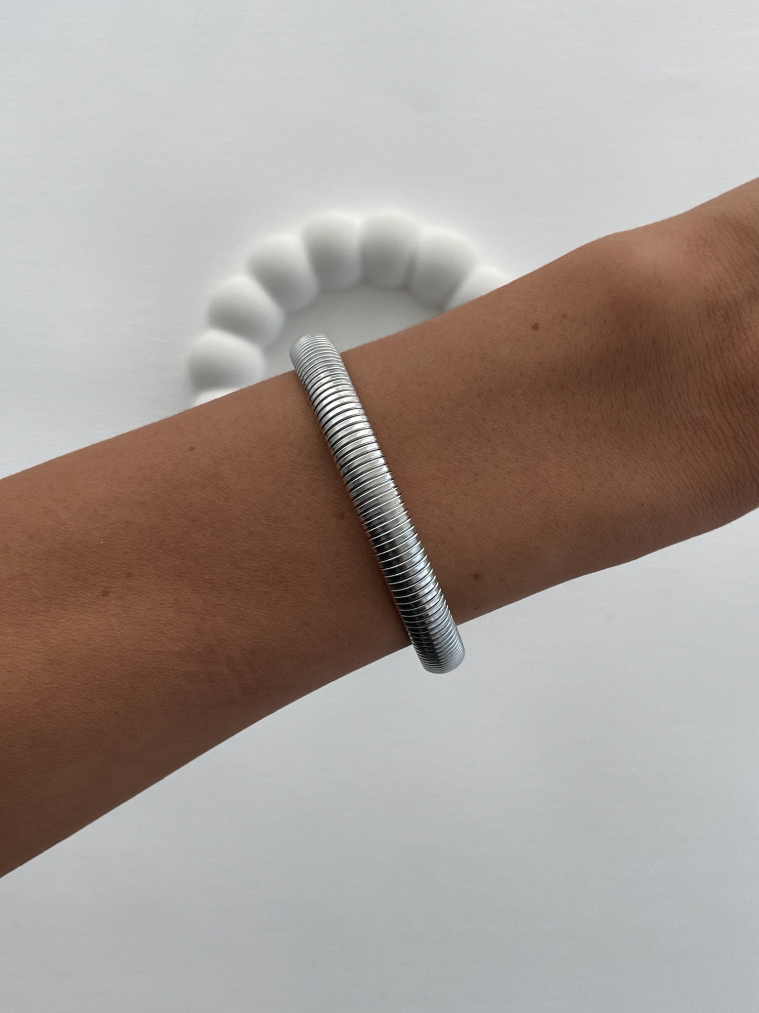 Çelik İnce Tırtık Model Lastikli Gümüş Bileklik 8mm 20cm