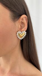 Çelik İnci Detay Kalp Tasarım Gold Küpe
