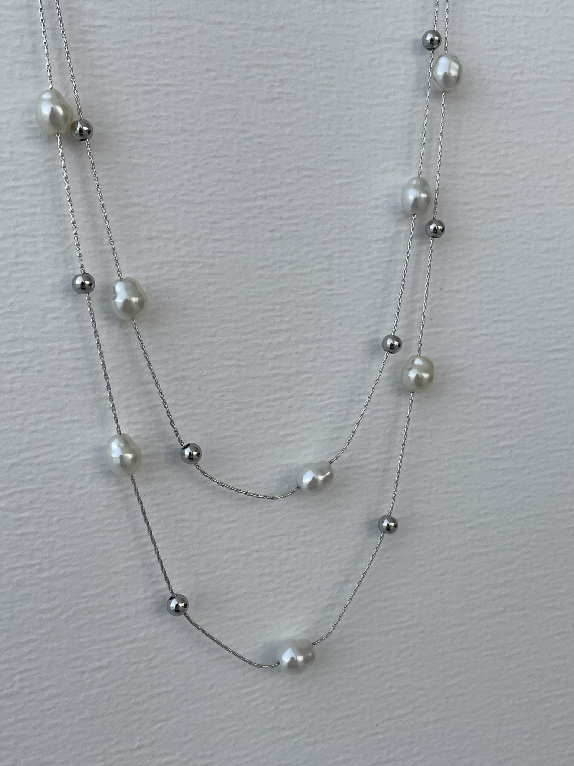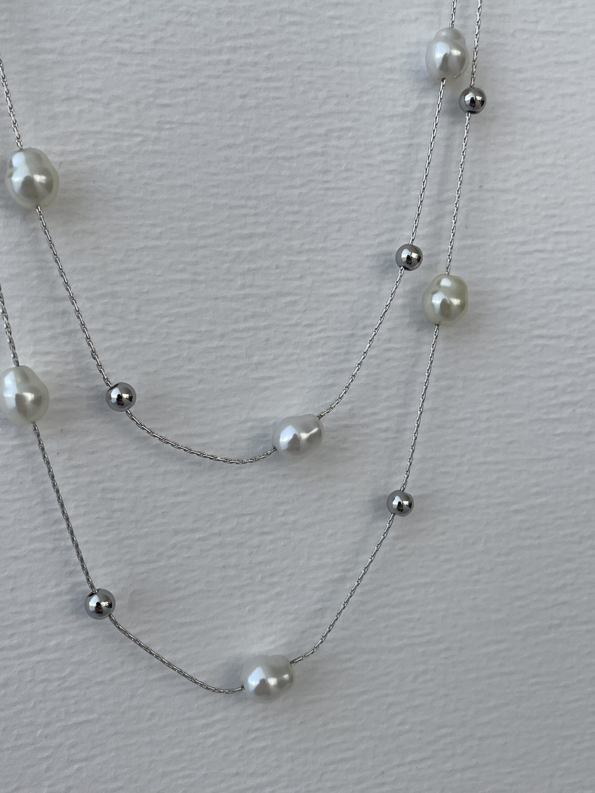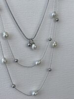 Çelik İnci Detaylı İkili Gümüş Kolye