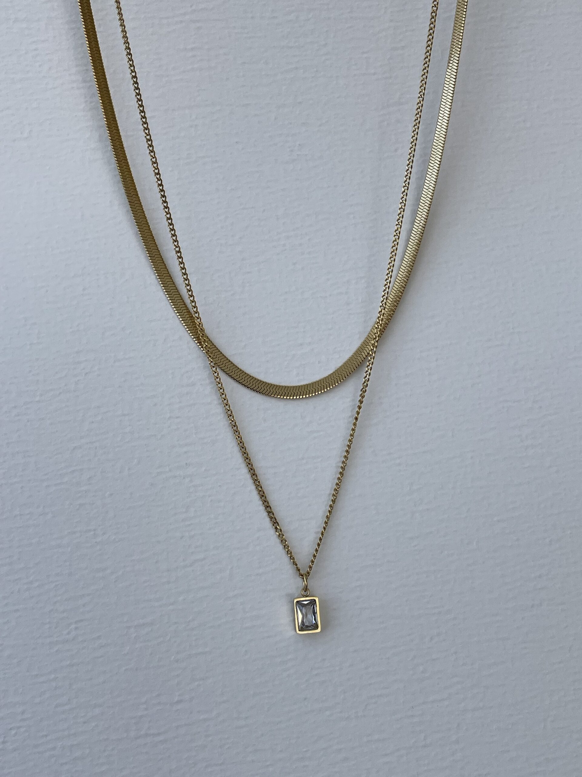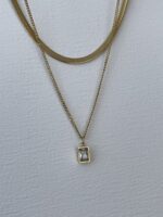 Çelik İtalyan Zincir Baget Taşlı İkili Gold Kolye