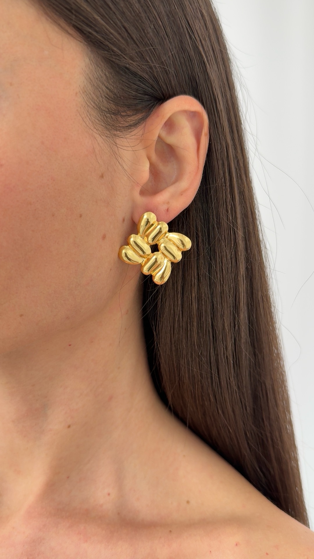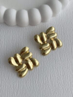 Çelik Kabartmalı Kare Tasarım Gold Küpe