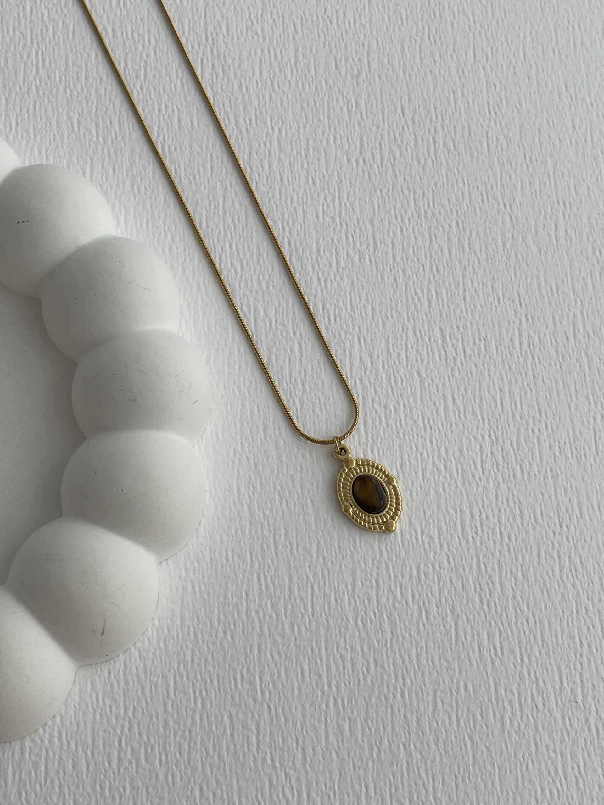 Çelik Kahverengi Mineli Gold Vintage Kolye