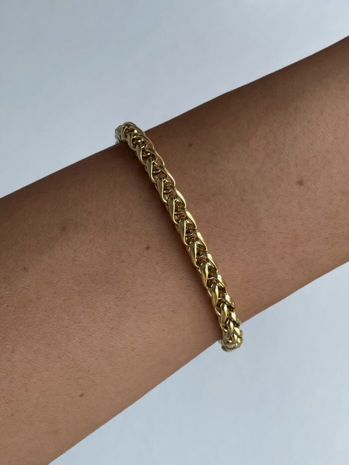 Çelik Kalın Burgu Tasarım Gold Bileklik 4mm