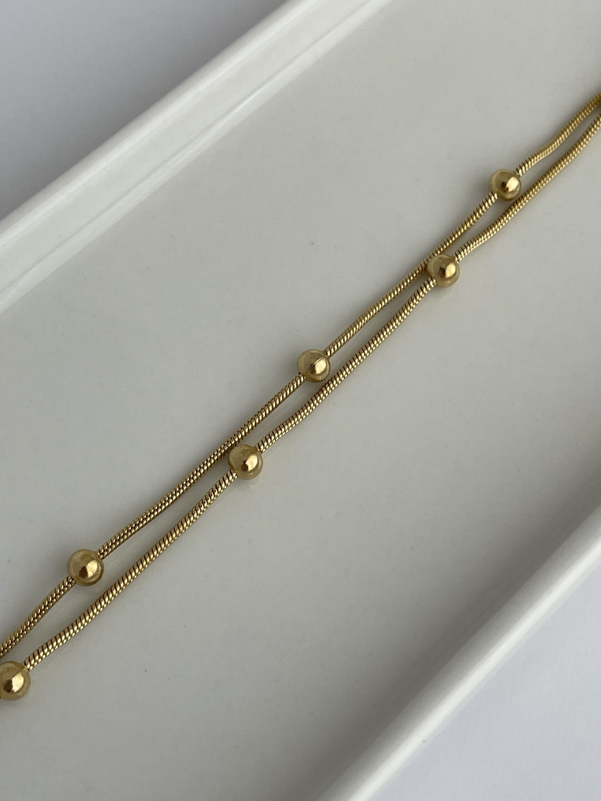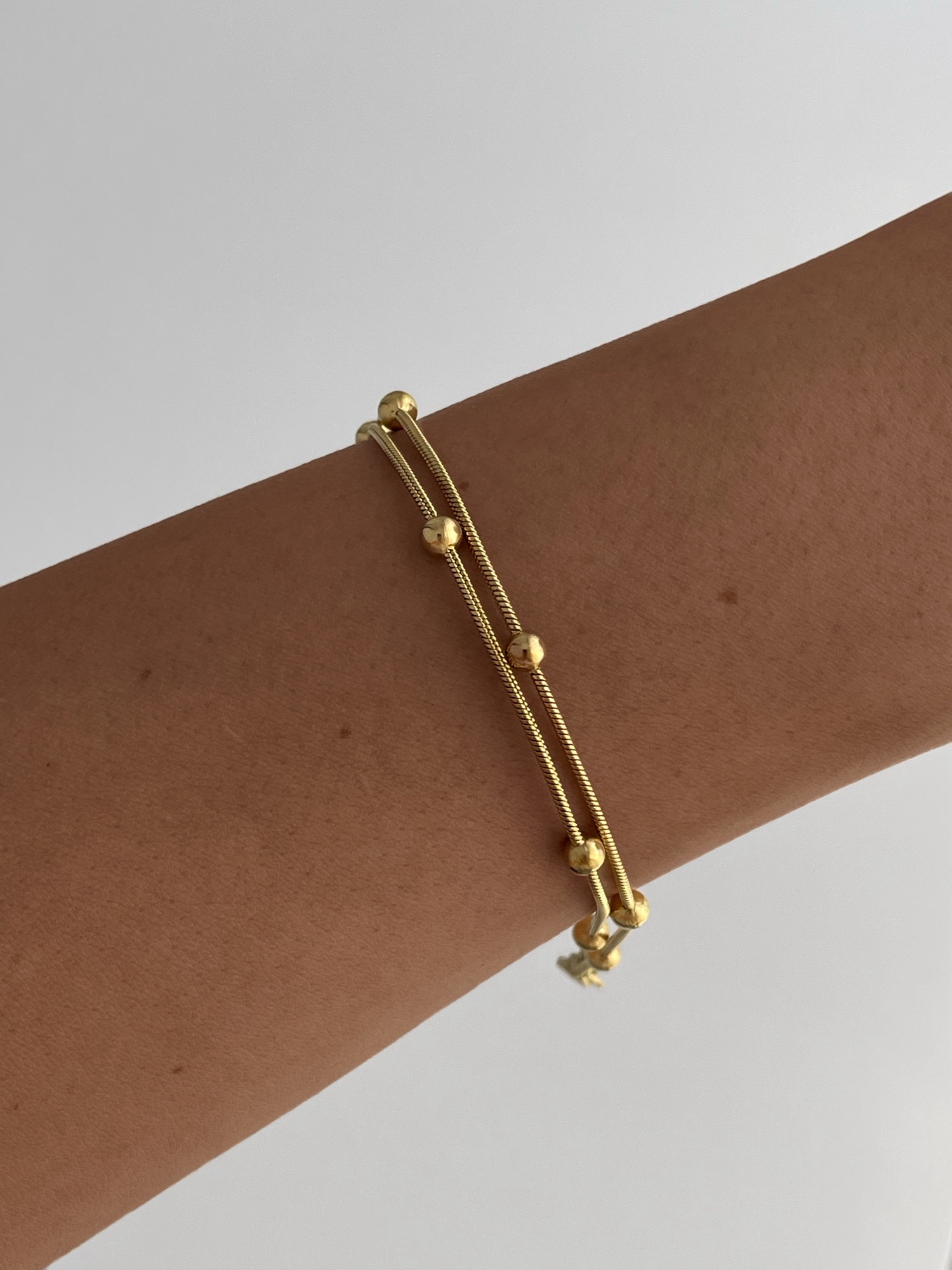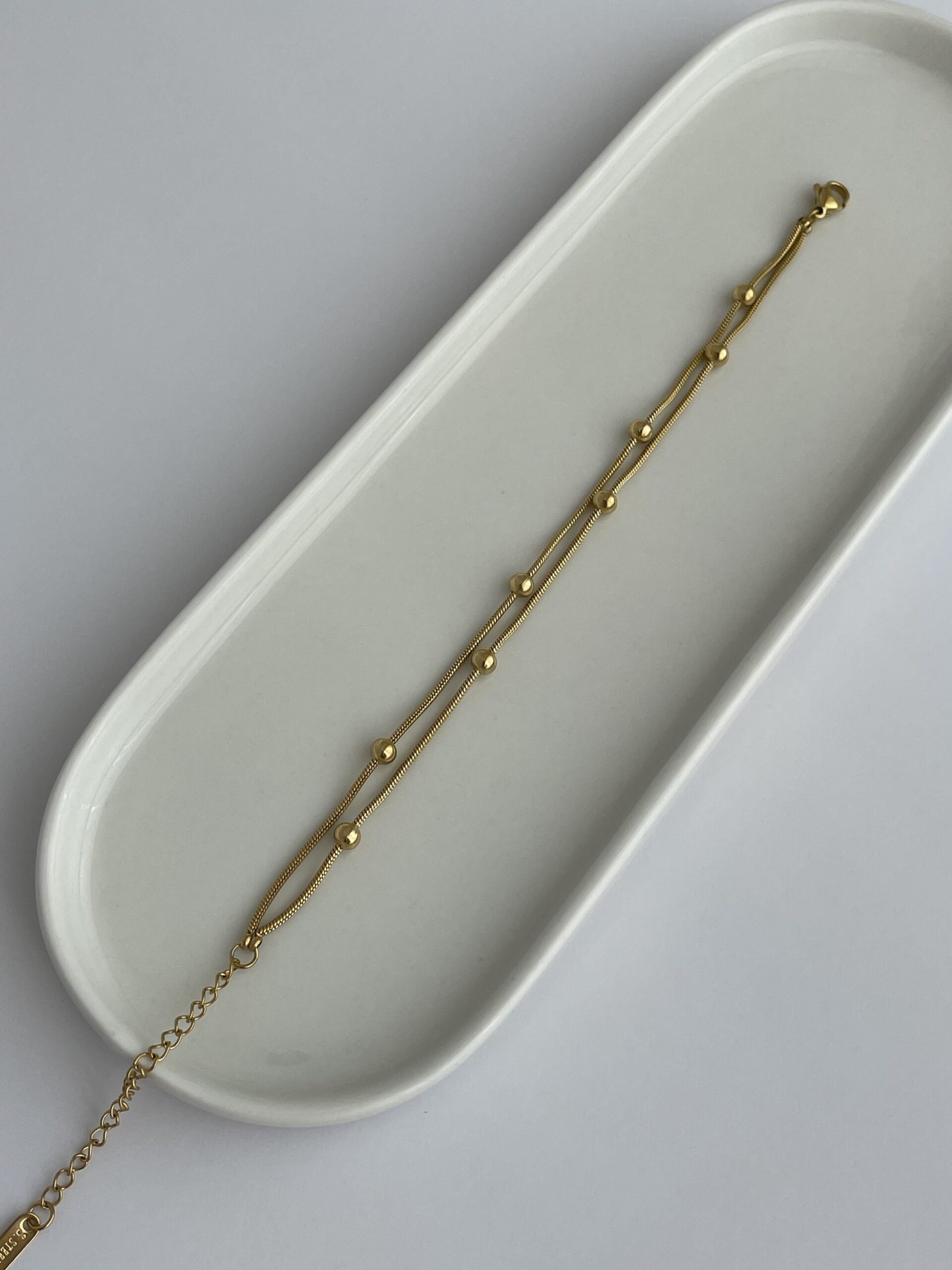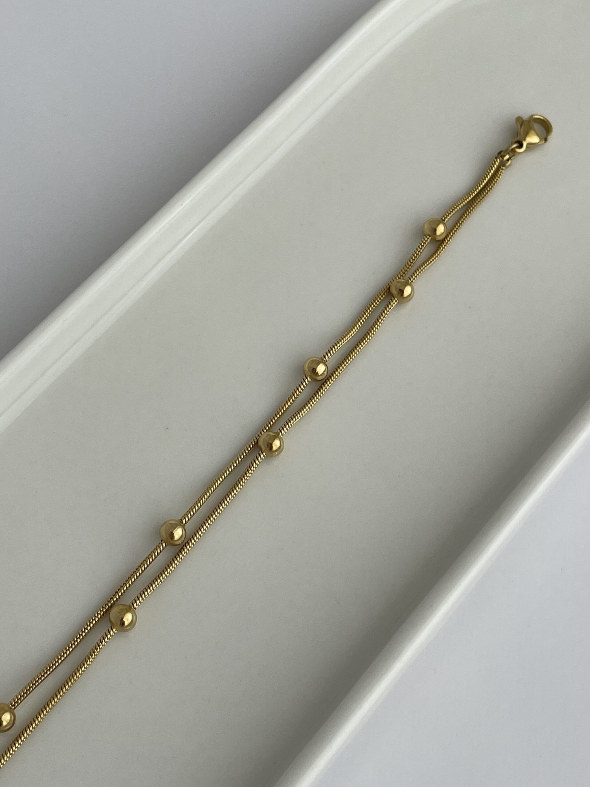 Çelik Kalın Top Detaylı İkili Zincir Gold Bileklik
