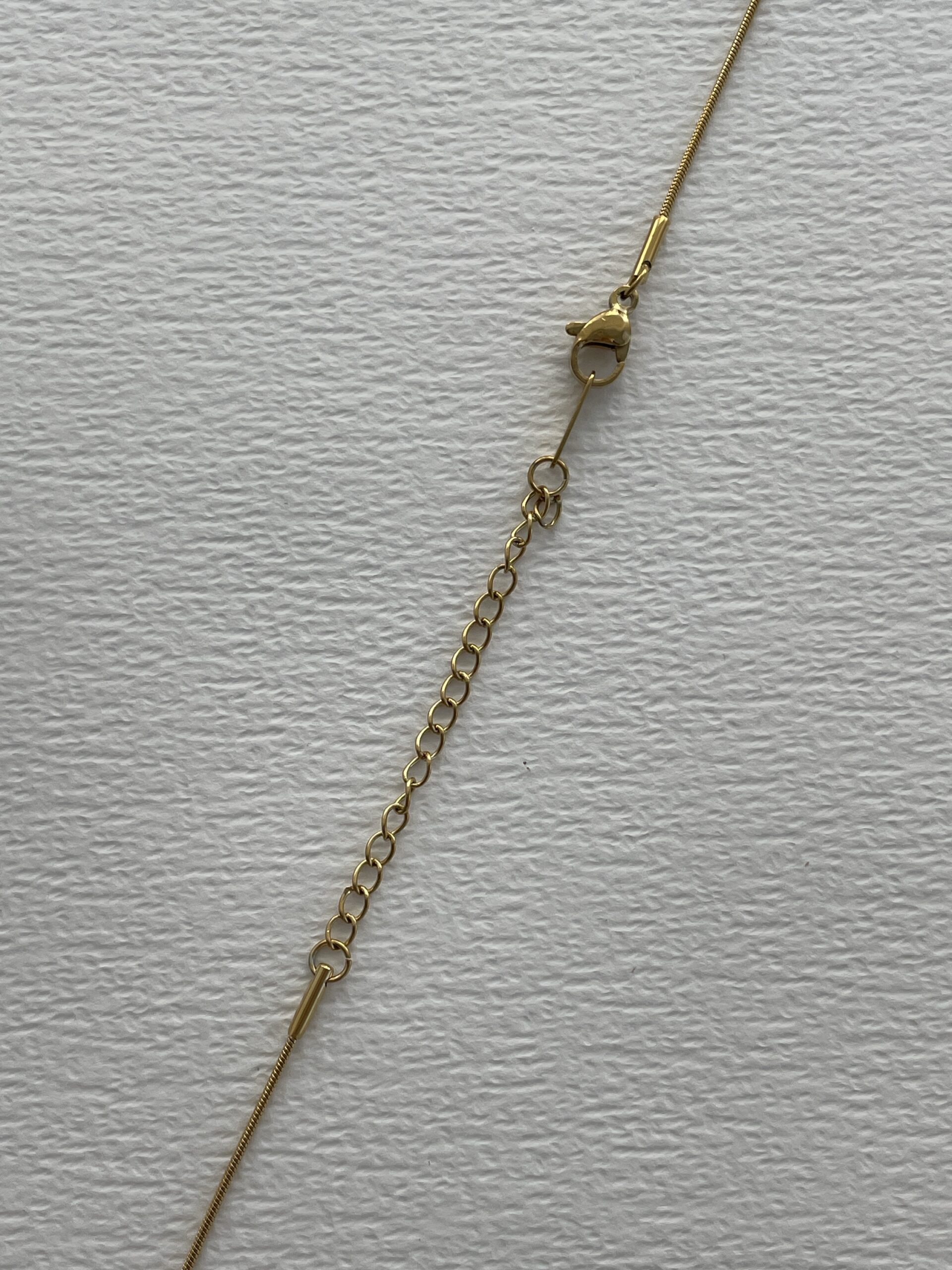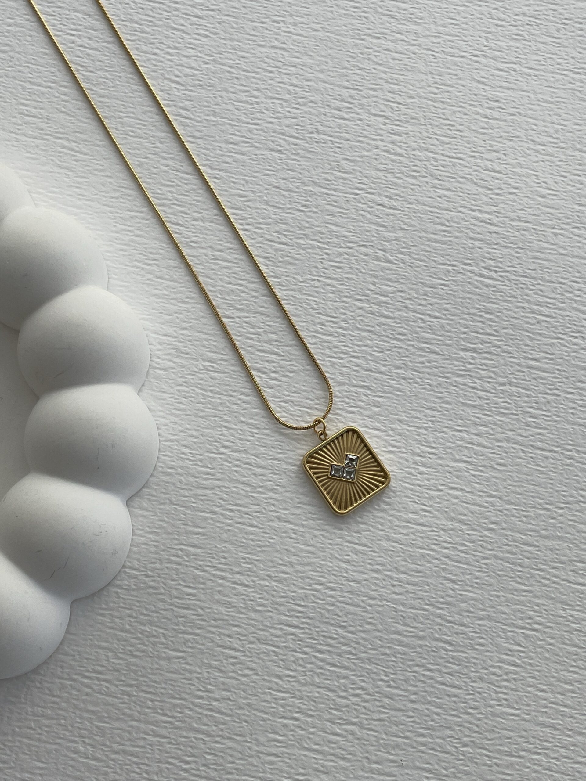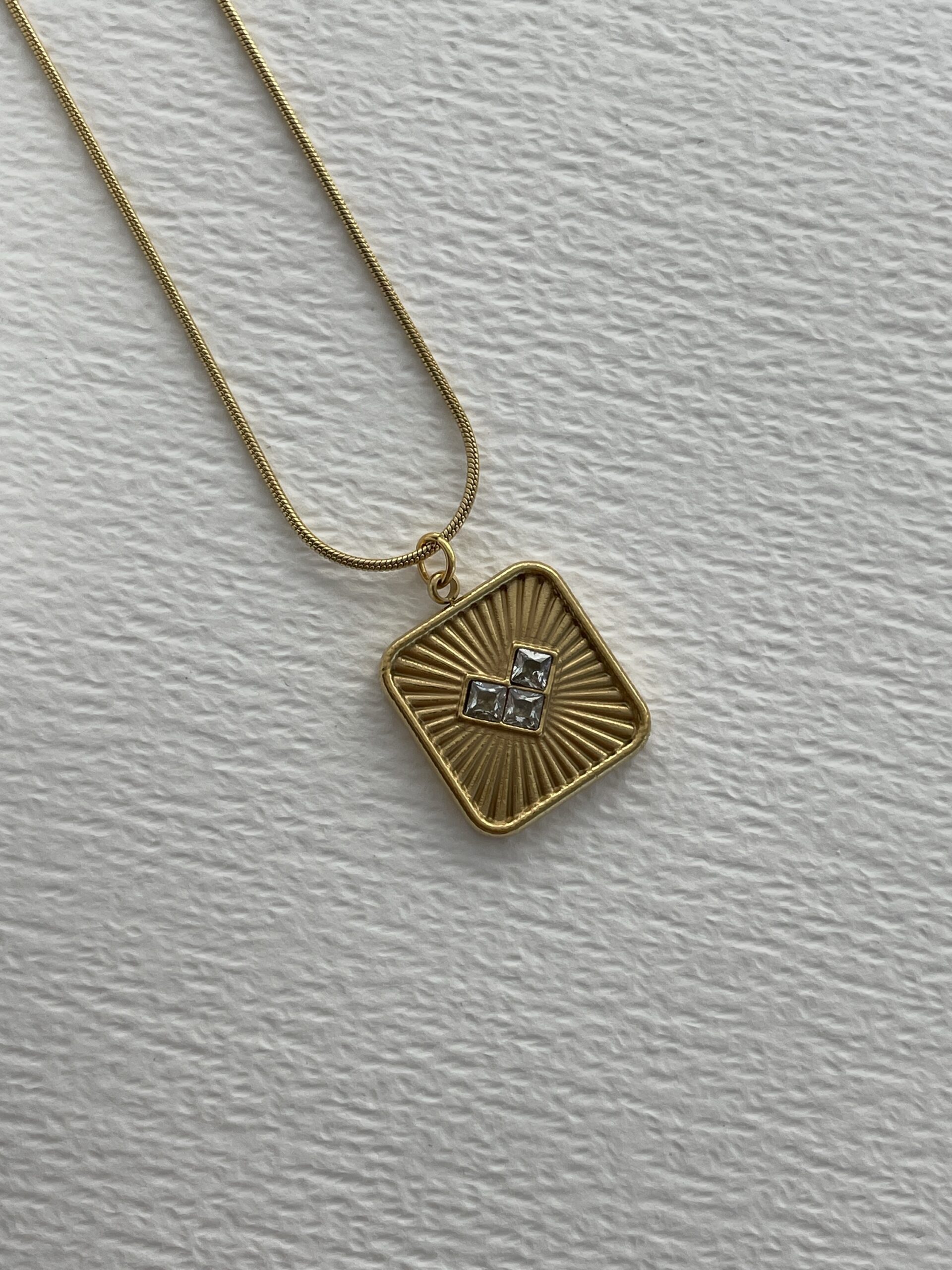 Çelik Kalp Baget Taş Detay Kare Gold Kolye