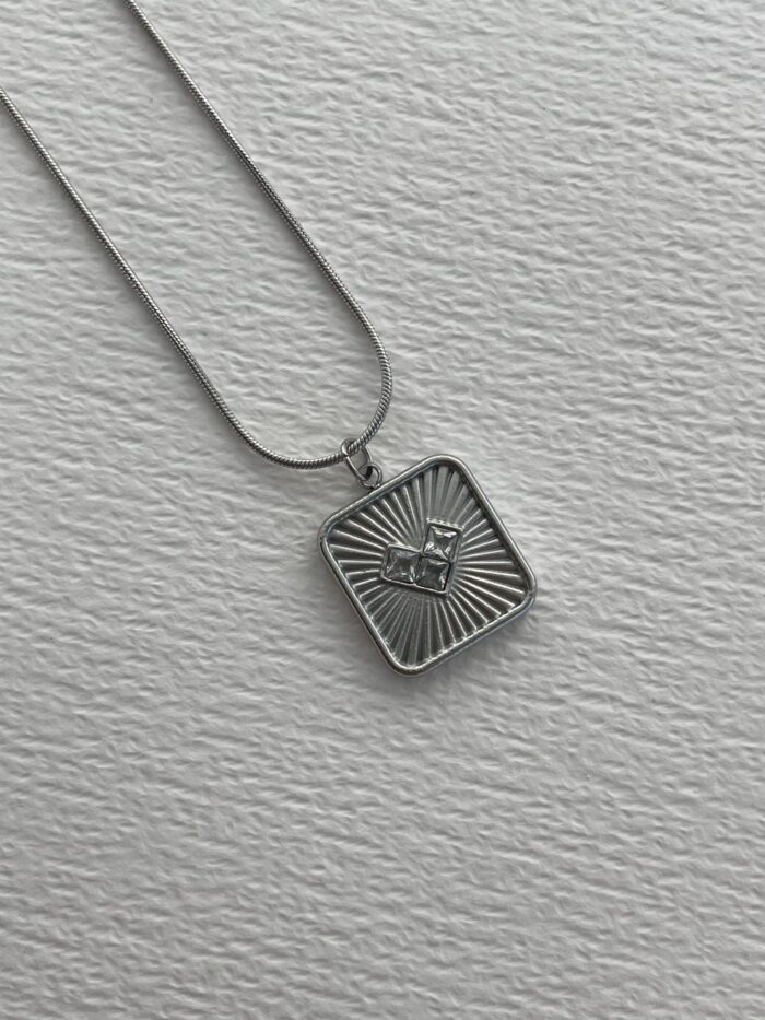 Çelik Kalp Baget Taş Detay Kare Gümüş Kolye