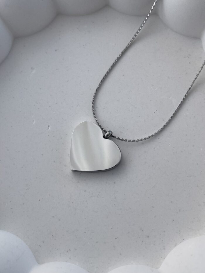 Çelik Kalp Tasarım Gümüş Kalın Plaka Kolye