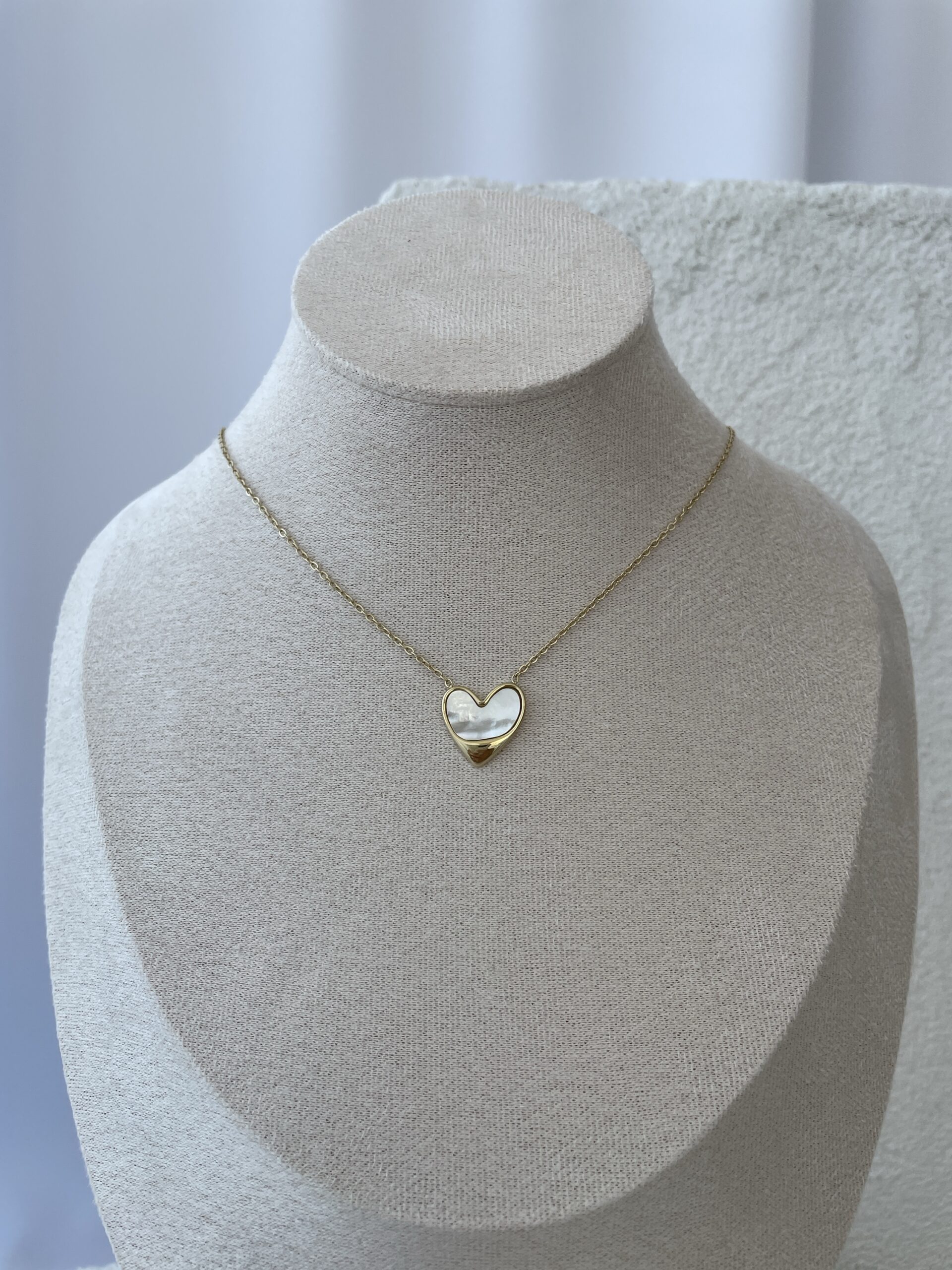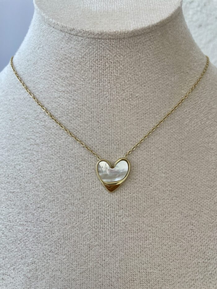 Çelik Kalp Tasarım Sedef Detay Gold Kolye