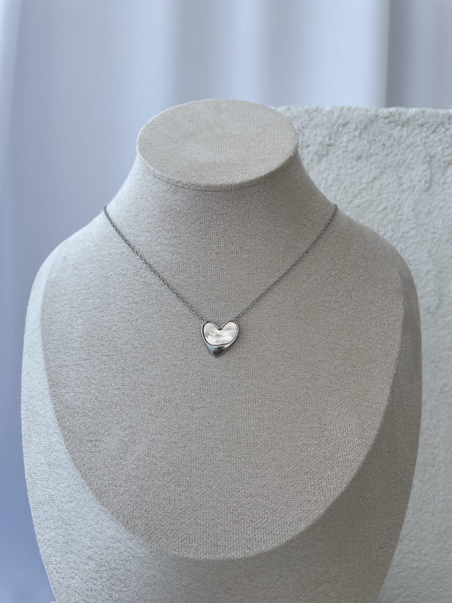 Çelik Kalp Tasarım Sedef Detay Gümüş Kolye
