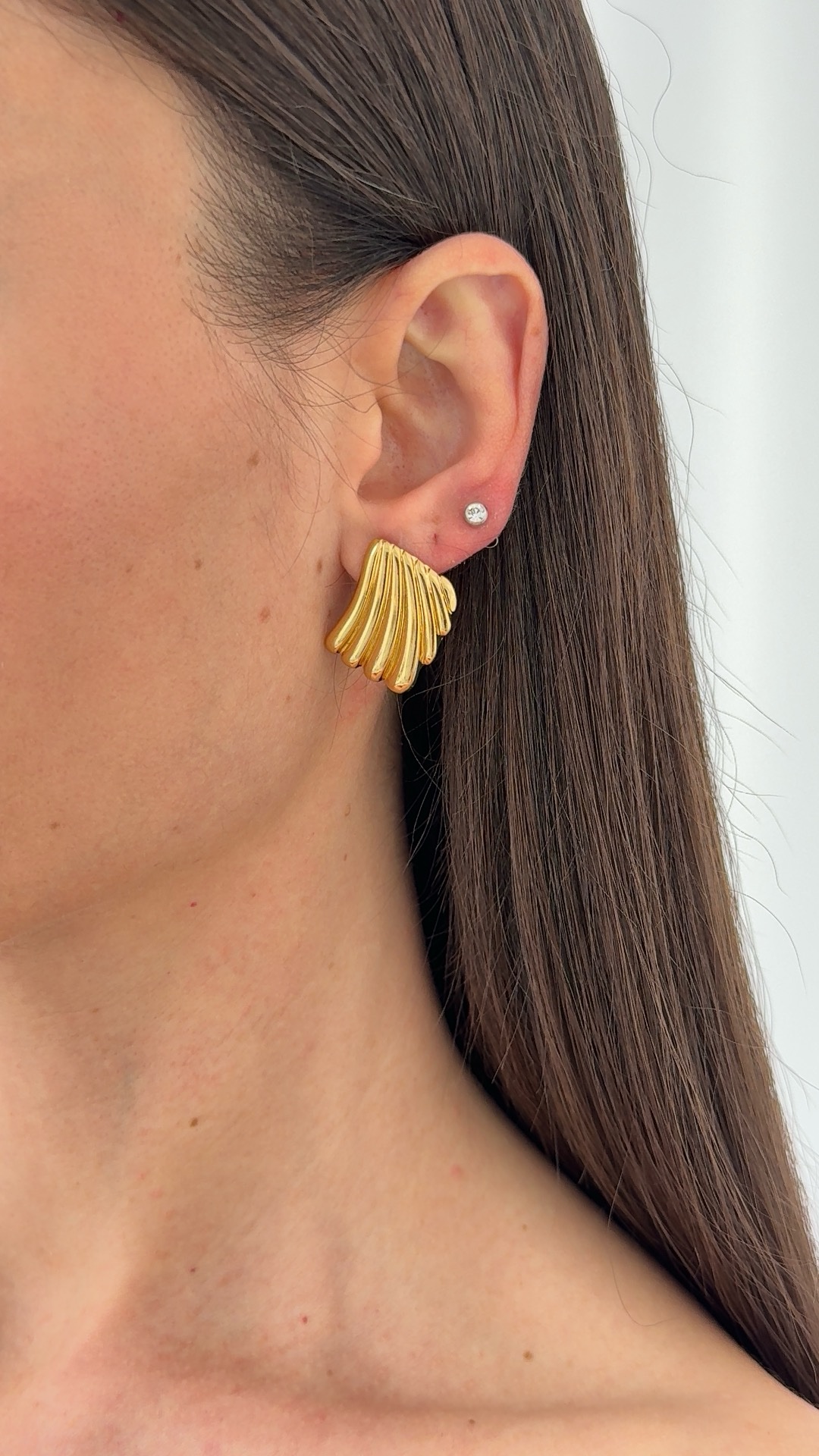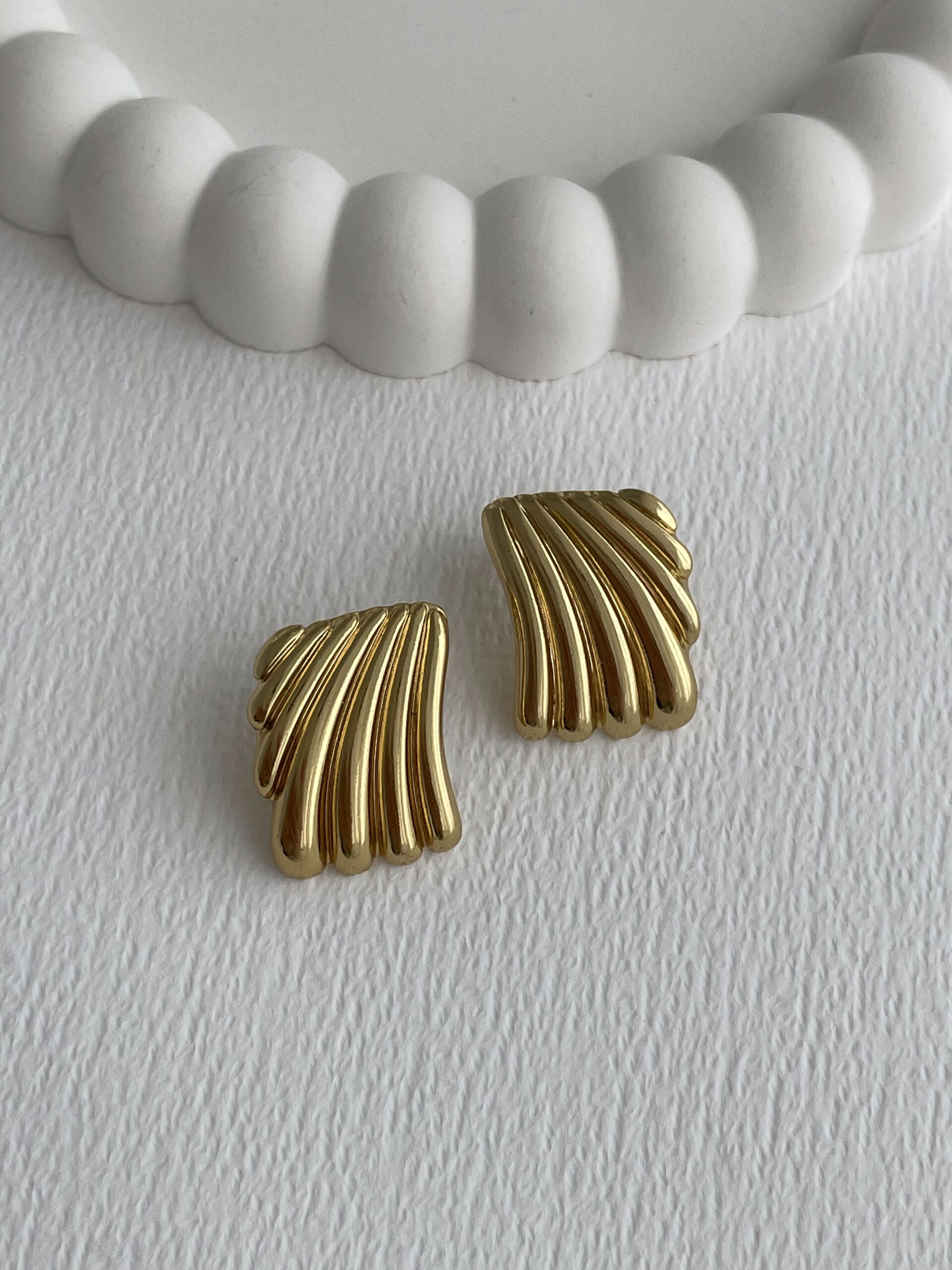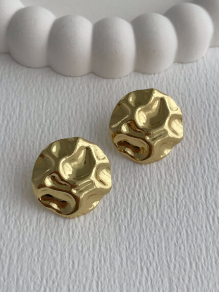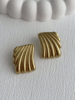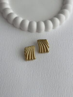 Çelik Tırtık Desen Geometrik Tasarım Gold Küpe