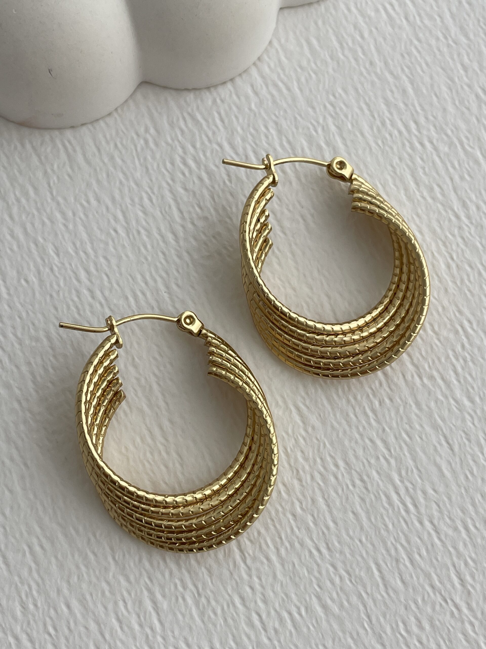 Çelik Kesik Çubuk Sarmal Tasarım Gold Küpe