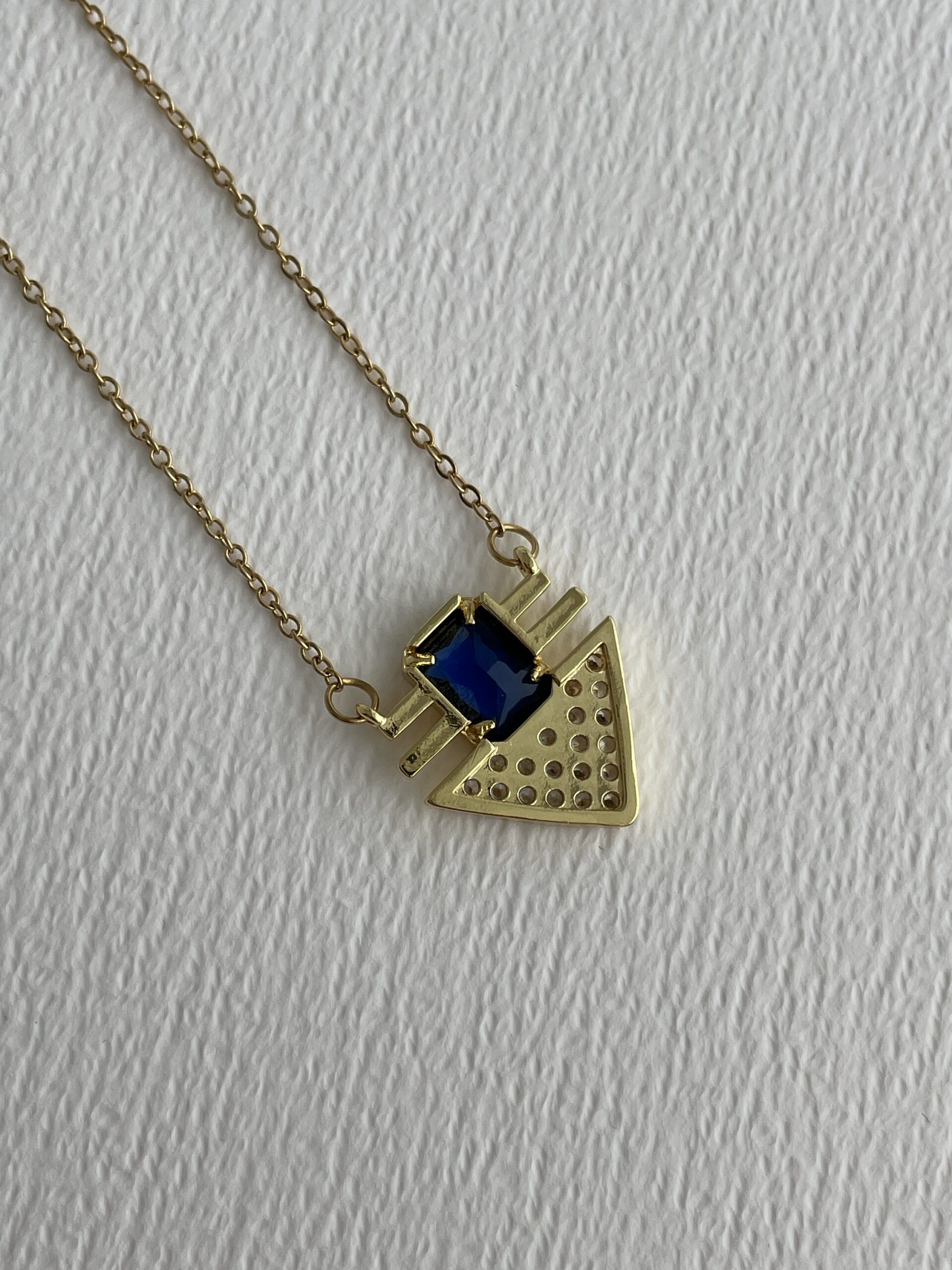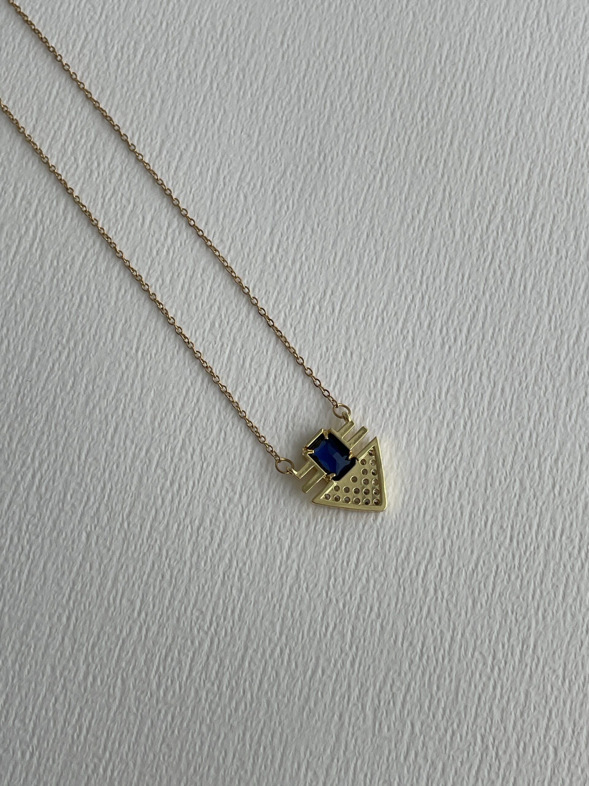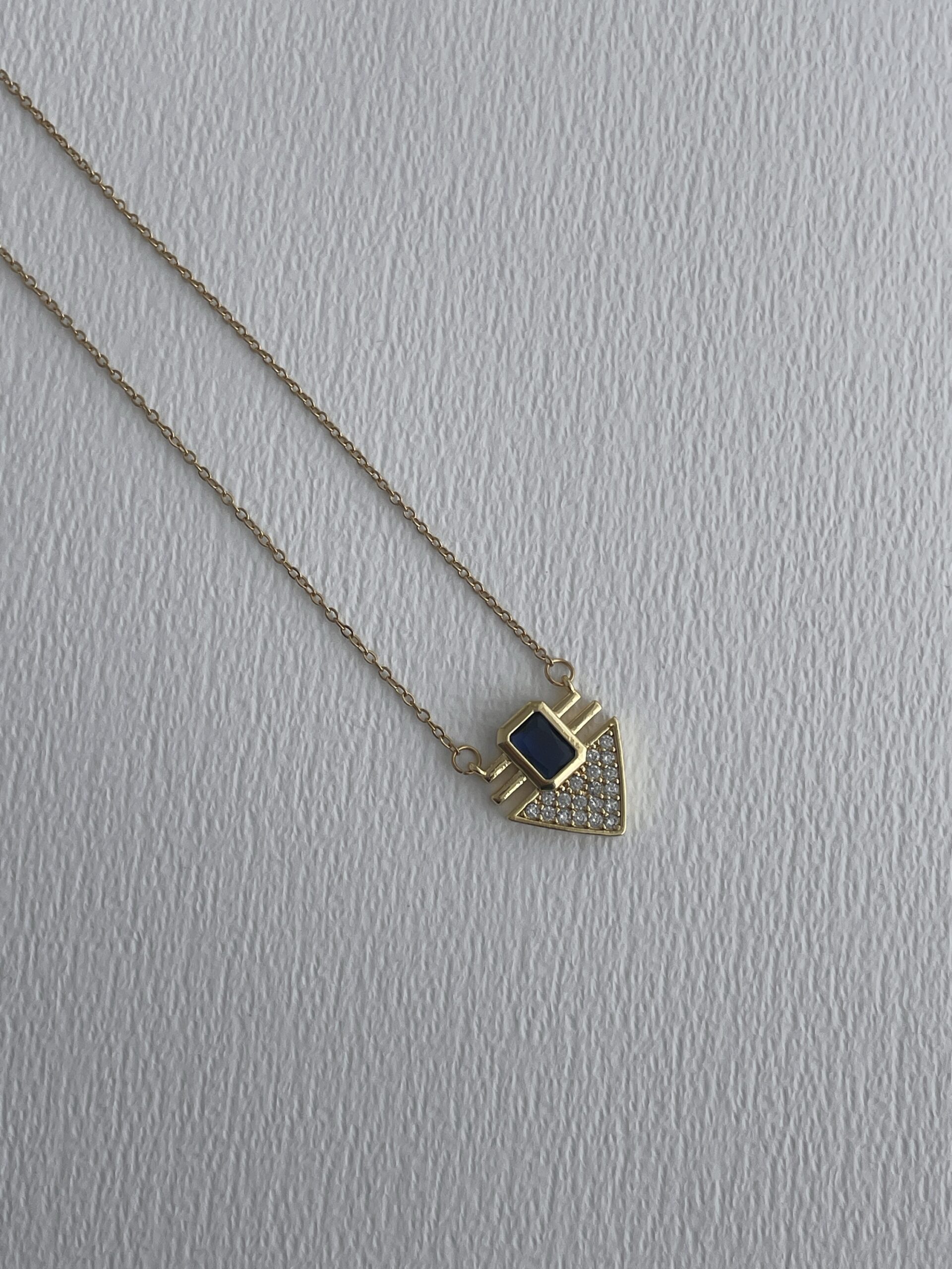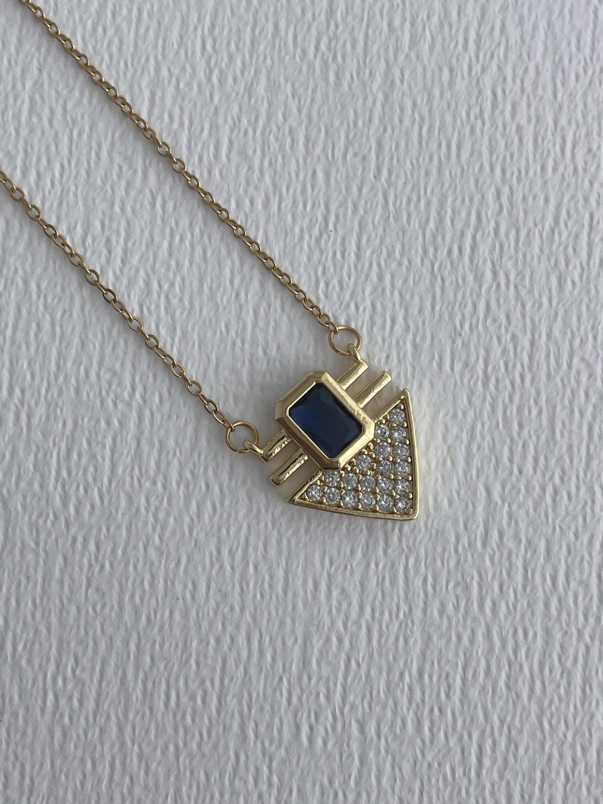 Çelik Zirkon & Lacivert Taşlı Marka Model Gold Kolye 45+5cm