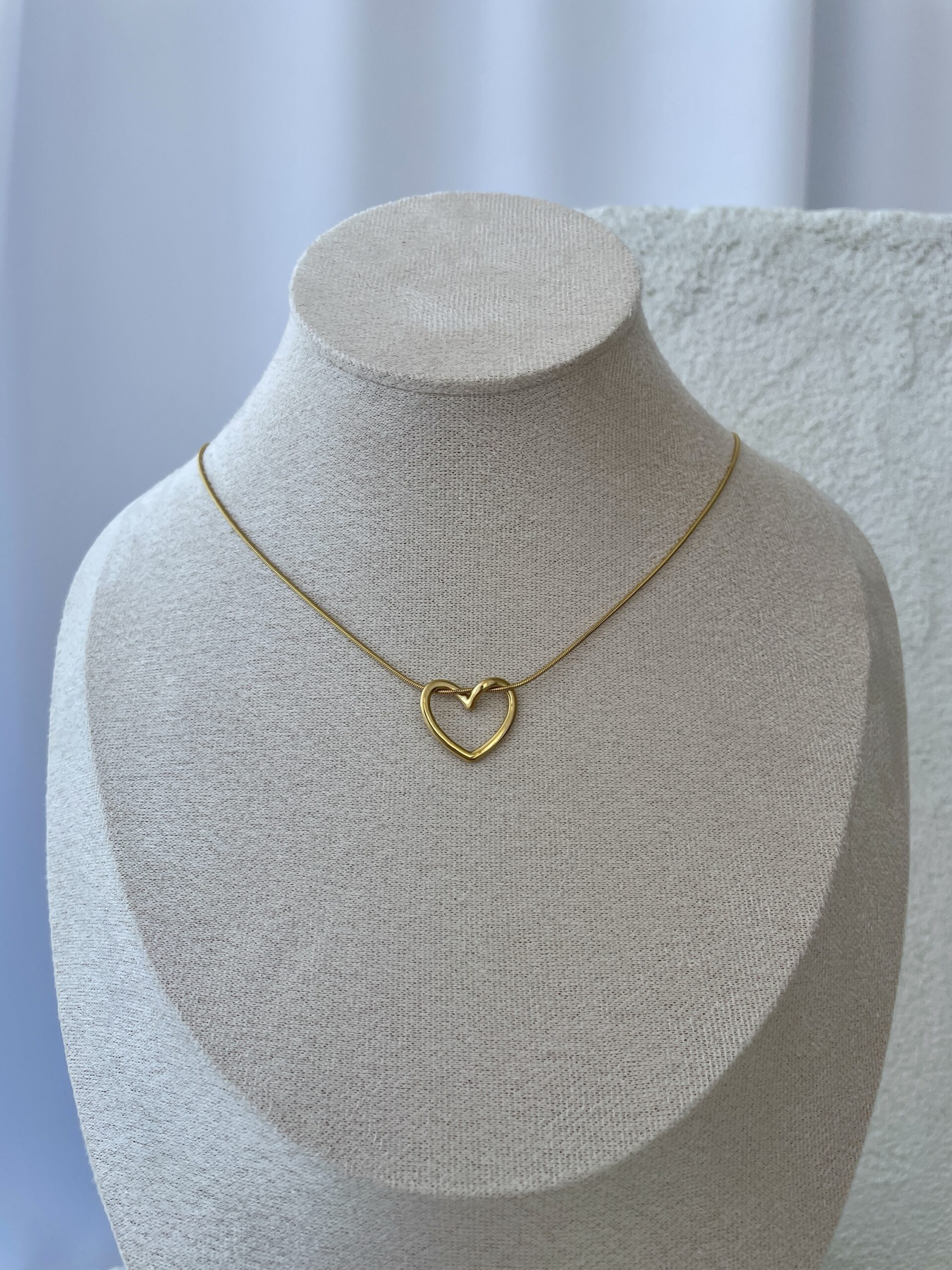 Çelik Minimal Kalp Tasarım Gold Kolye