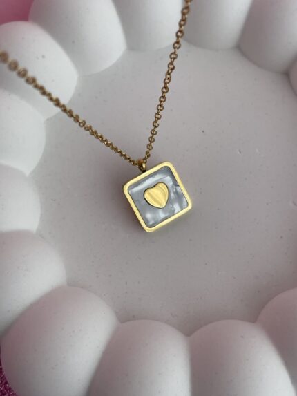Çelik Minimal Kalp Tasarım Gold Kolye