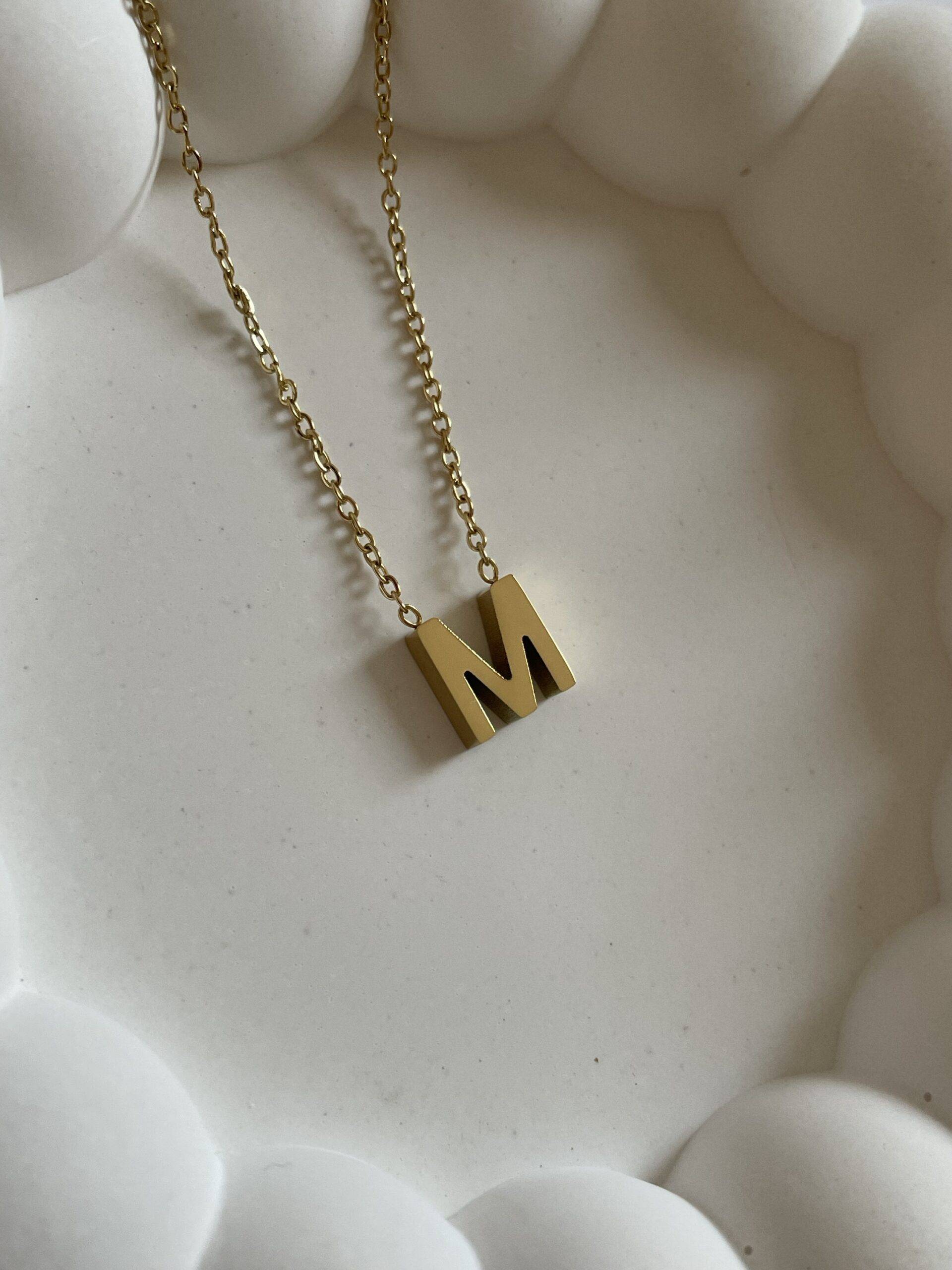 Çelik Minimal M Harfli Kolye
