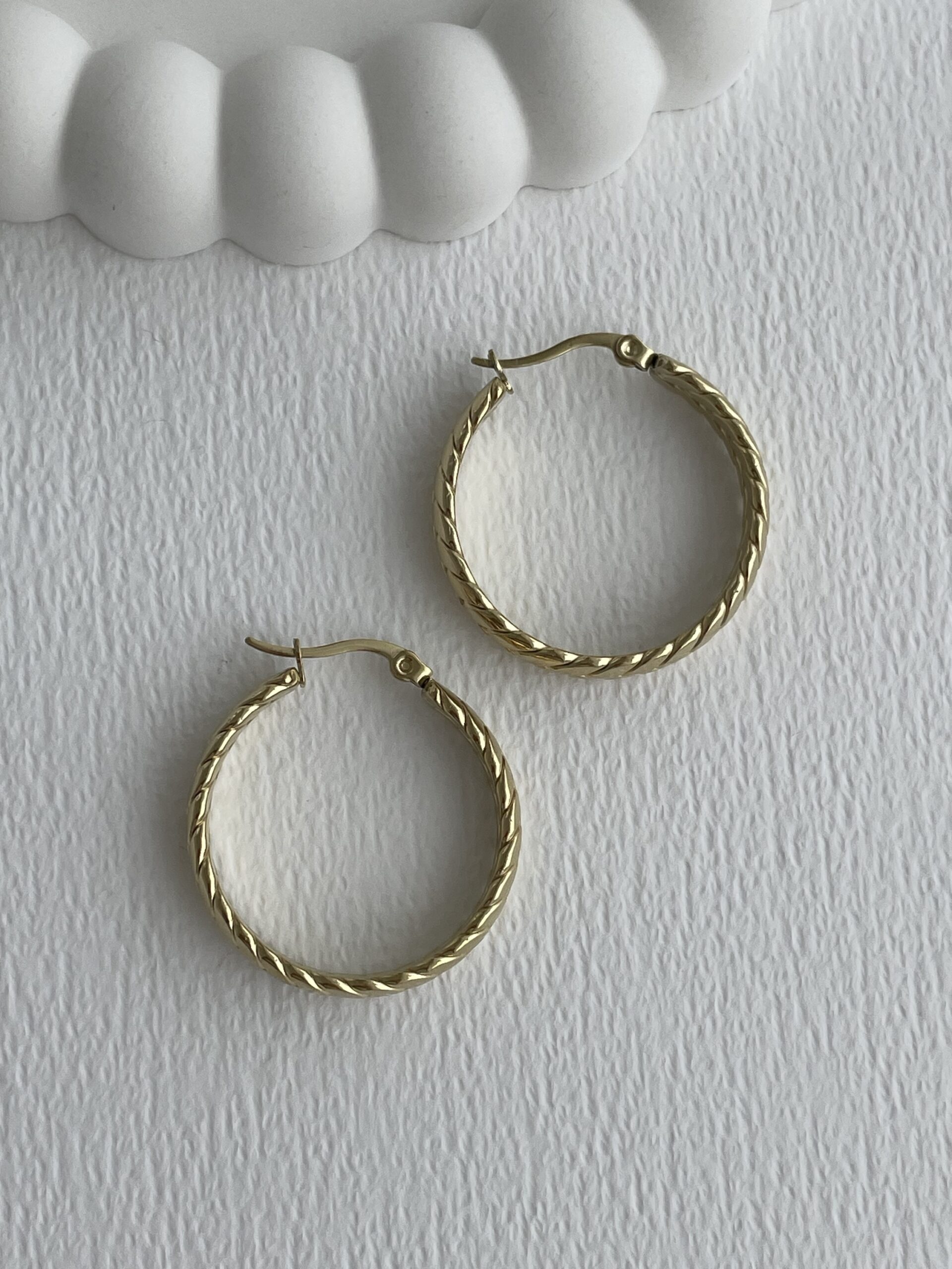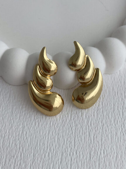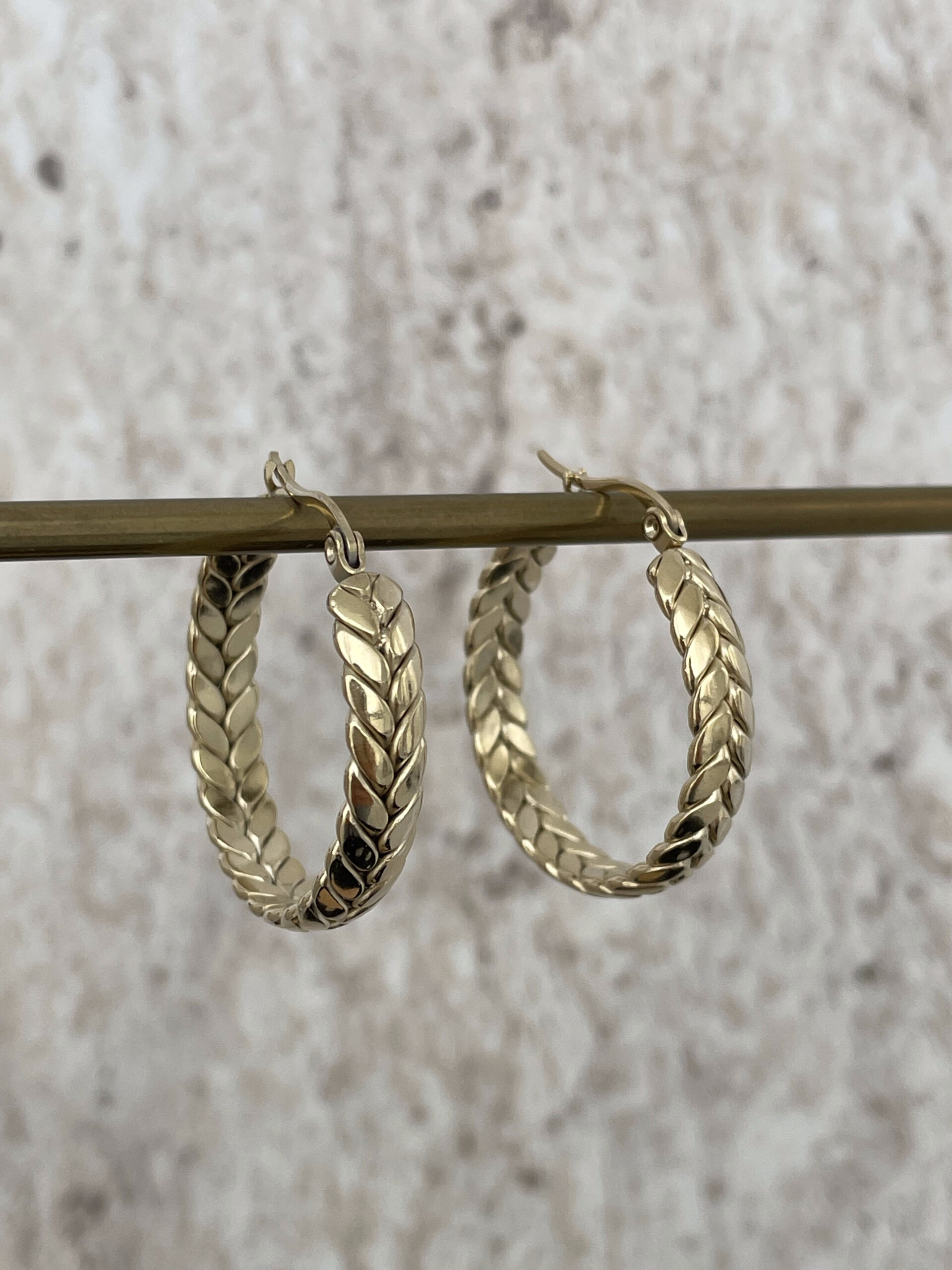 Çelik Örgü Tasarım Gold Halka Küpe