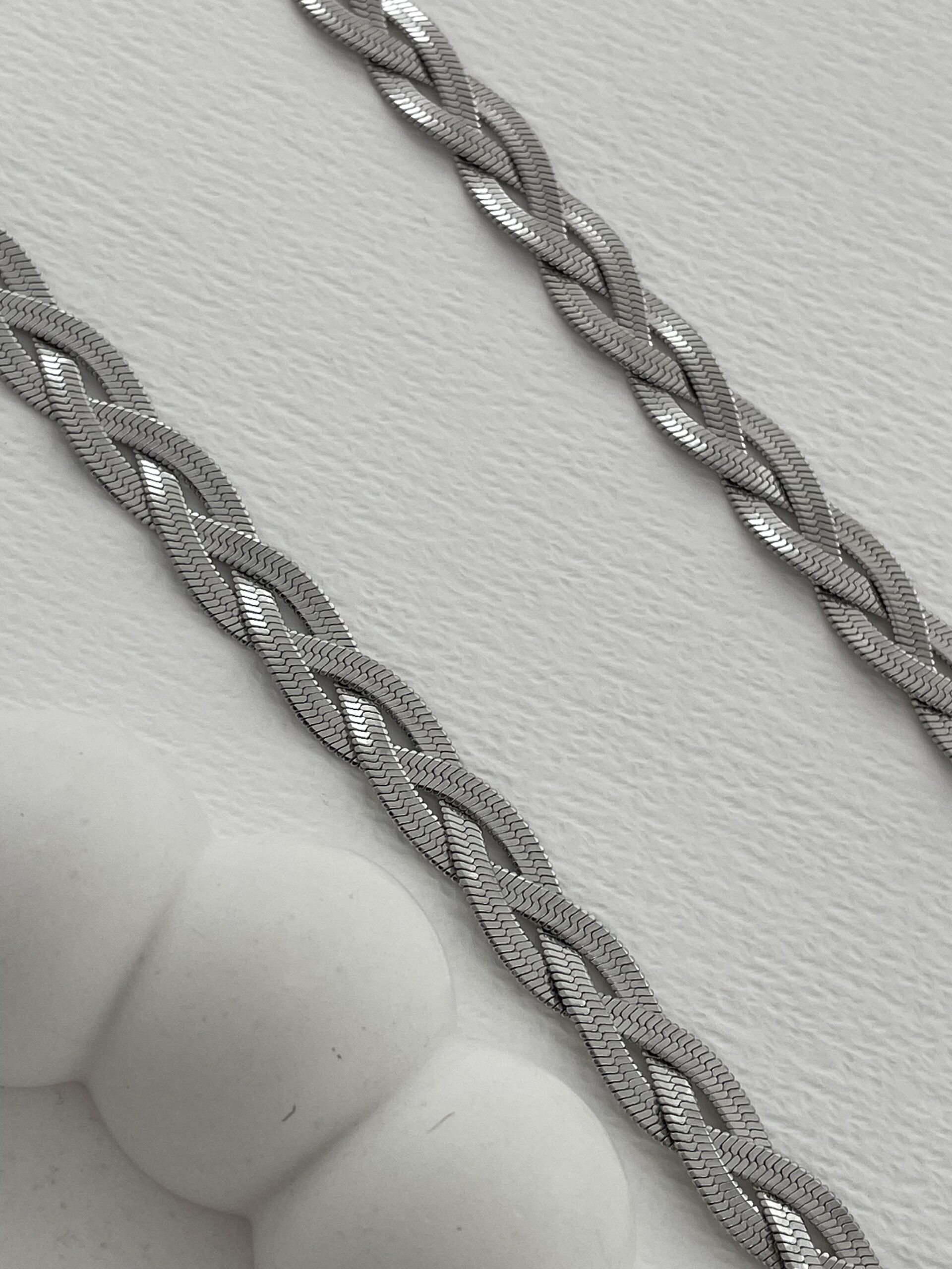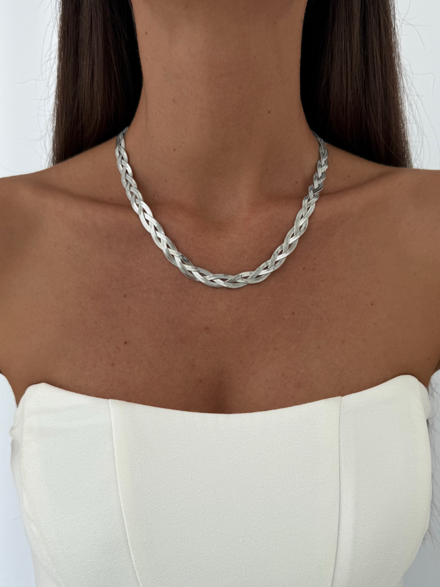 Çelik Örgü Tasarım İtalyan Zincir Gümüş Kolye