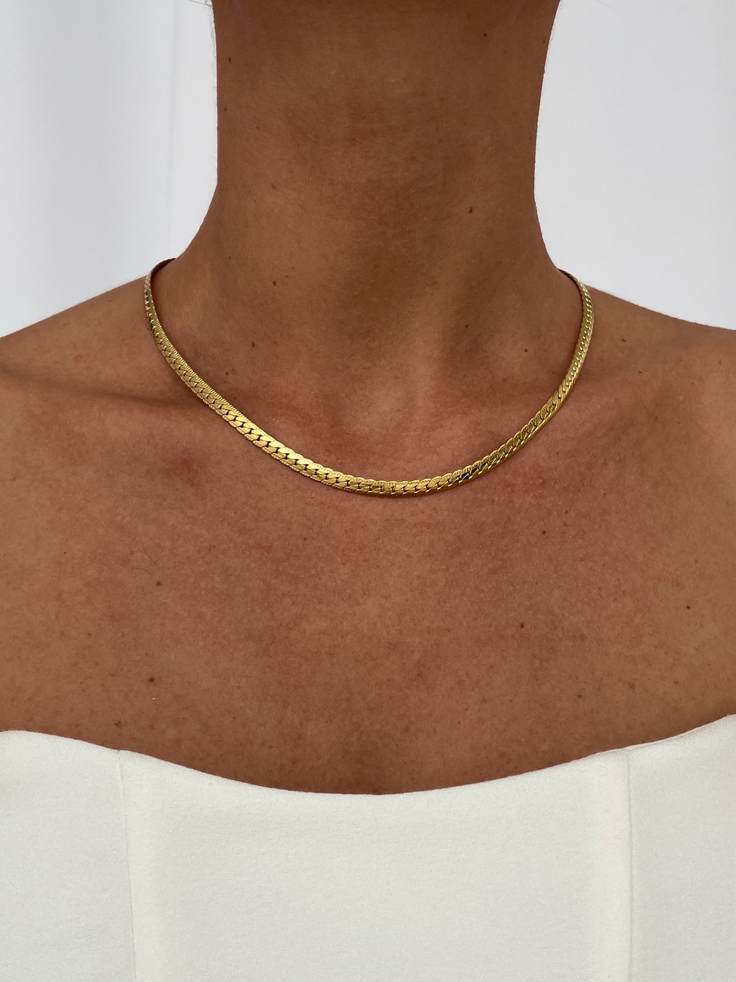 Çelik Örme Desen Gold Ezme Kolye 45cm
