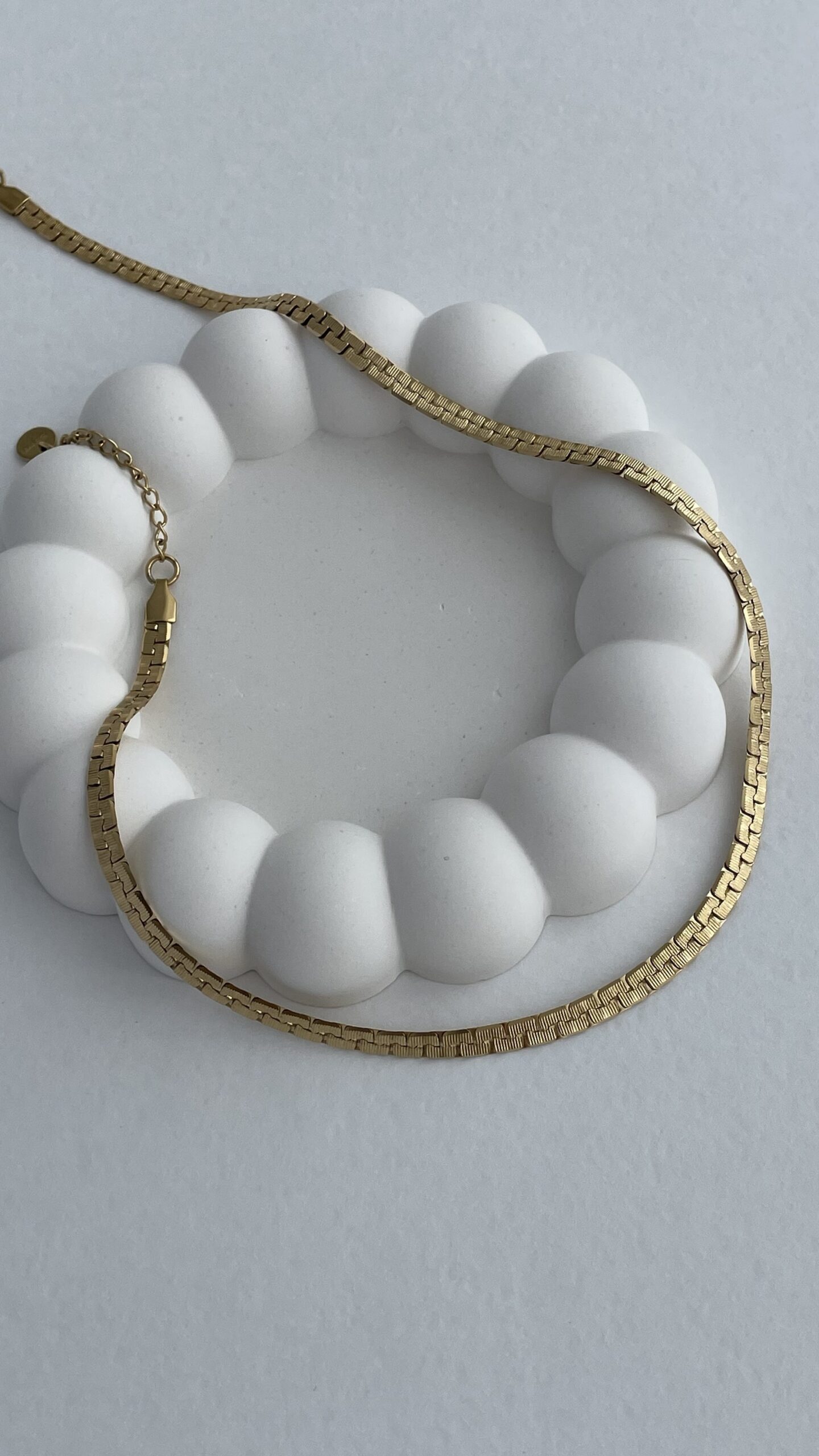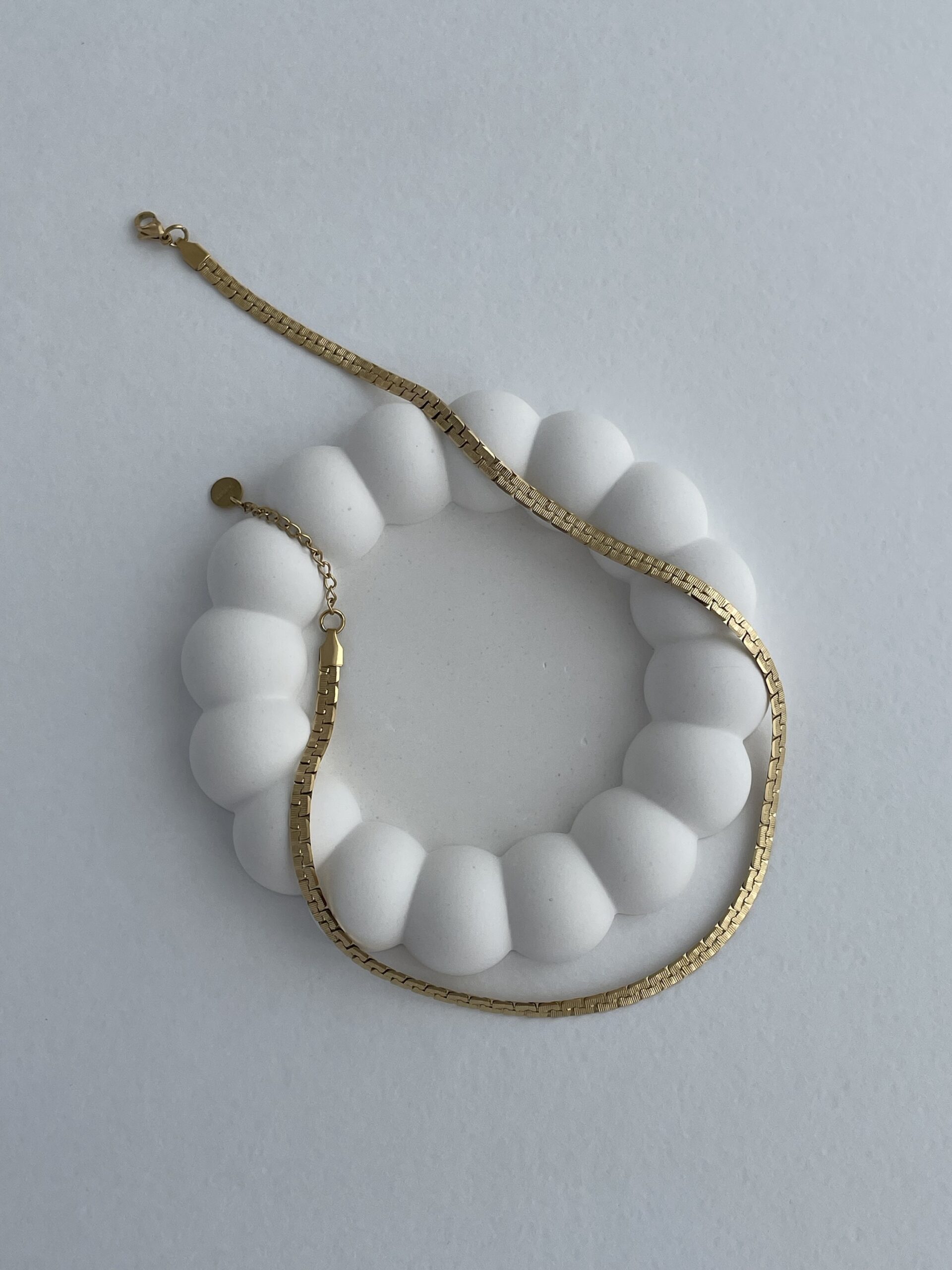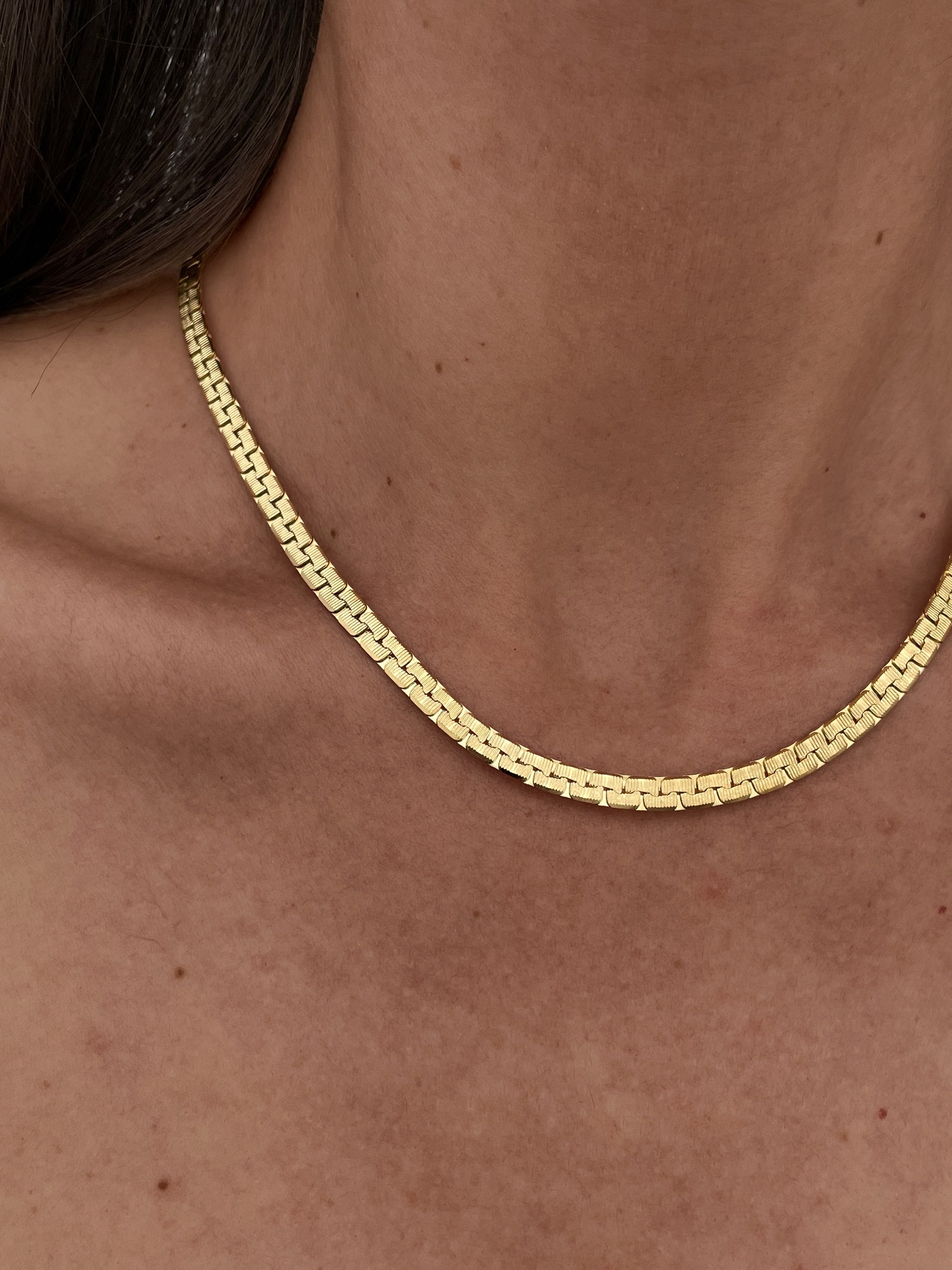 Çelik Örme Desen Gold Ezme Kolye 45cm
