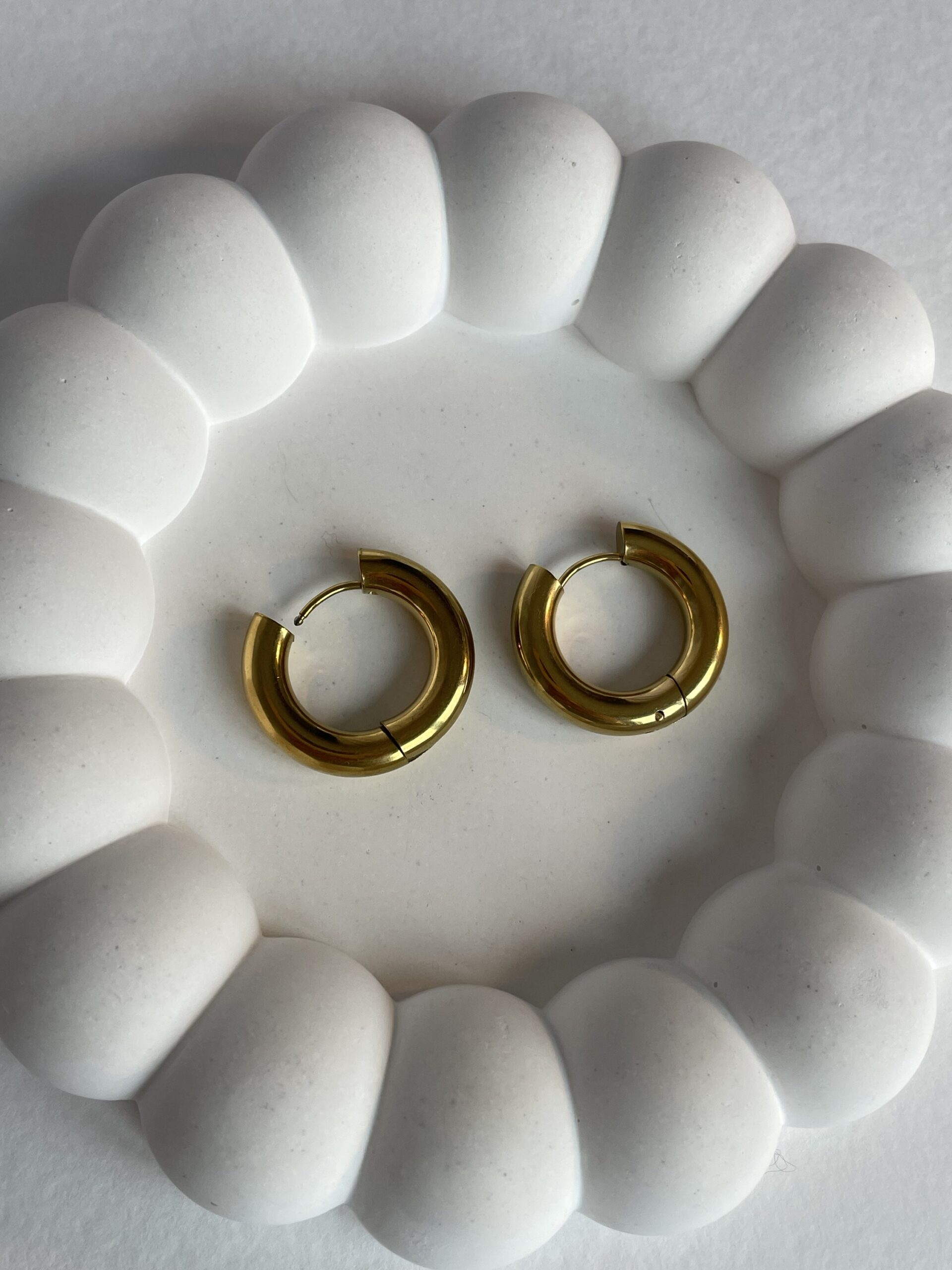 Çelik Orta Boy Kalın Gold Halka Küpe