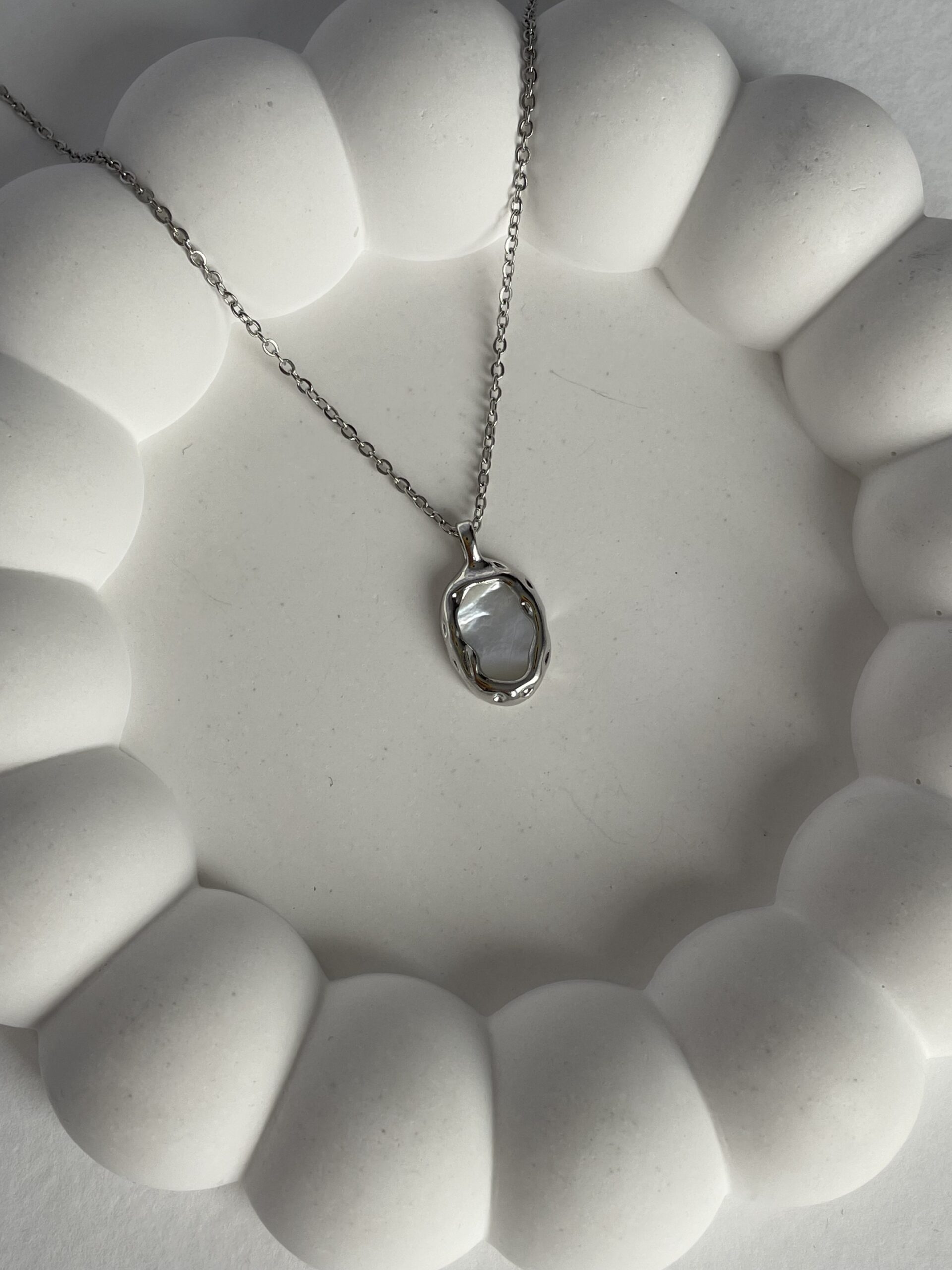 Çelik Oval Sedefli Minimal Gümüş Kolye