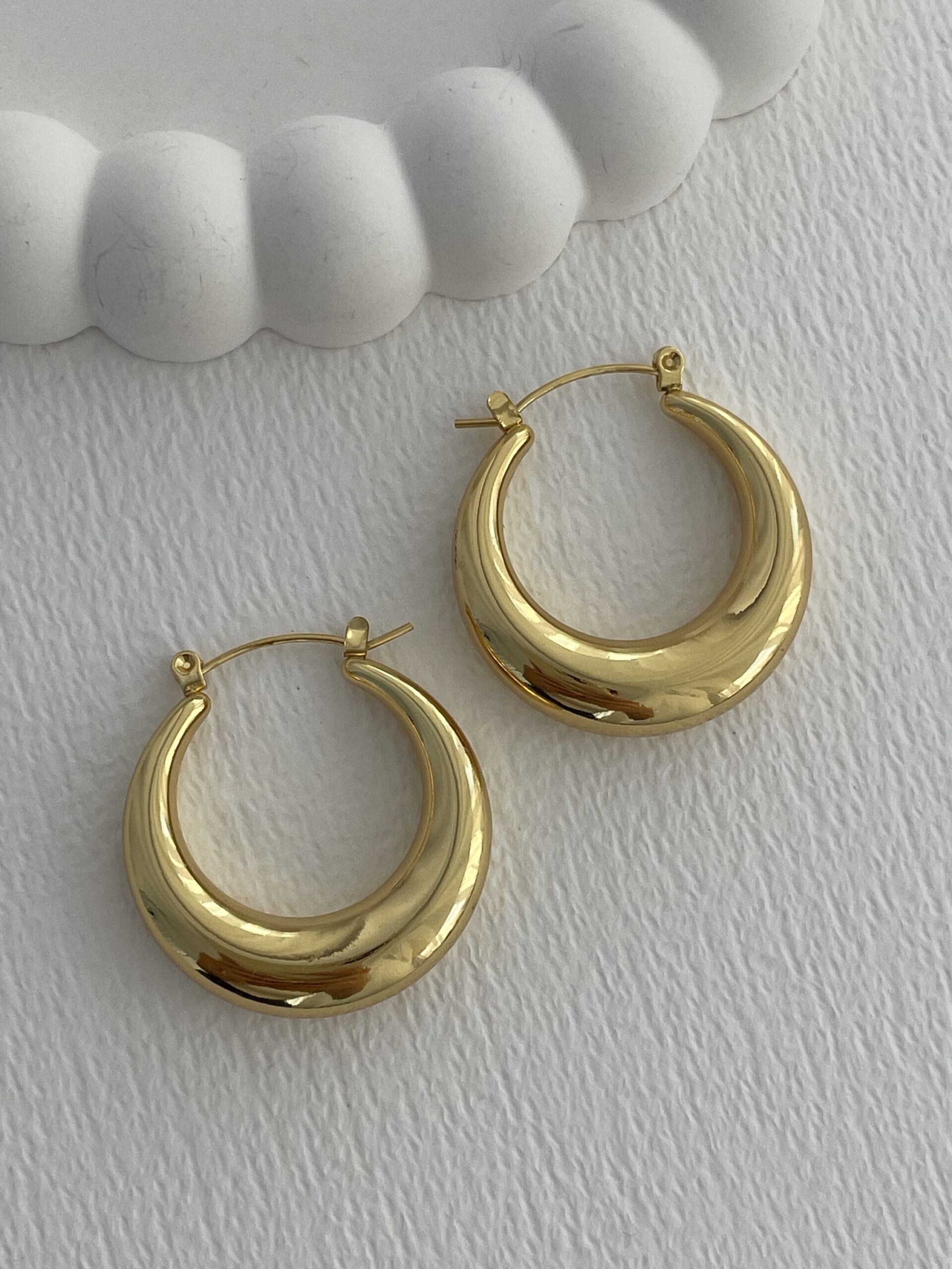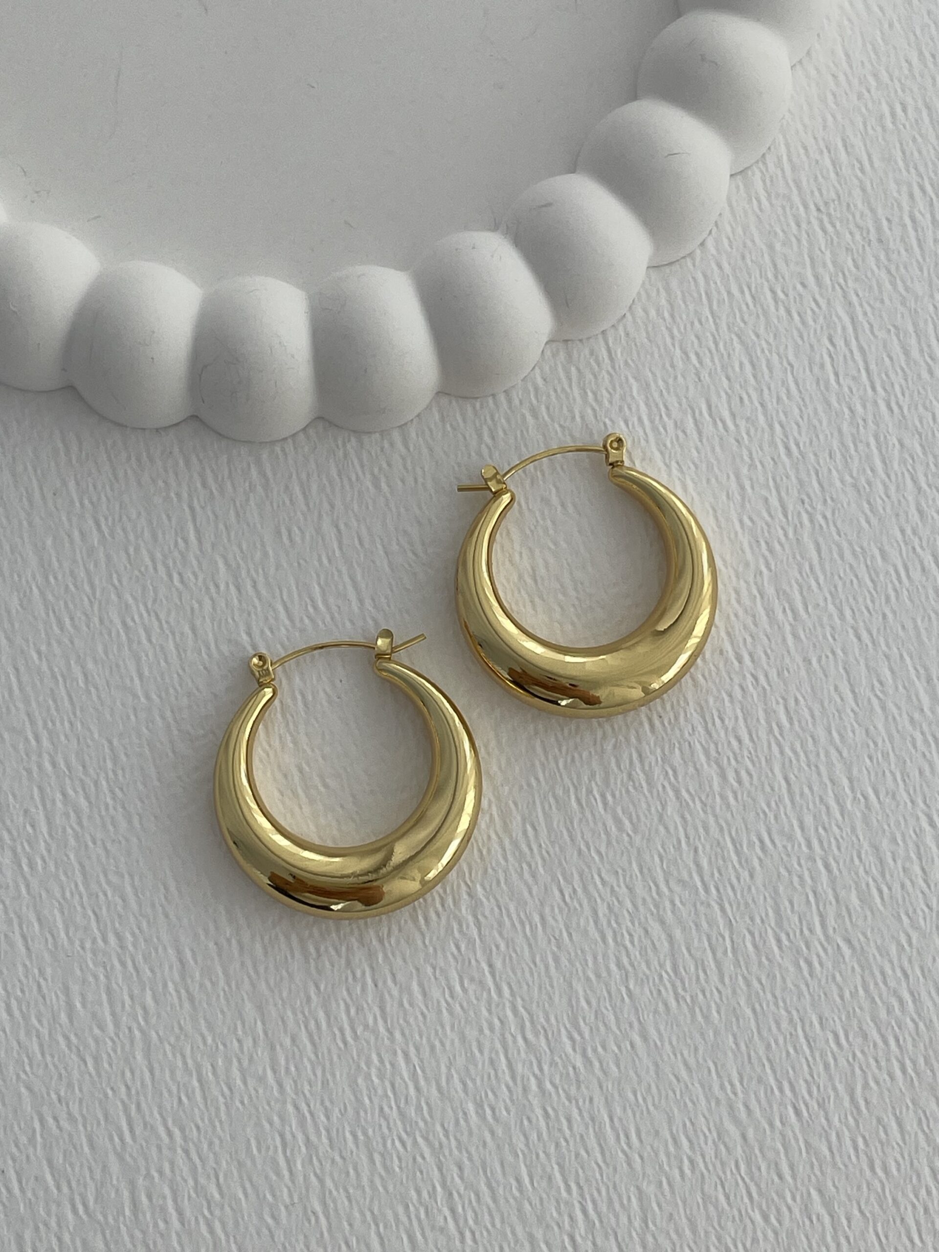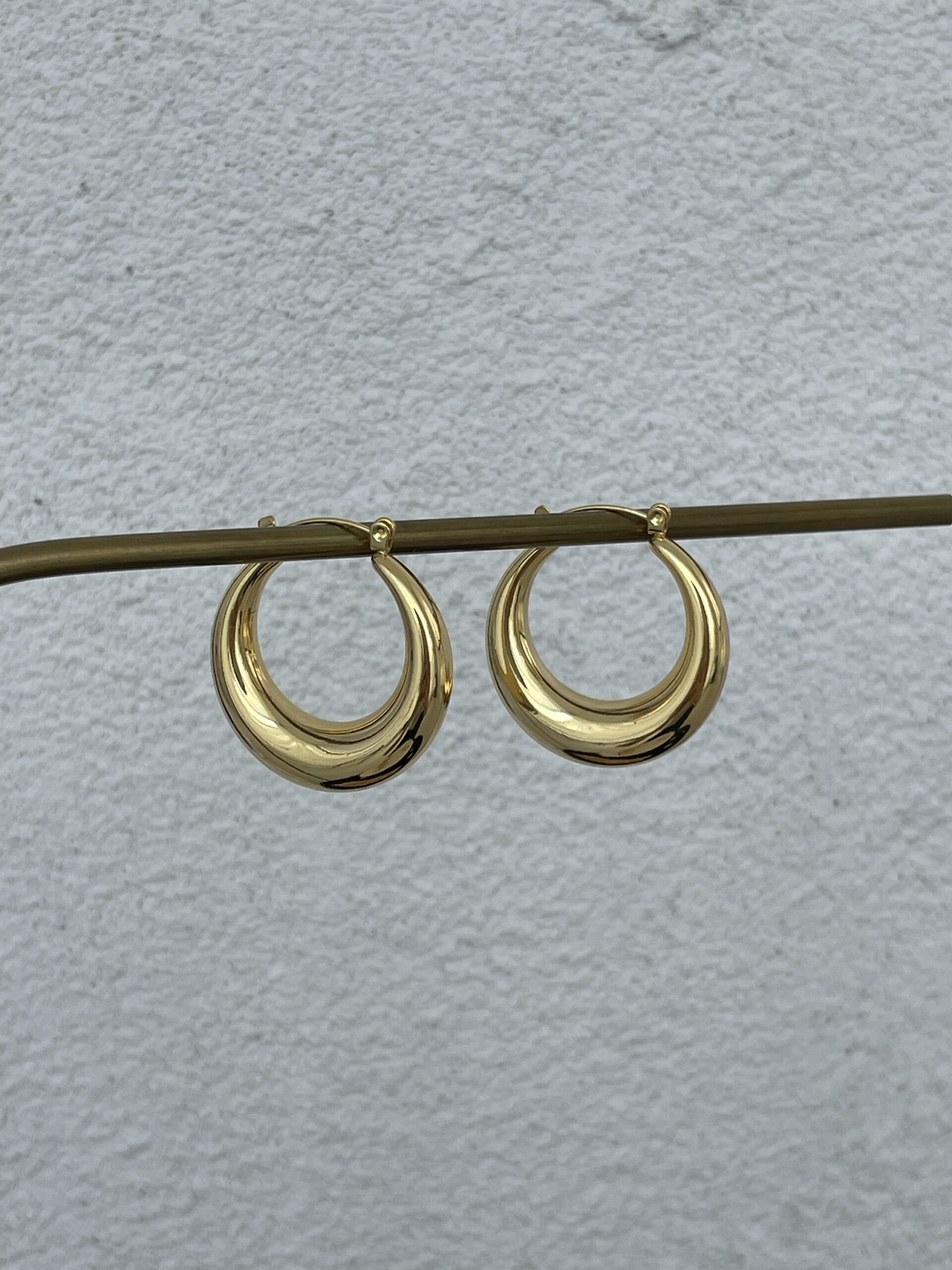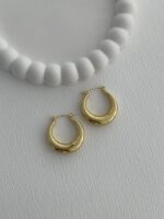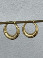 Çelik Oval Tasarım Gold Halka Küpe