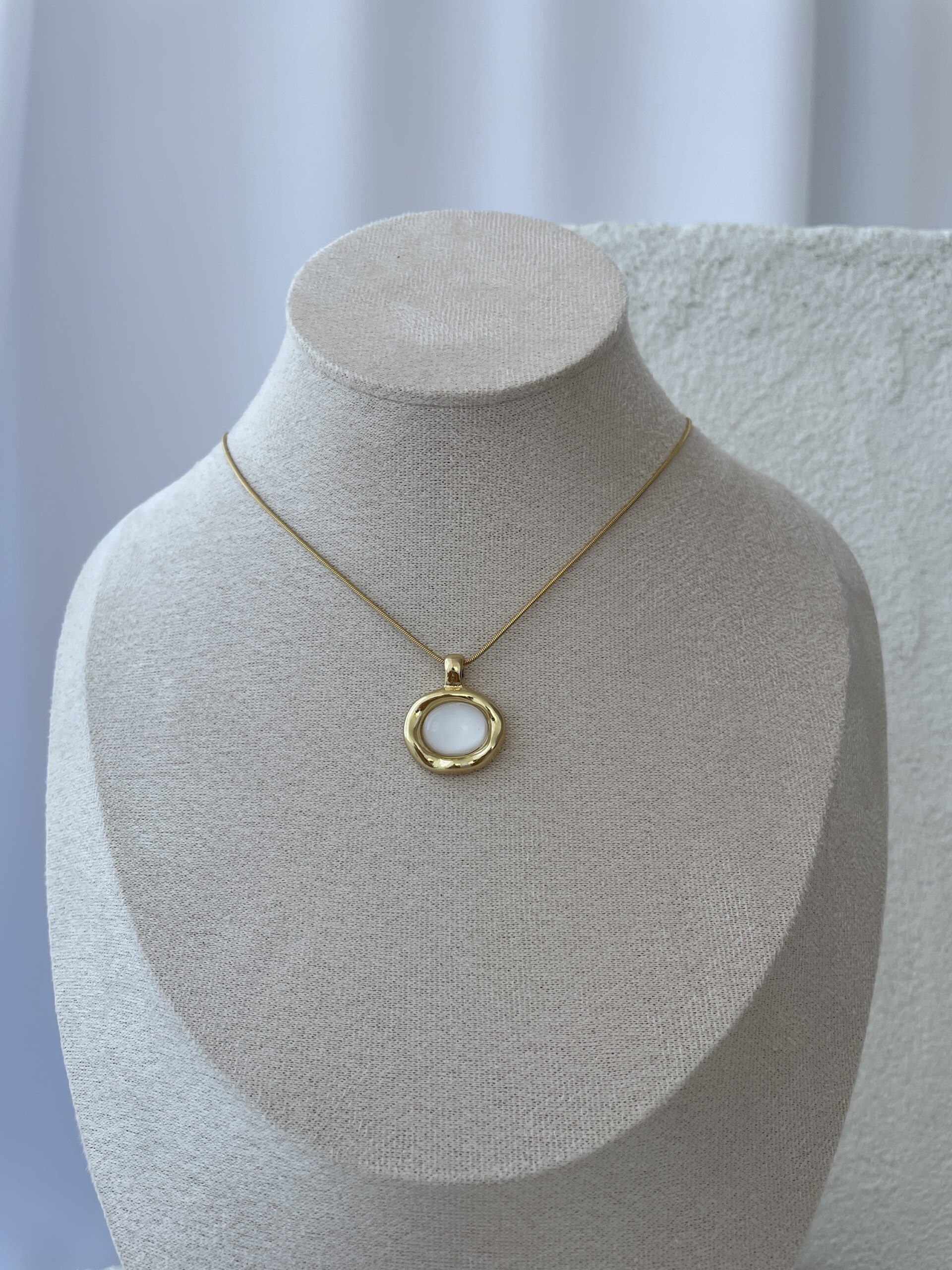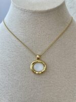 Çelik Oval Tasarım Sedef Detay Gold Kolye
