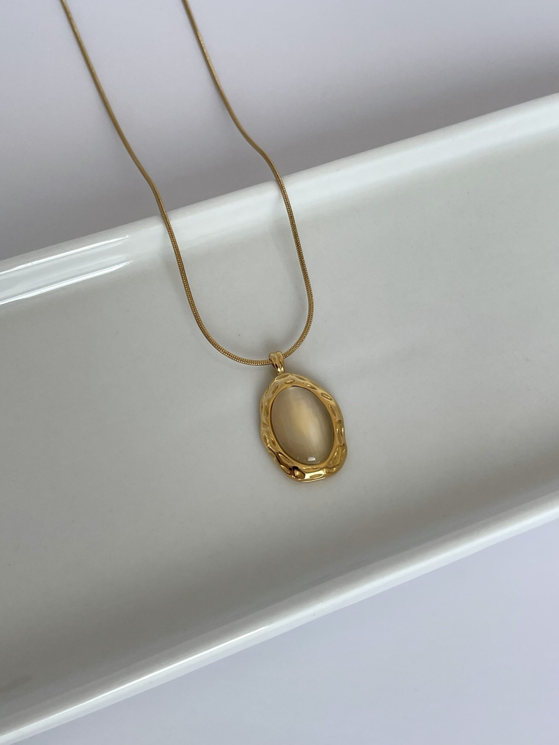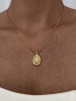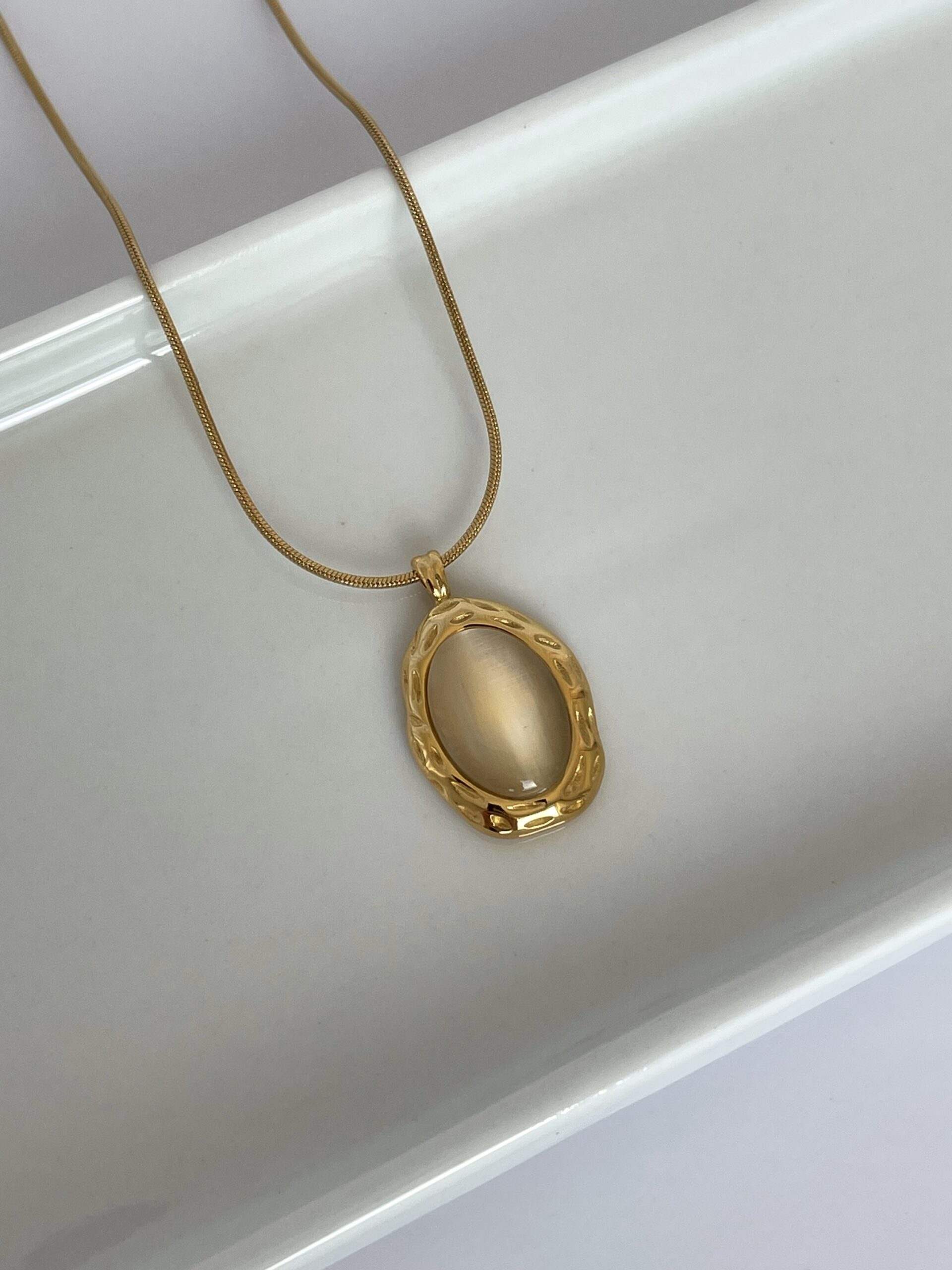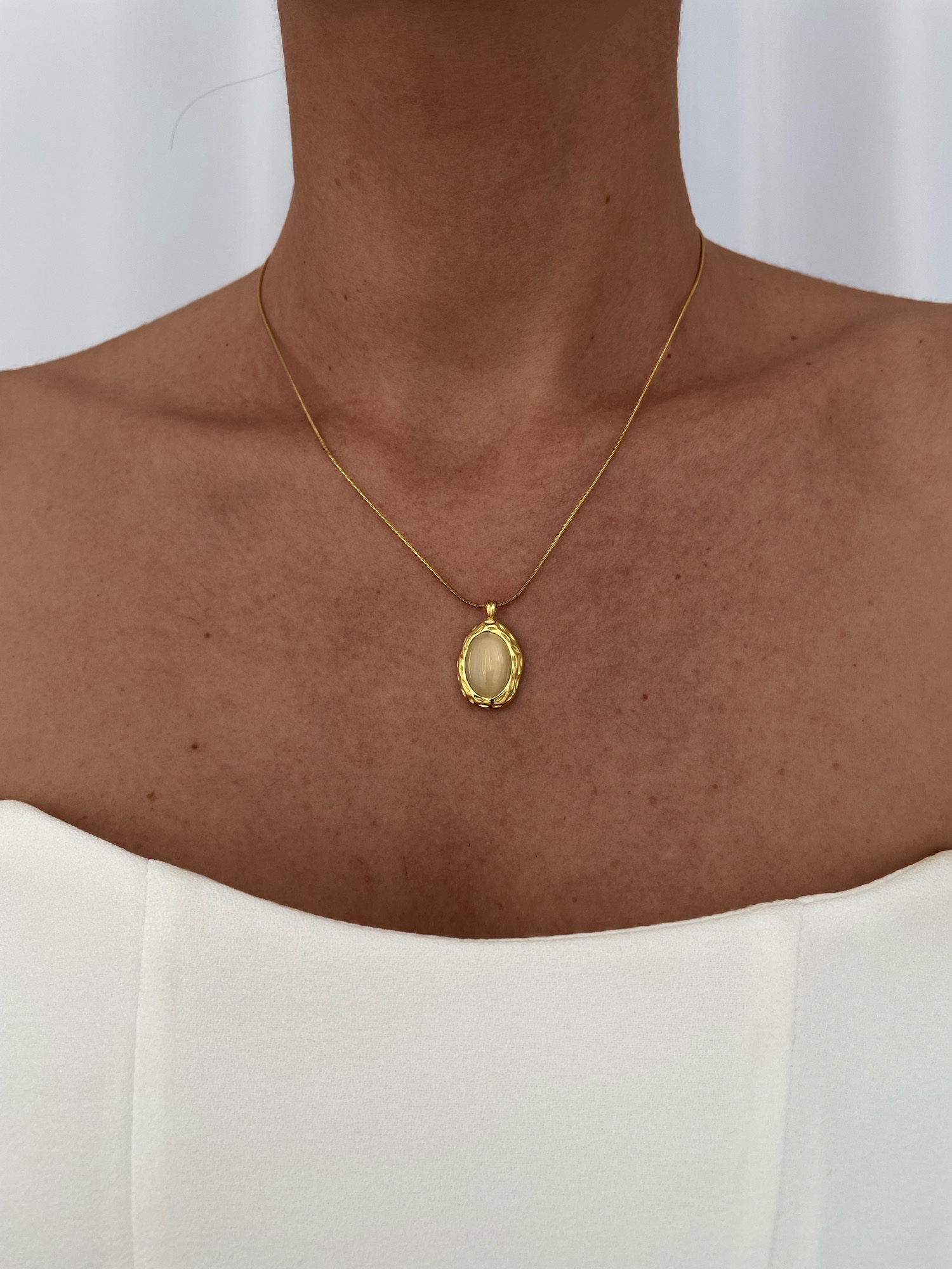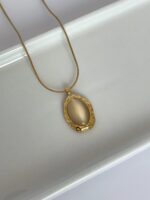 Çelik Oval Tasarım Sedefli Gold Kolye