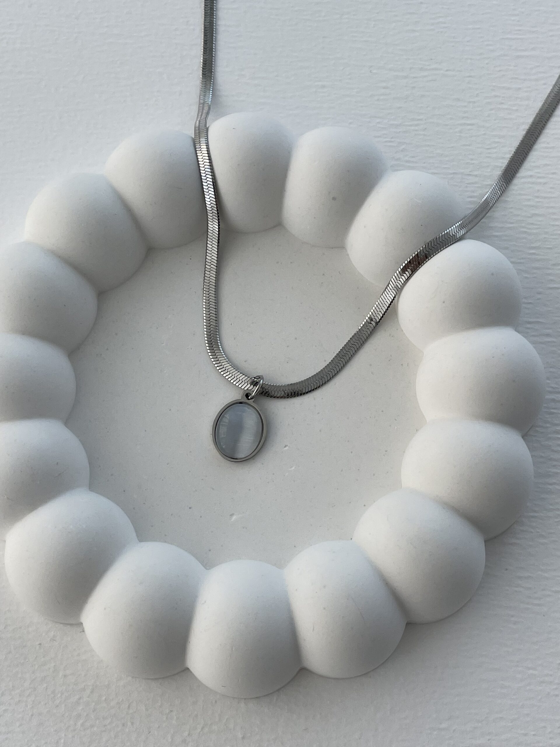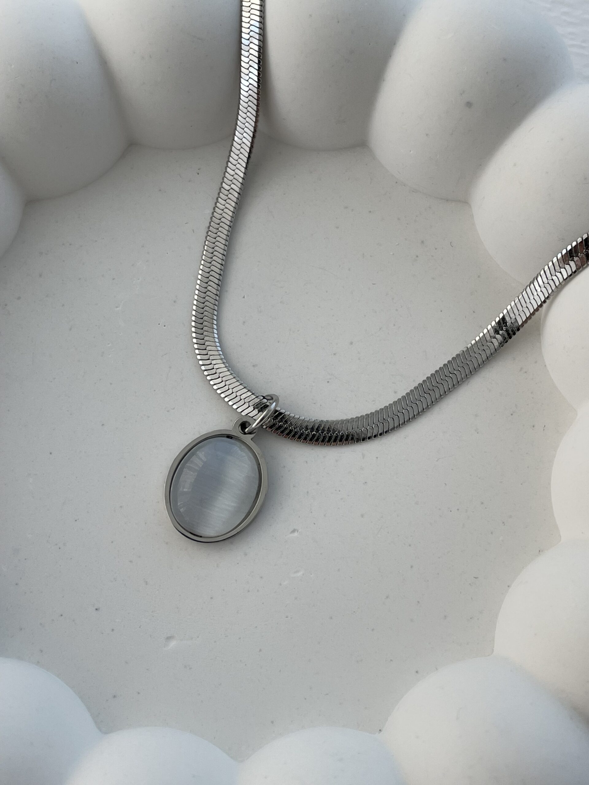Çelik Oval Tasarım Sedefli Gümüş İtalyan Zincir Kolye