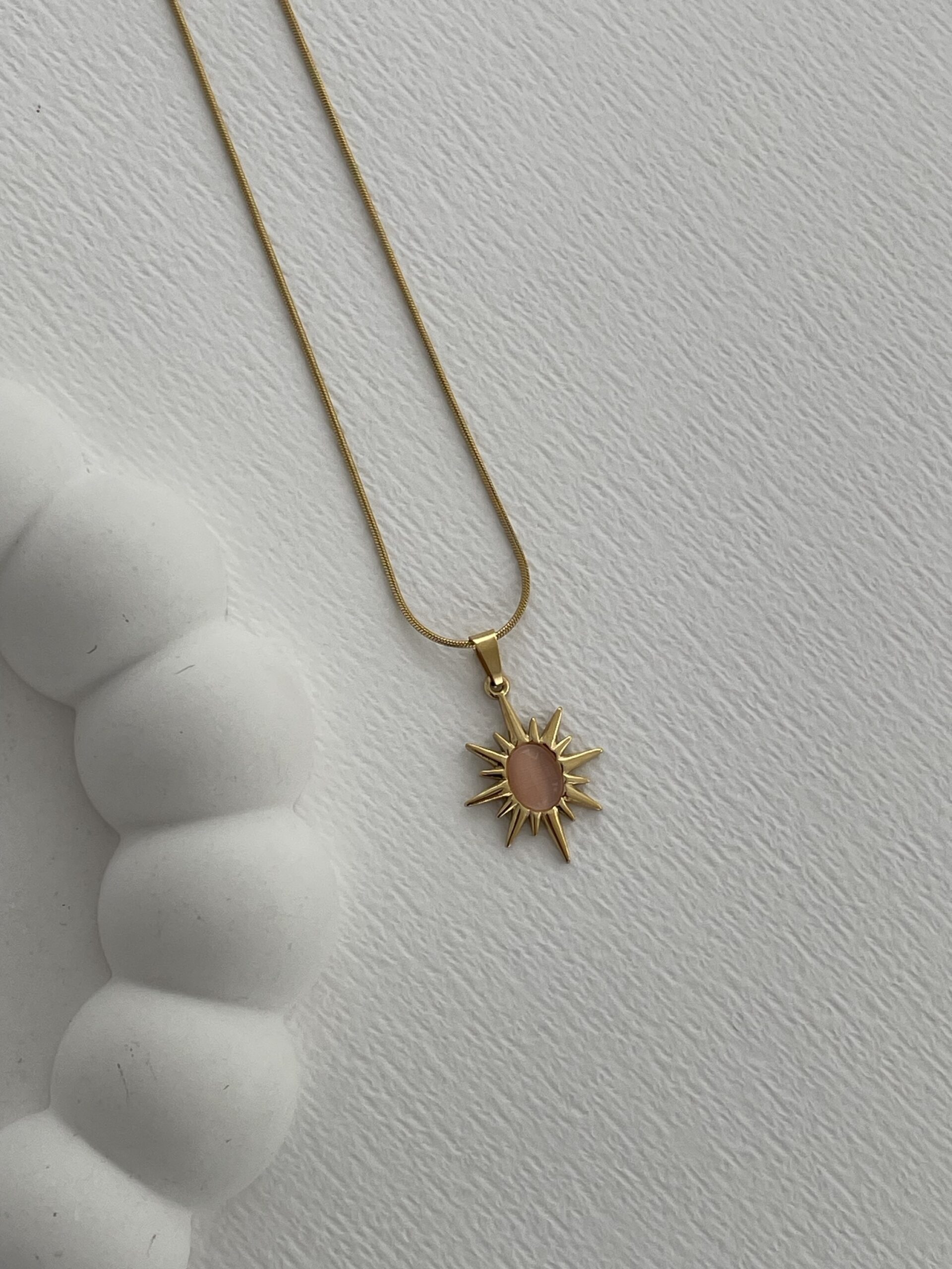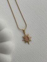 Çelik Pembe Kaplan Gözü Güneş Tasarım Gold Kolye
